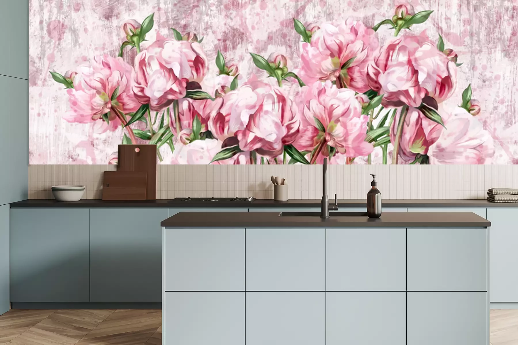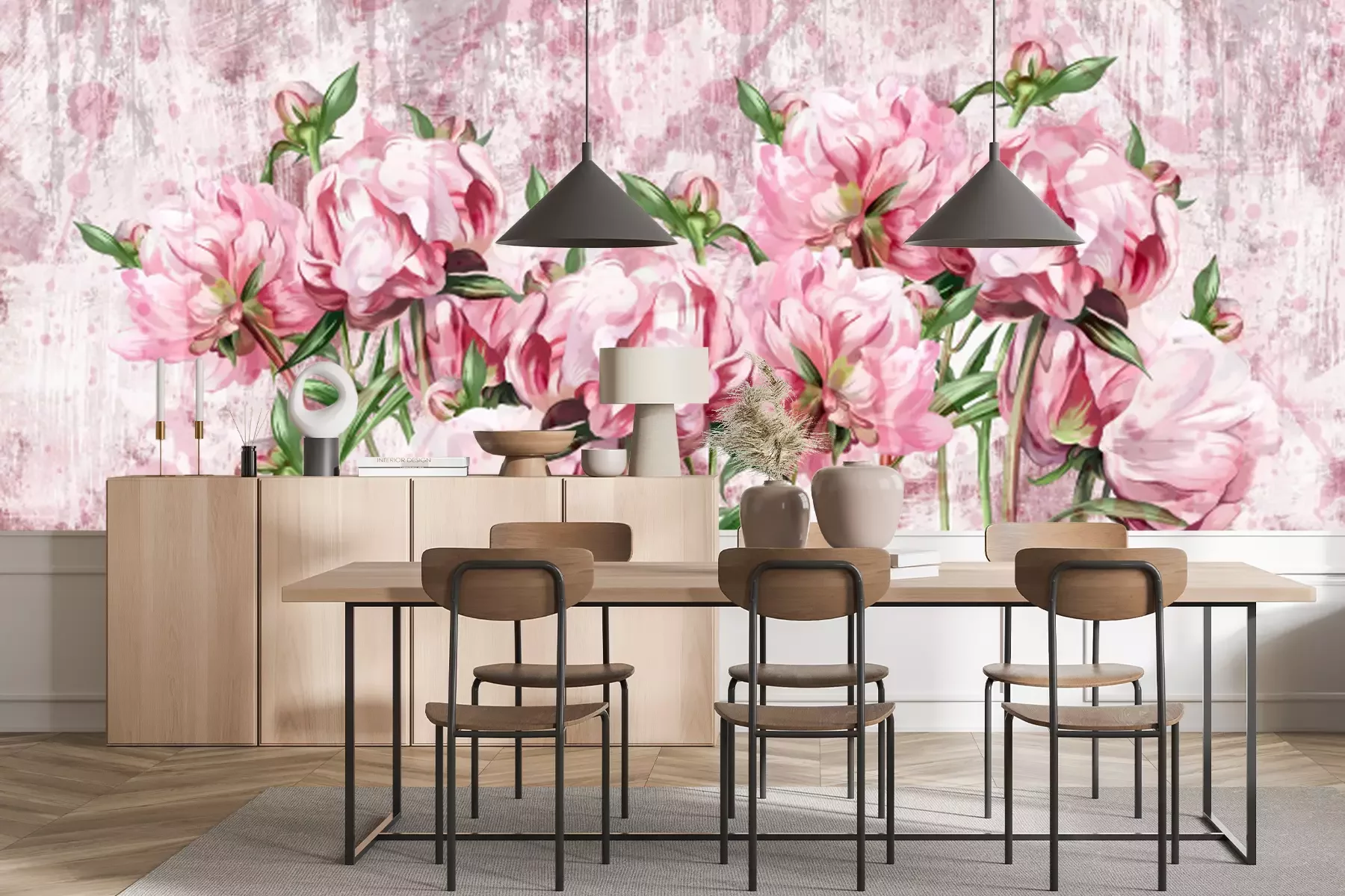 Papier peint  Pivoines romantiques sur la texture