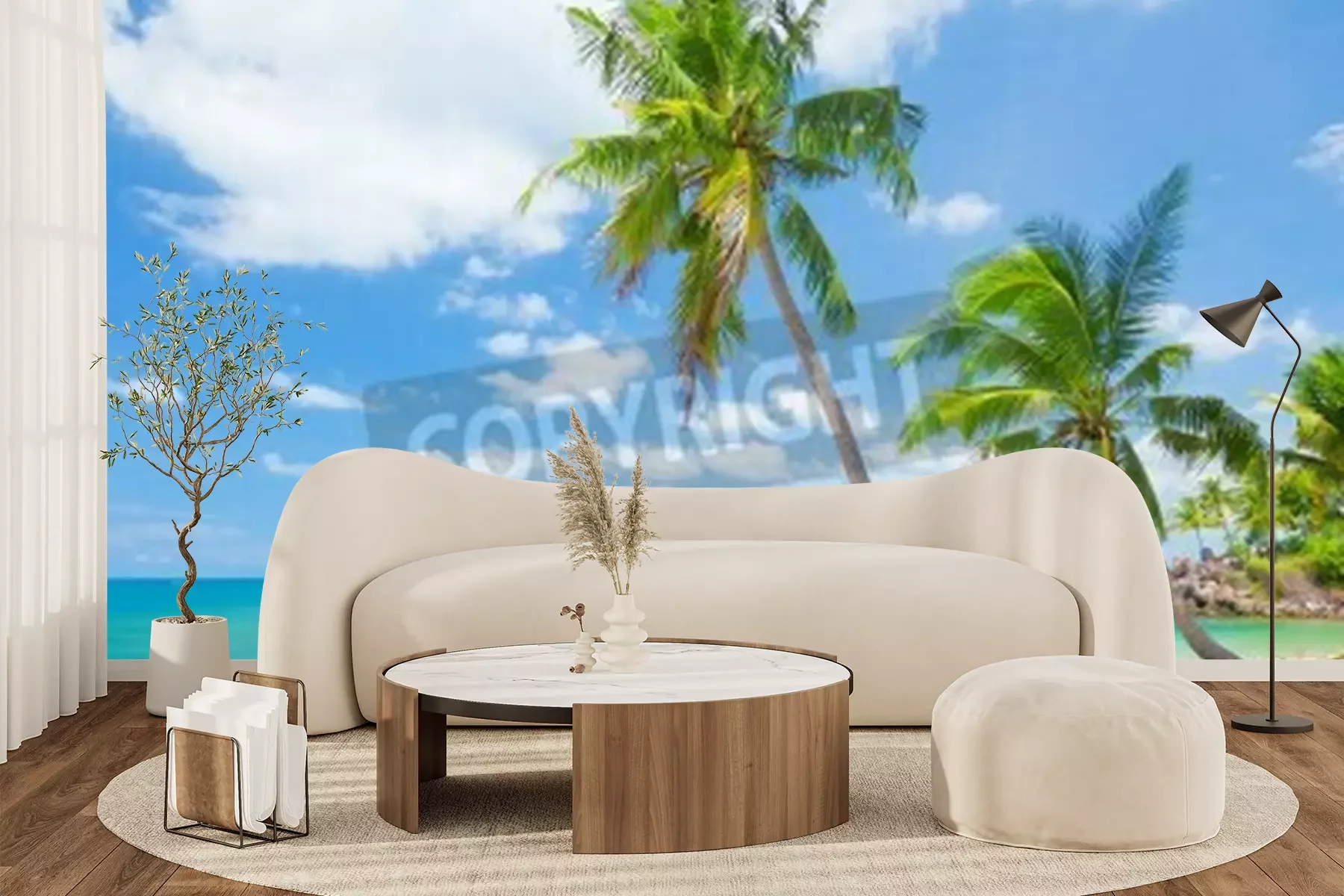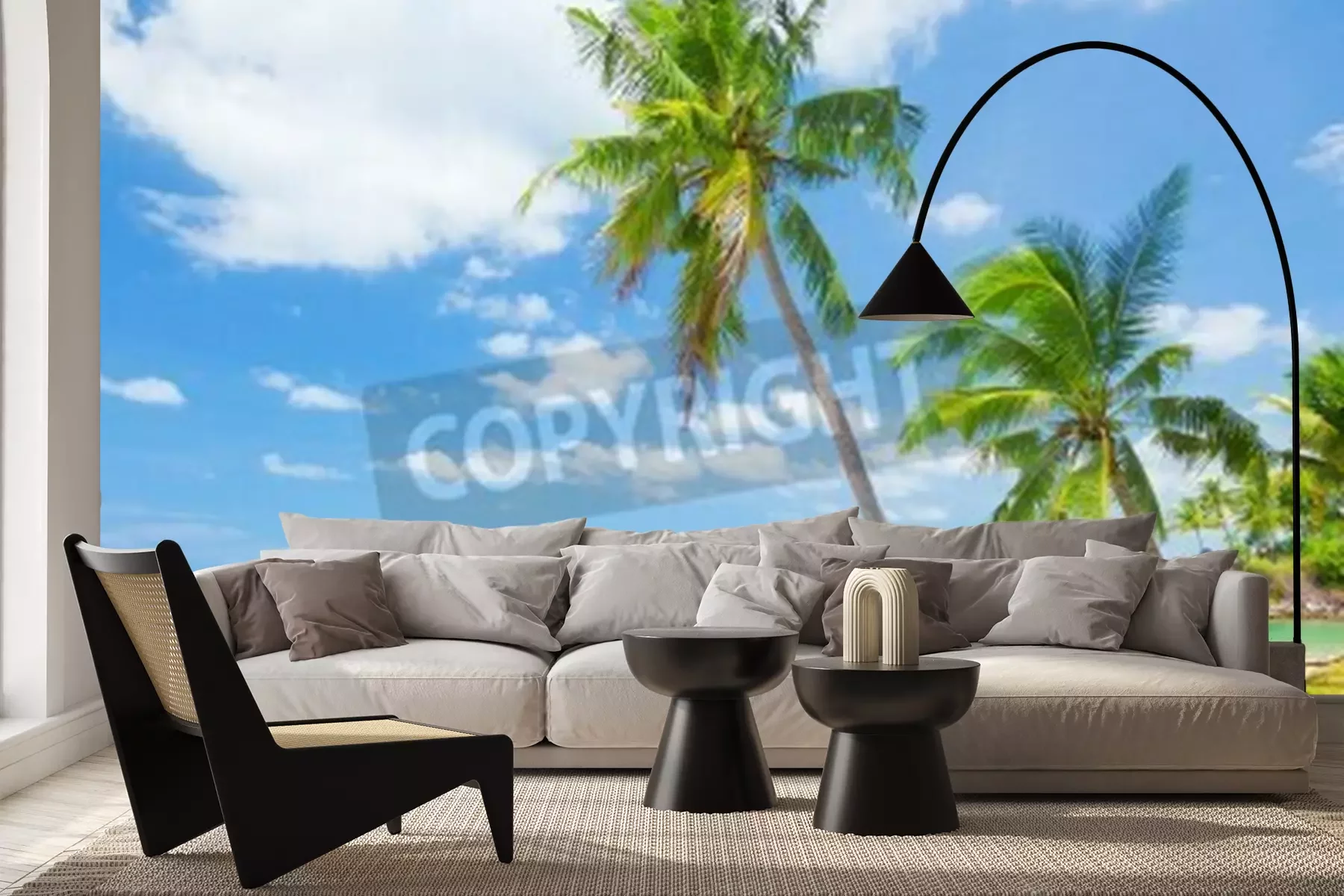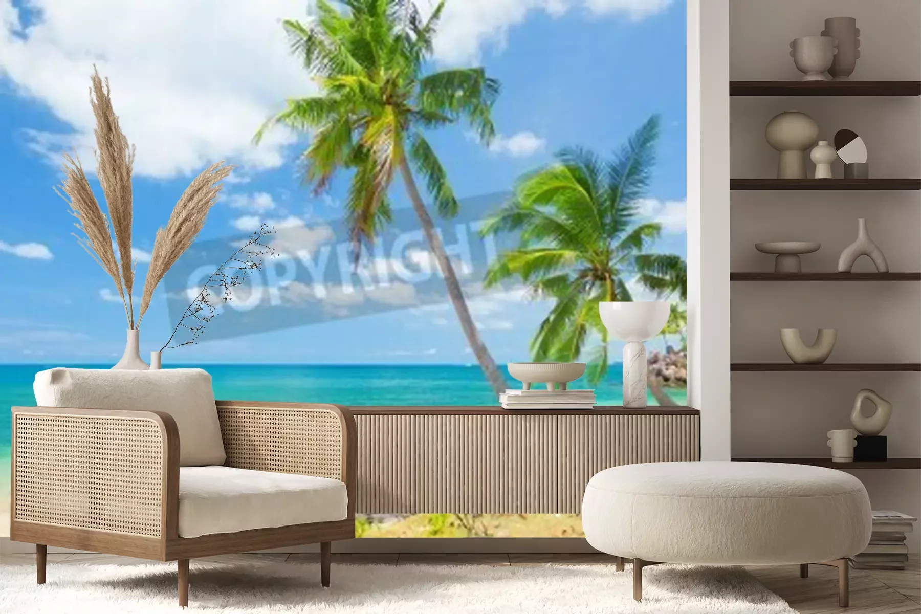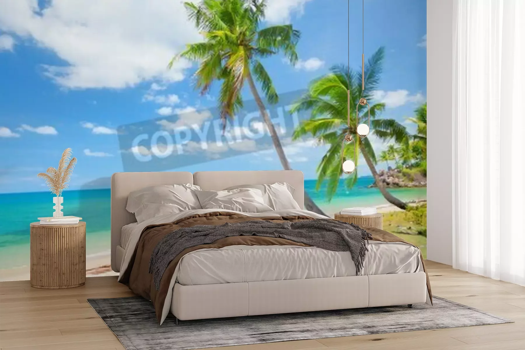 Papier peint  Plage exotique avec cocotiers