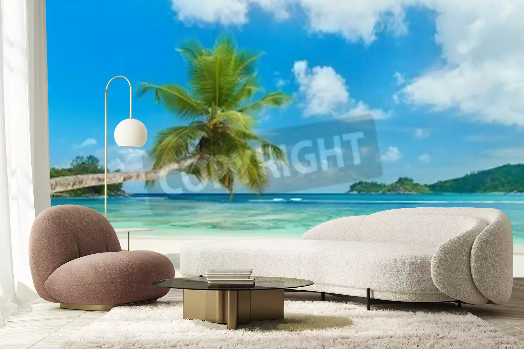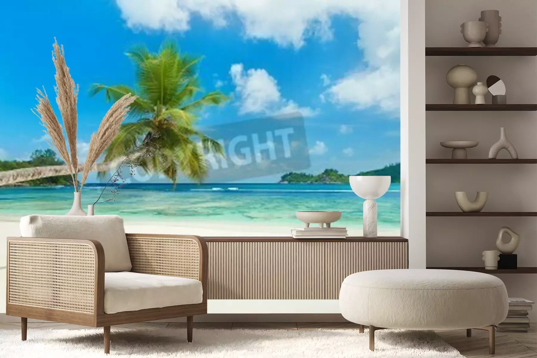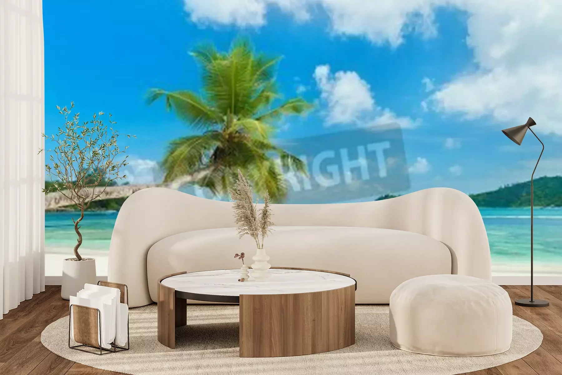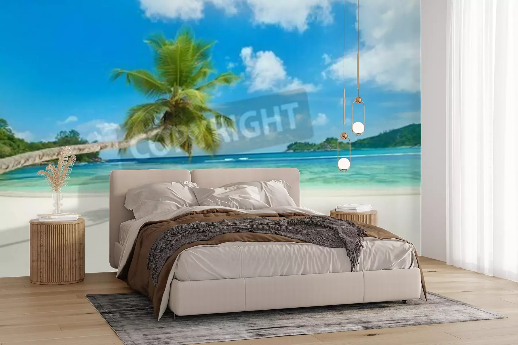 Papier peint  Plage tropicale et palmiers
