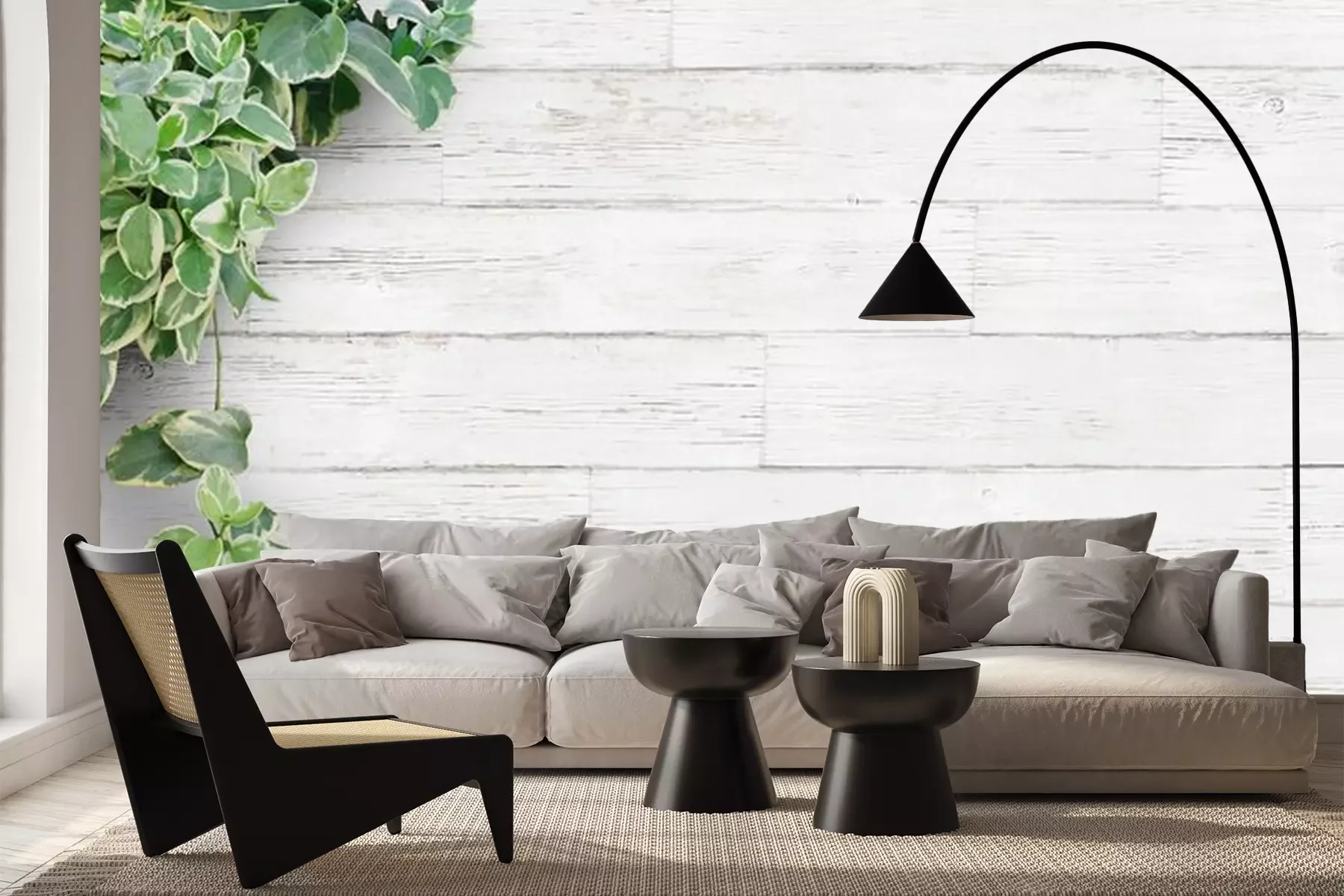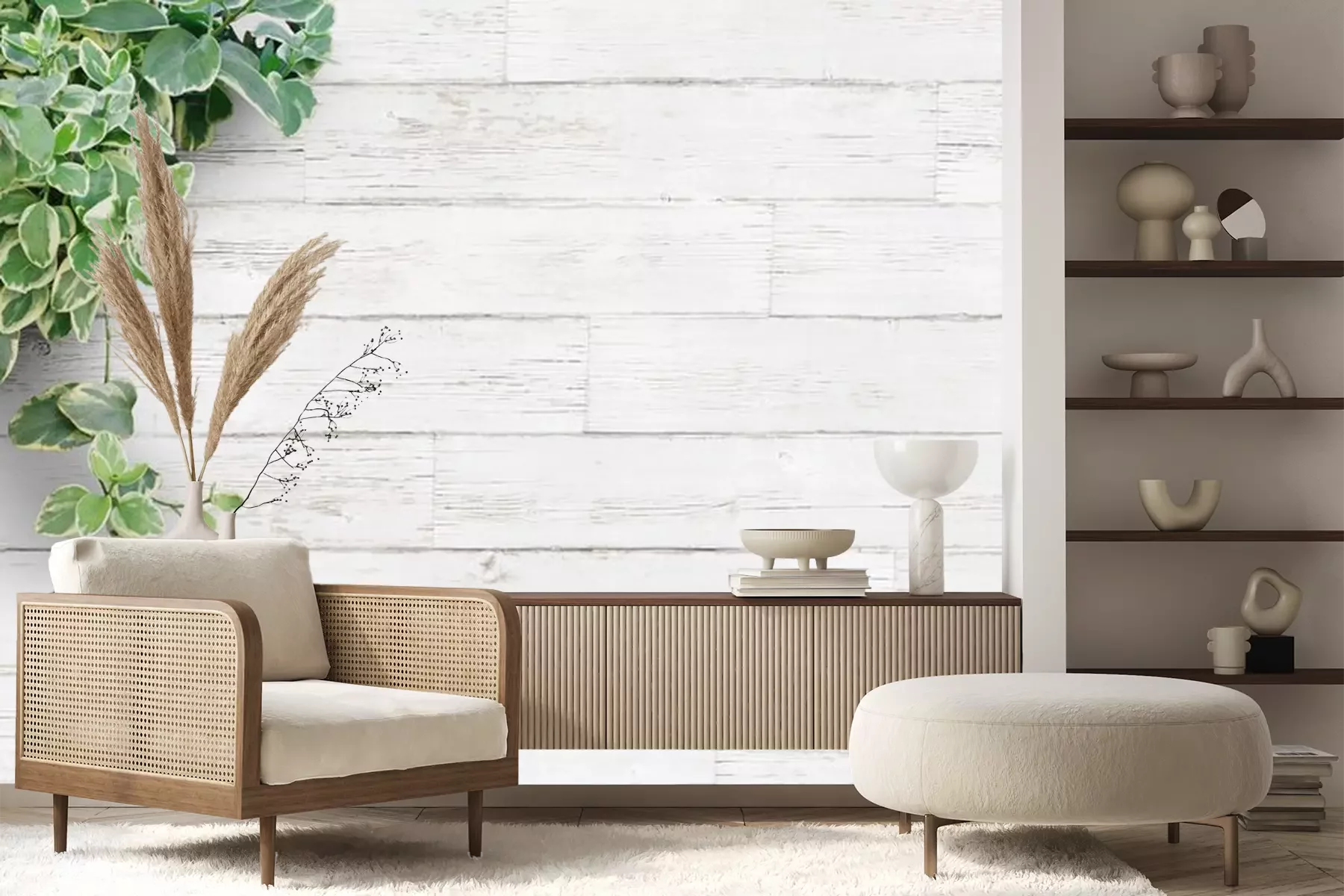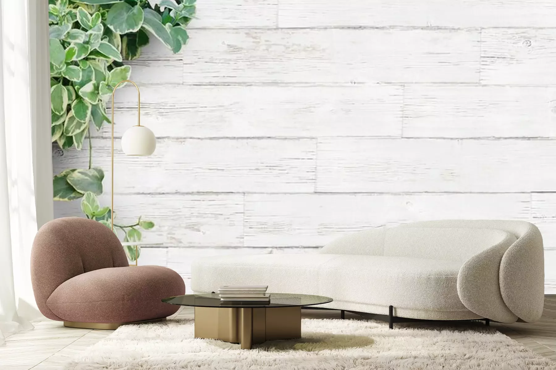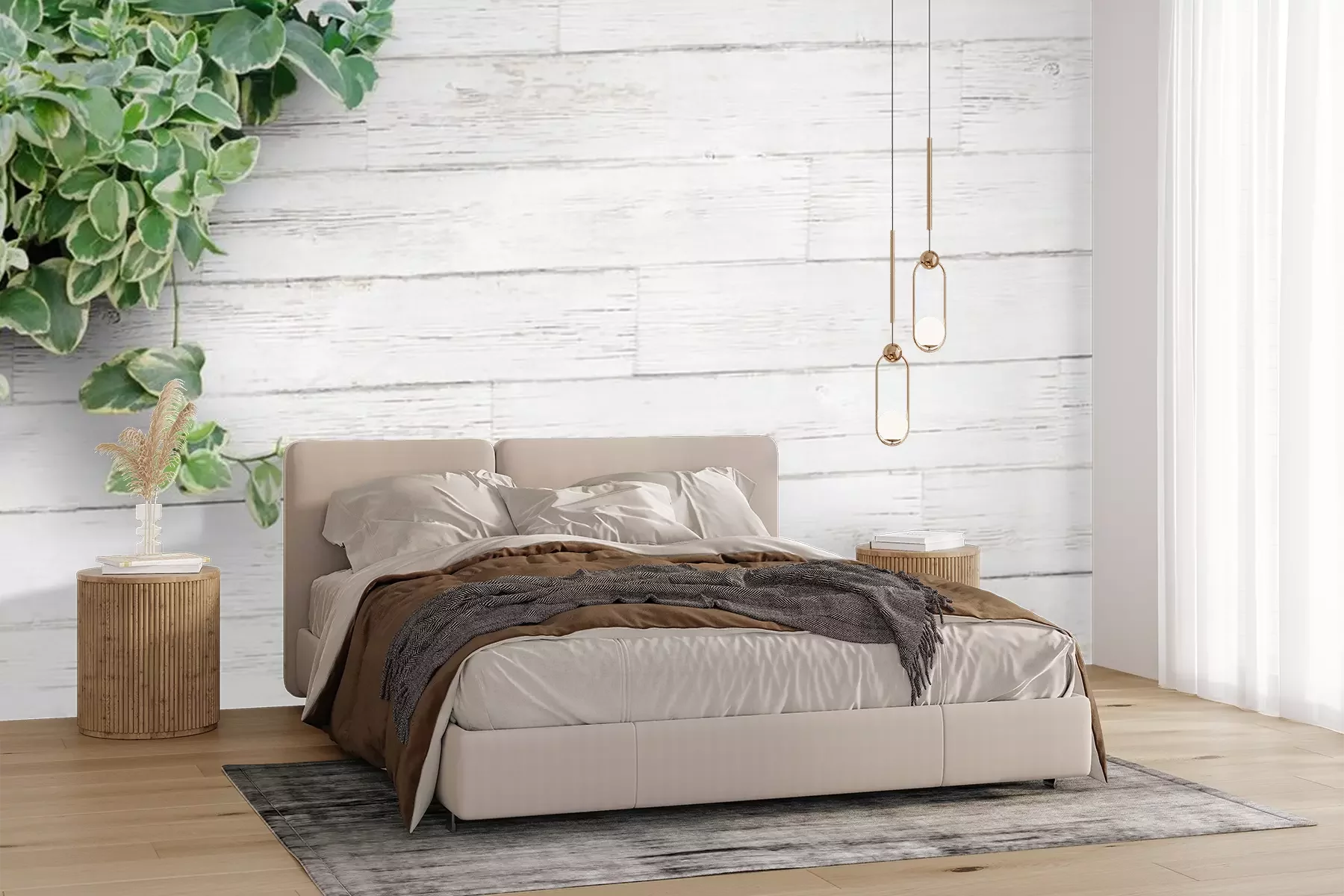 Papier peint  Plante verte des planches de couleur claire