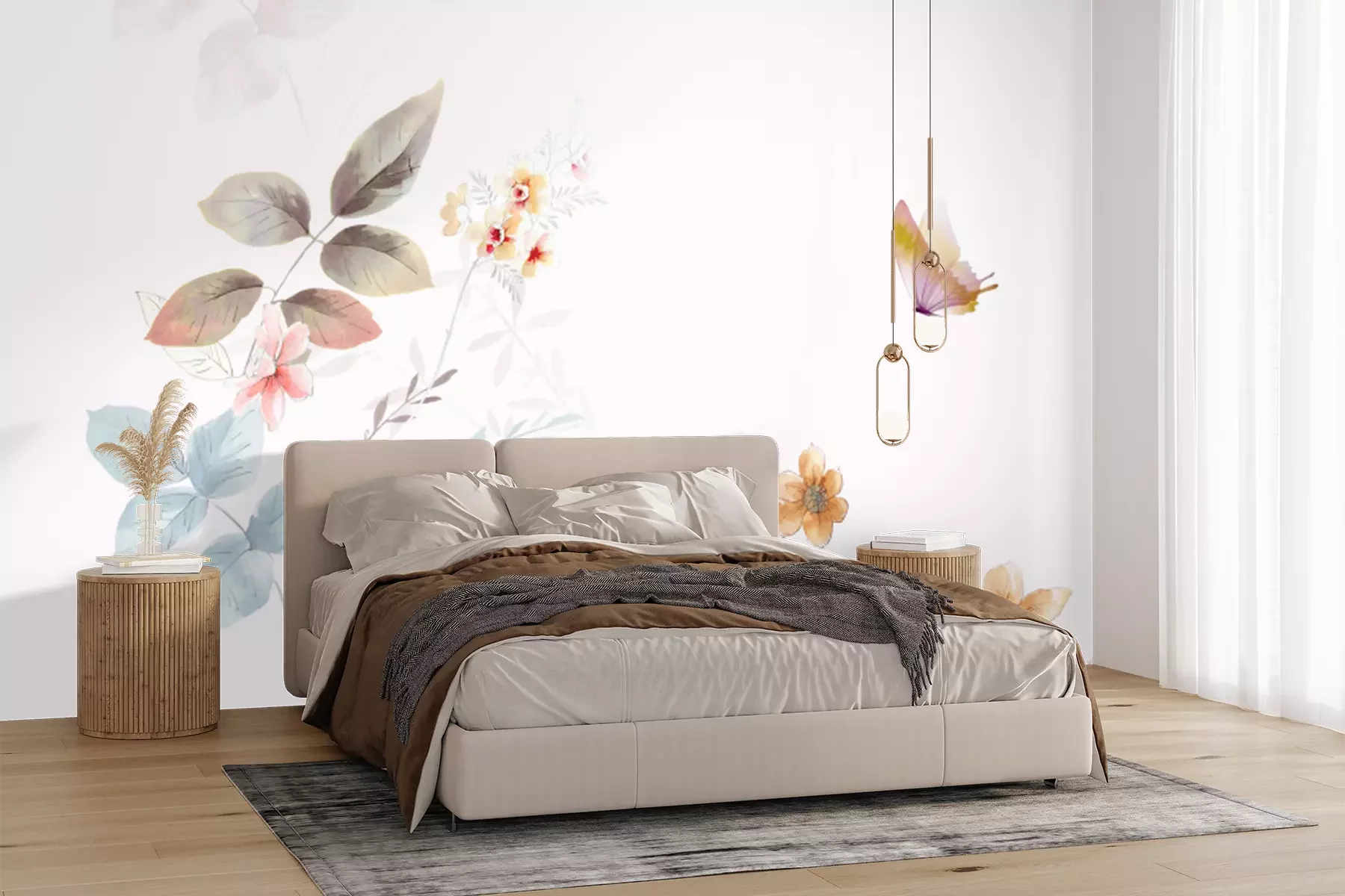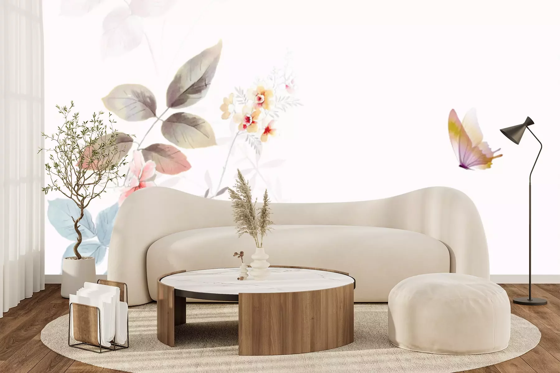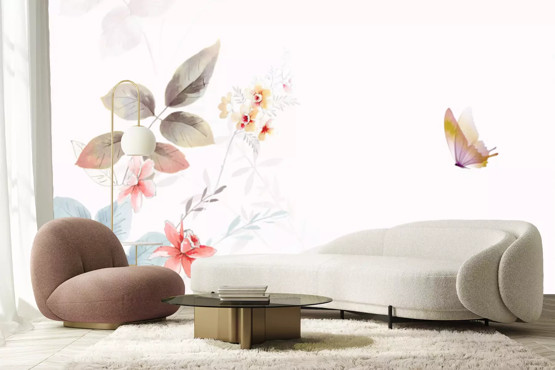 Papier peint  Plantes de prairie printanière délicates et papillon