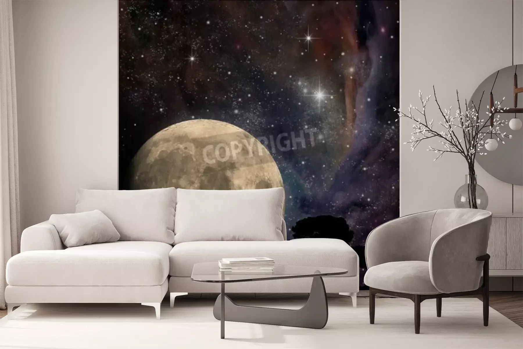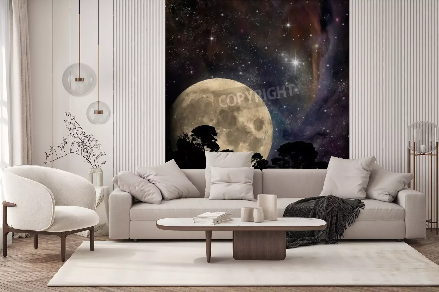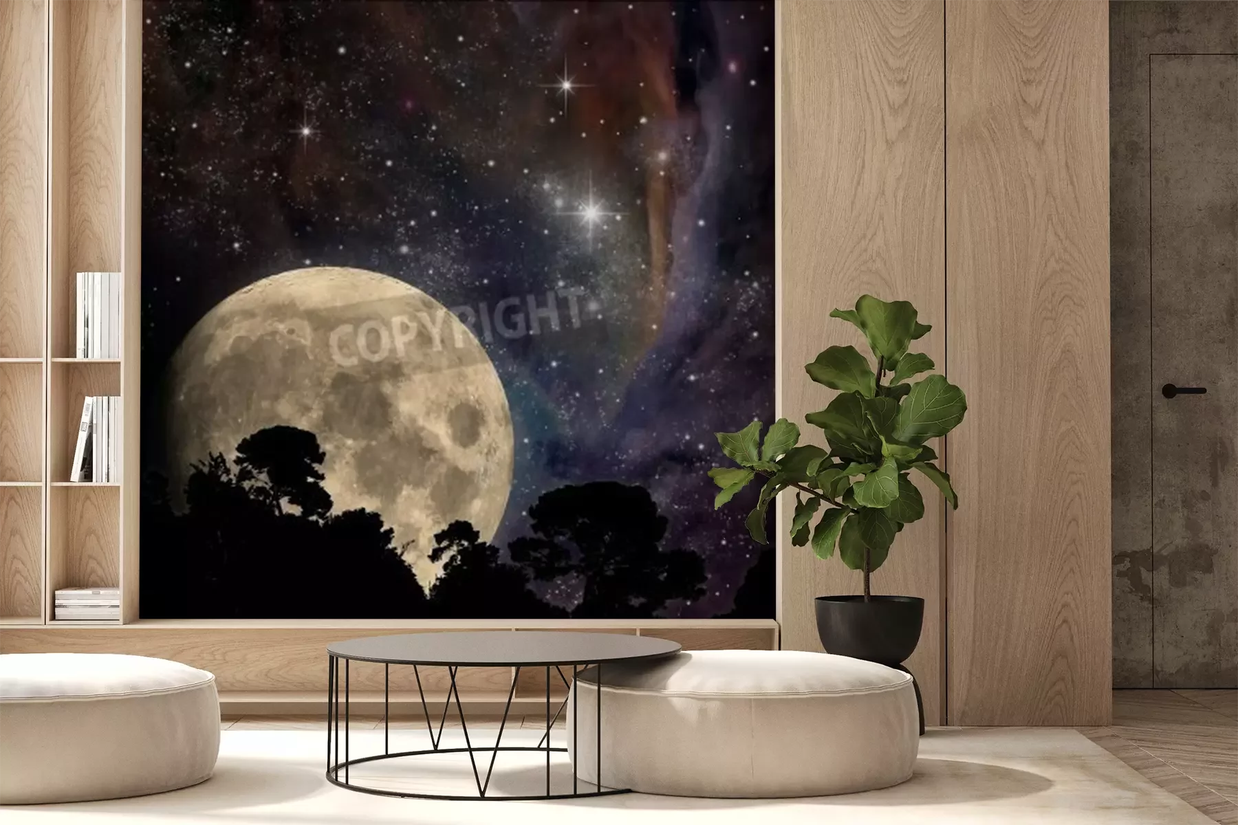 Papier peint  Pleine lune et arbres