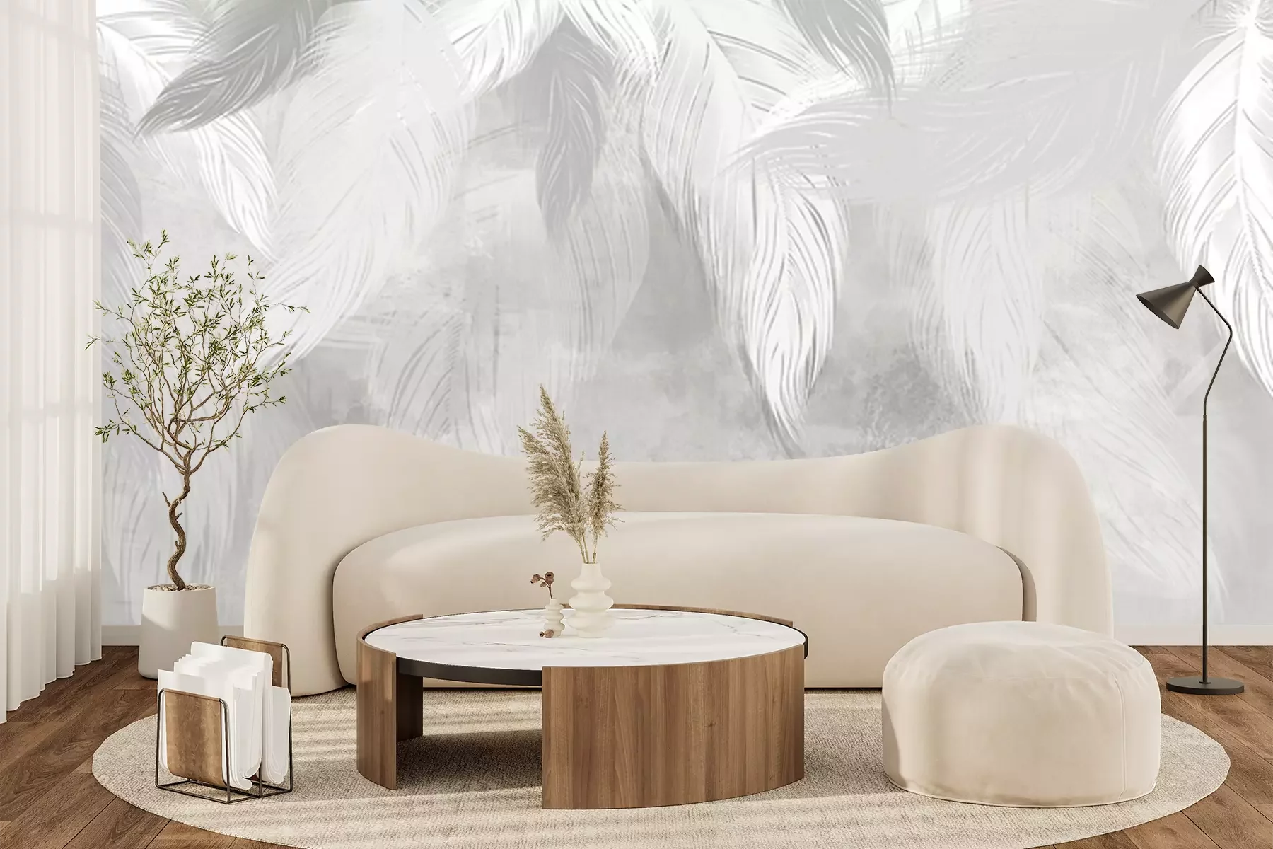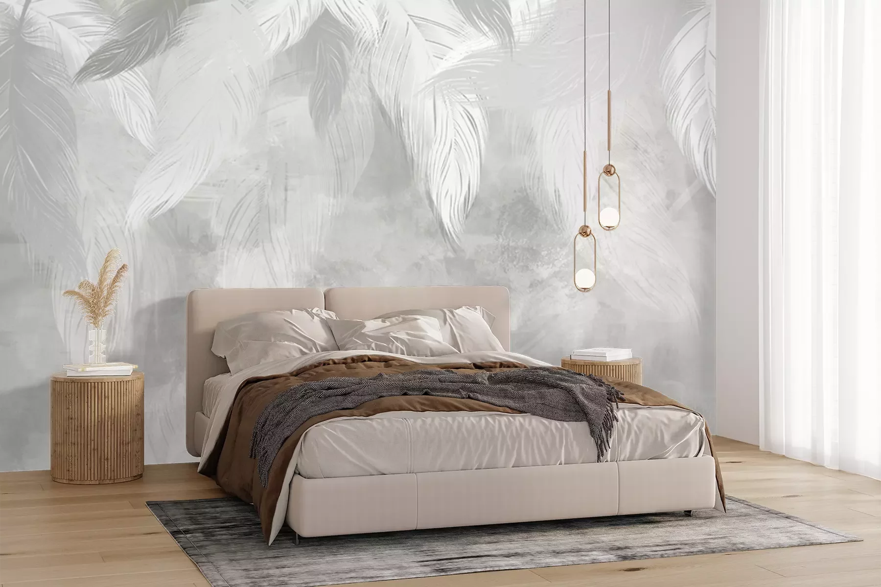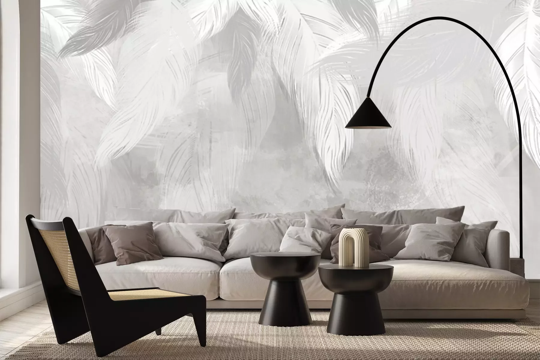 Papier peint  Plumes subtiles sur un mur de béton