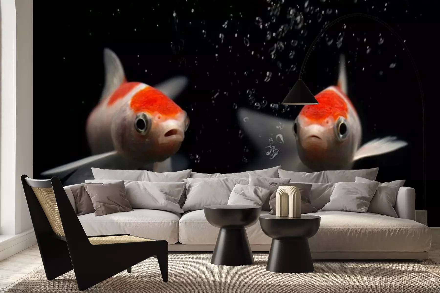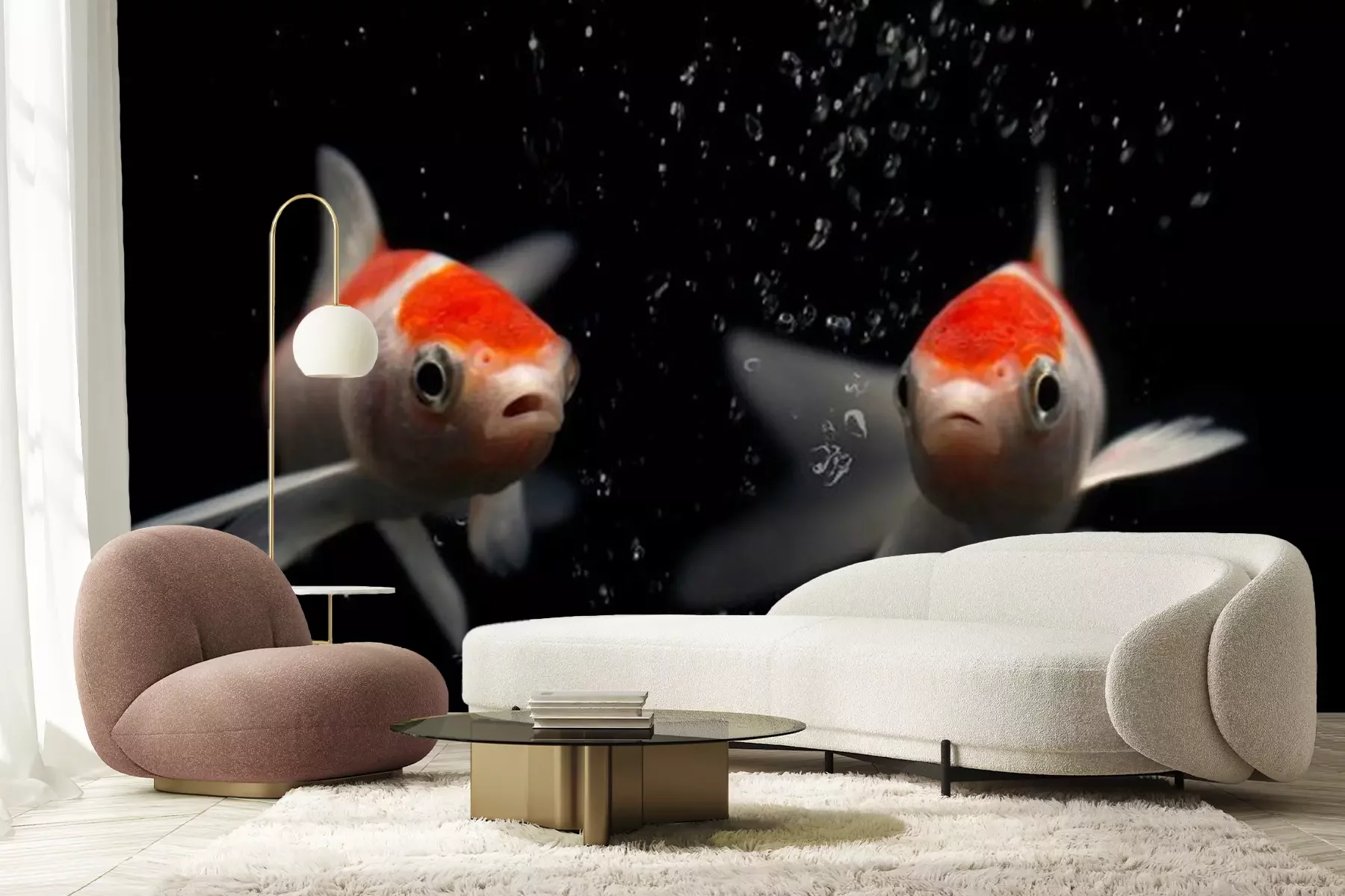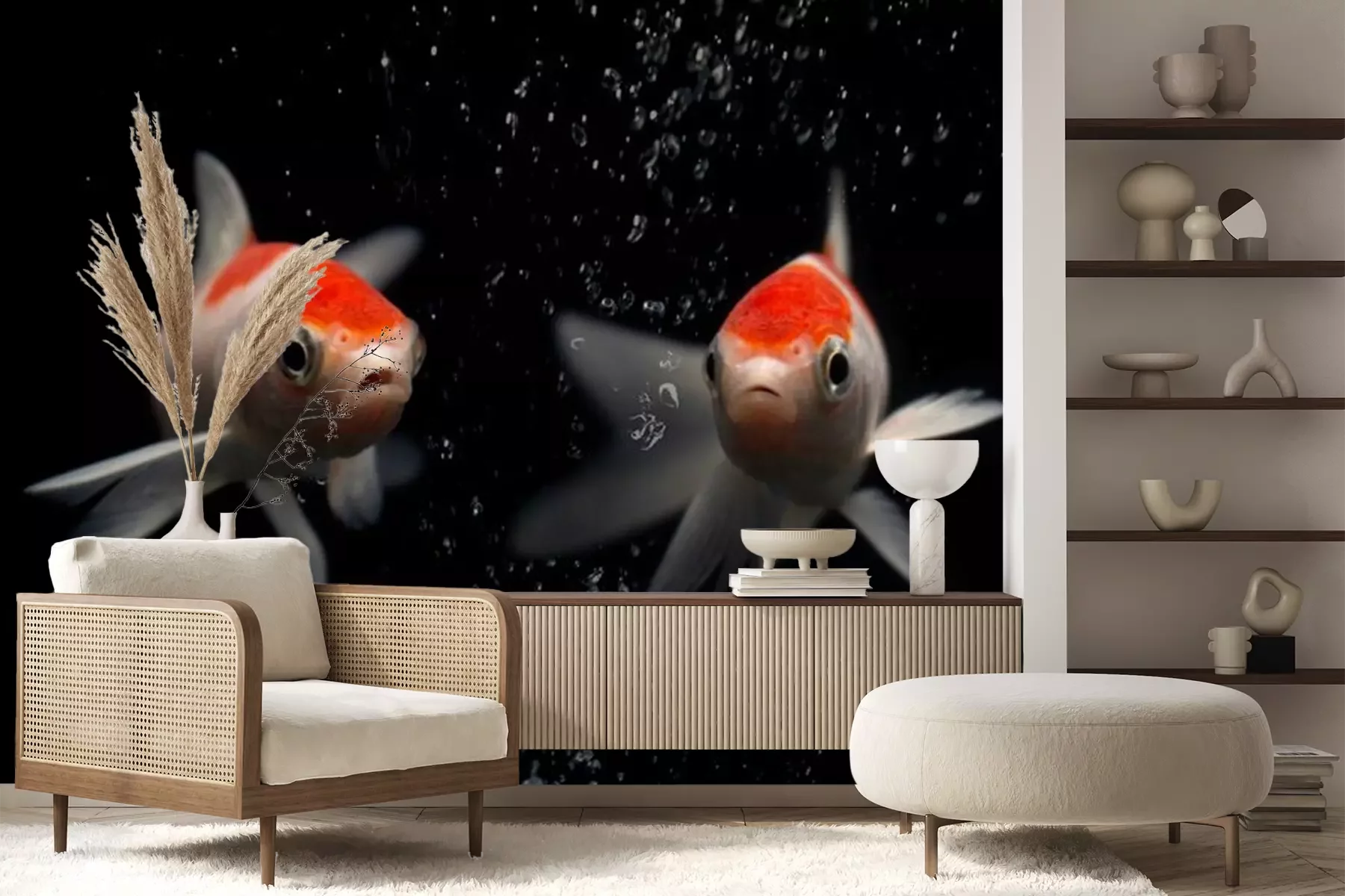 Papier peint  Poissons blanc orange