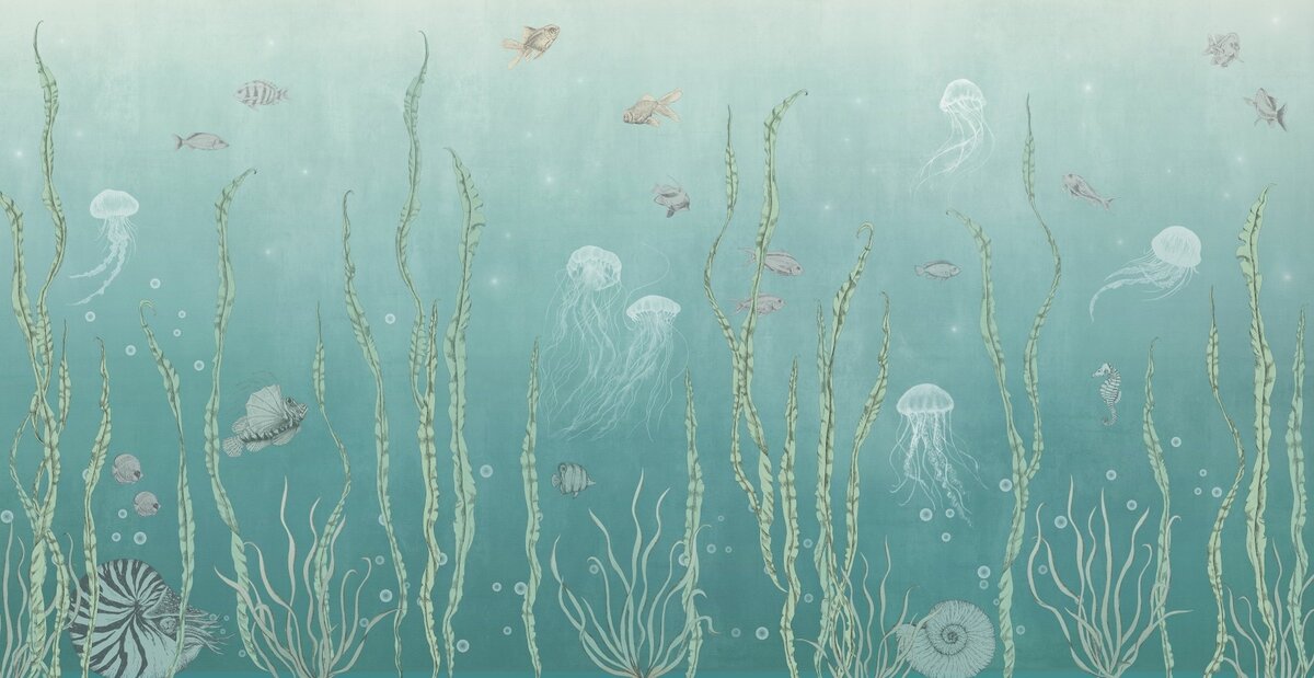 Papier peint : Poissons et méduses parmi les plantes vertes paysage marin sous-marin
