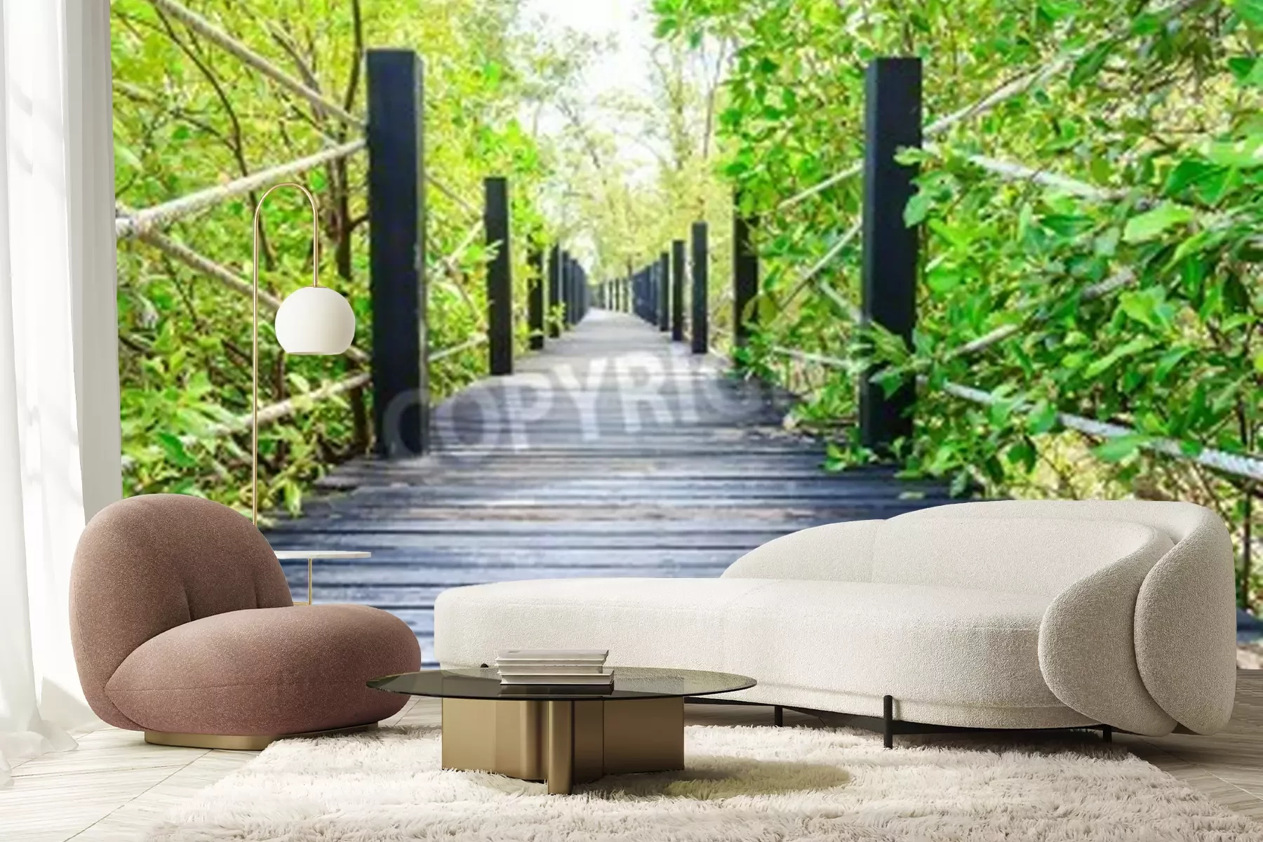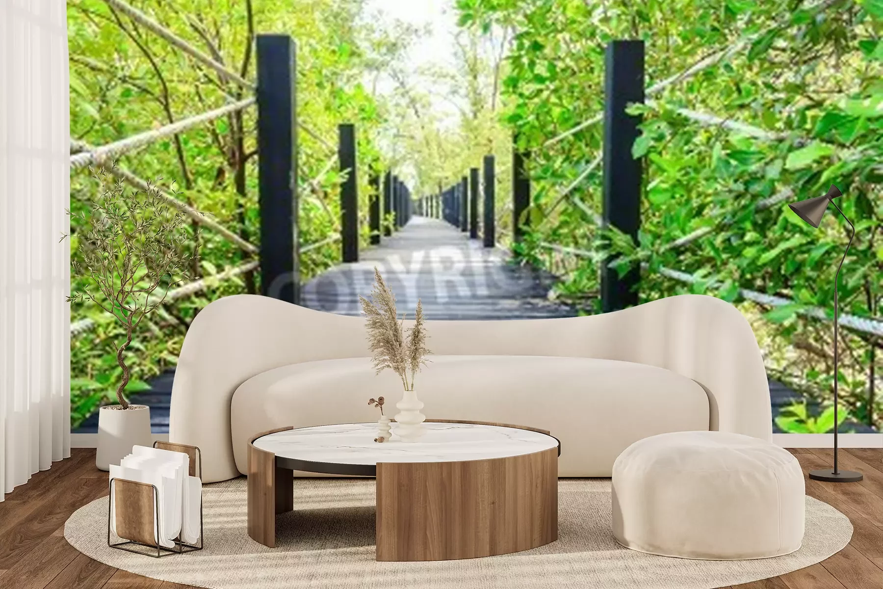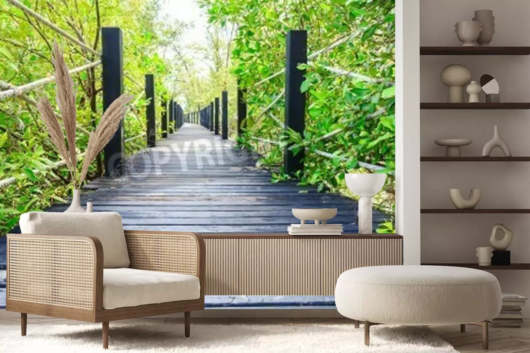 Papier peint  Pont en bois avec des cordes