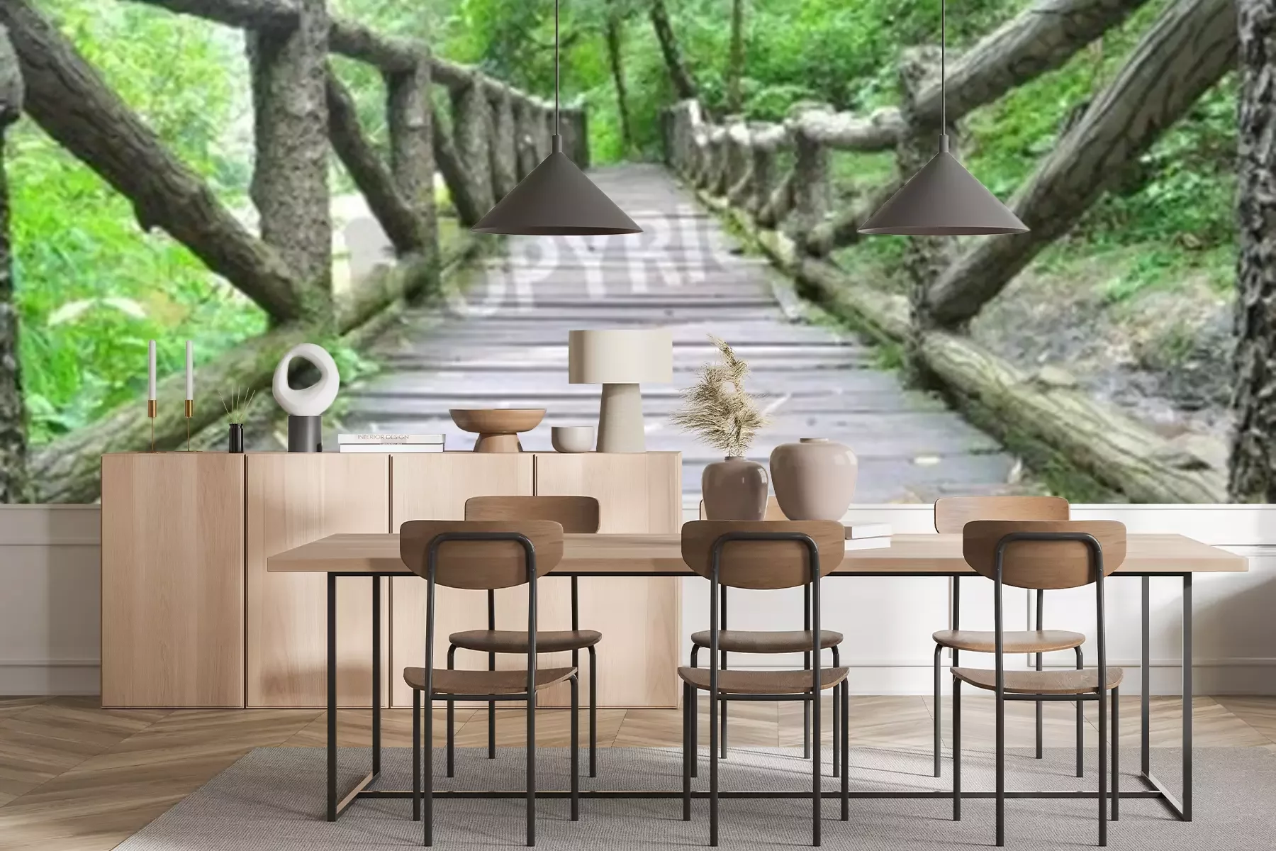 Papier peint  Pont en bois chemin de randonnée
