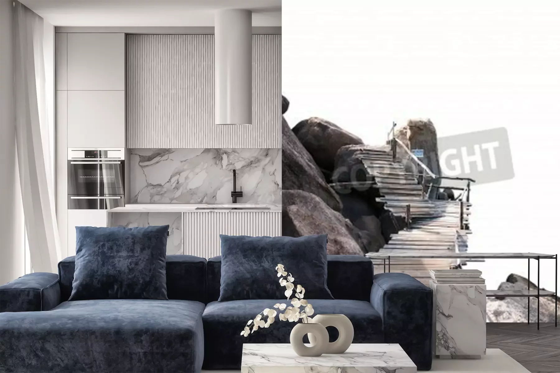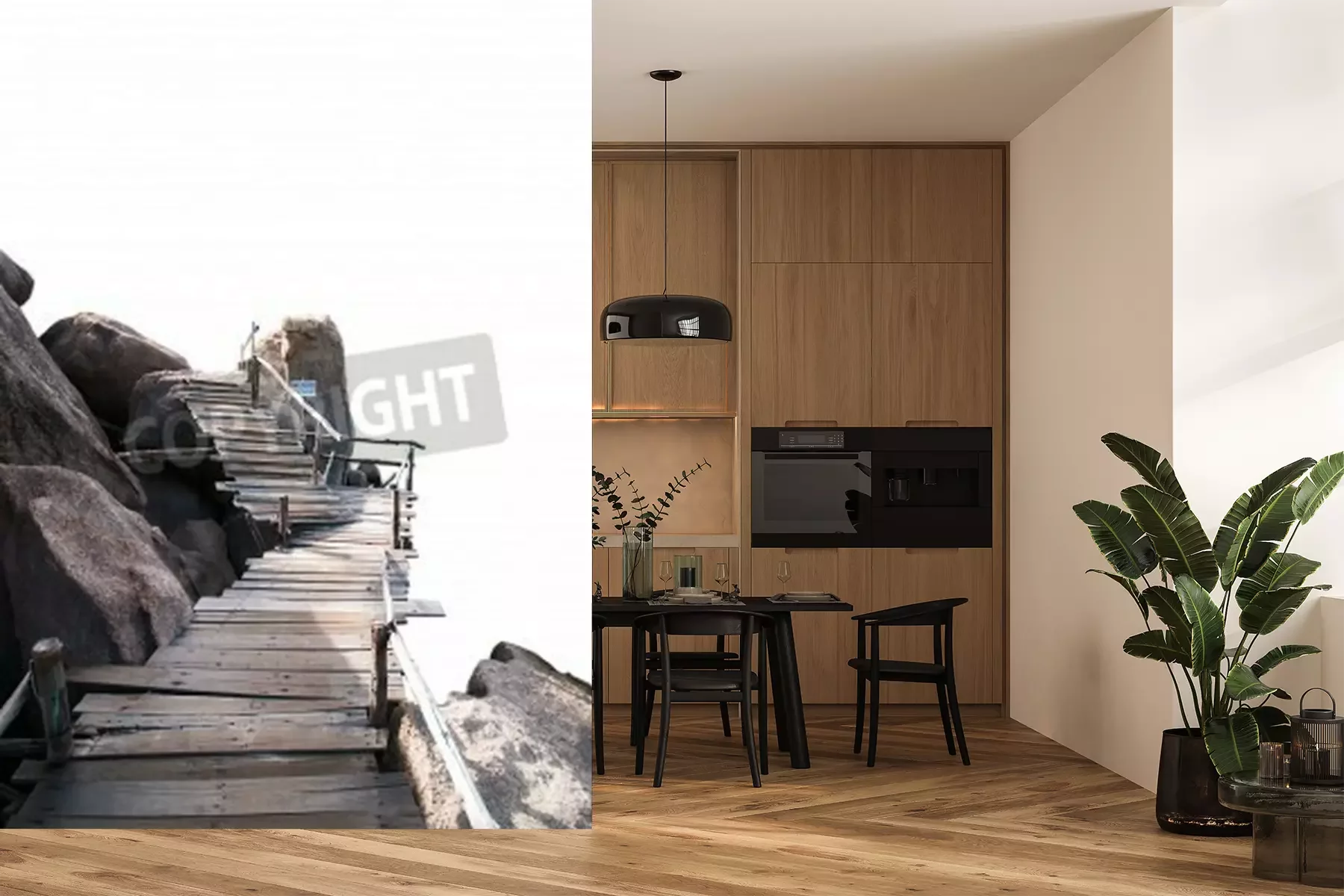 Papier peint  Pont en bois sur des rochers