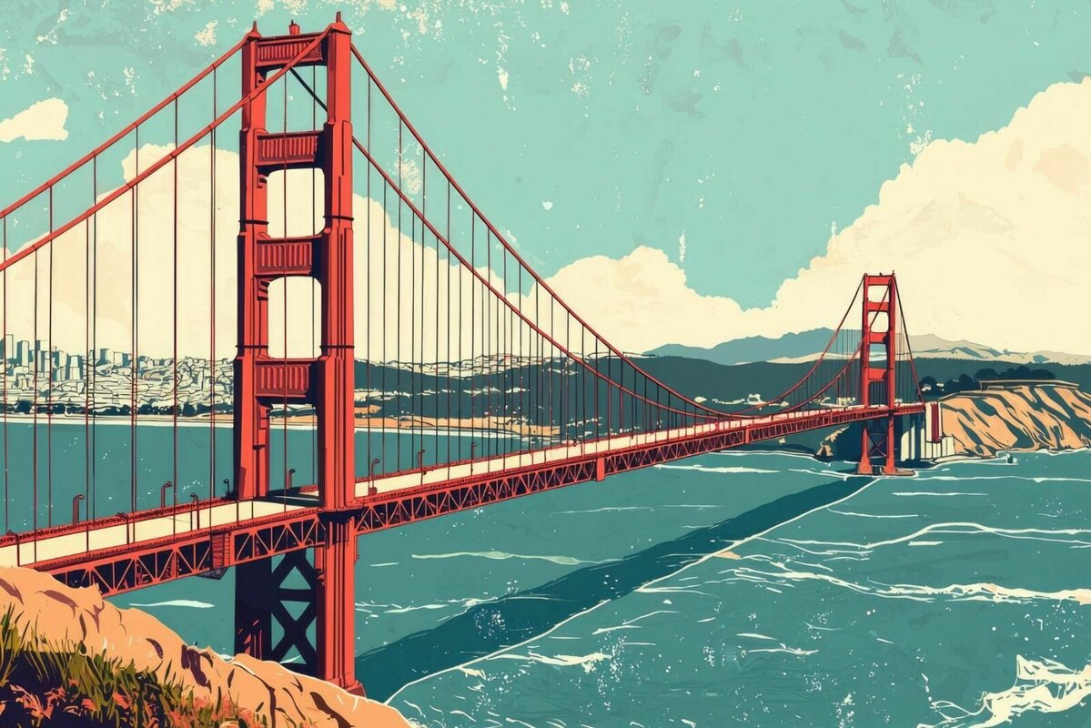 Papier peint : Pont peint sur fond de métropole