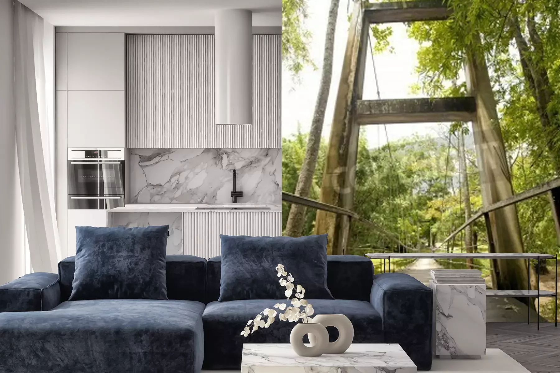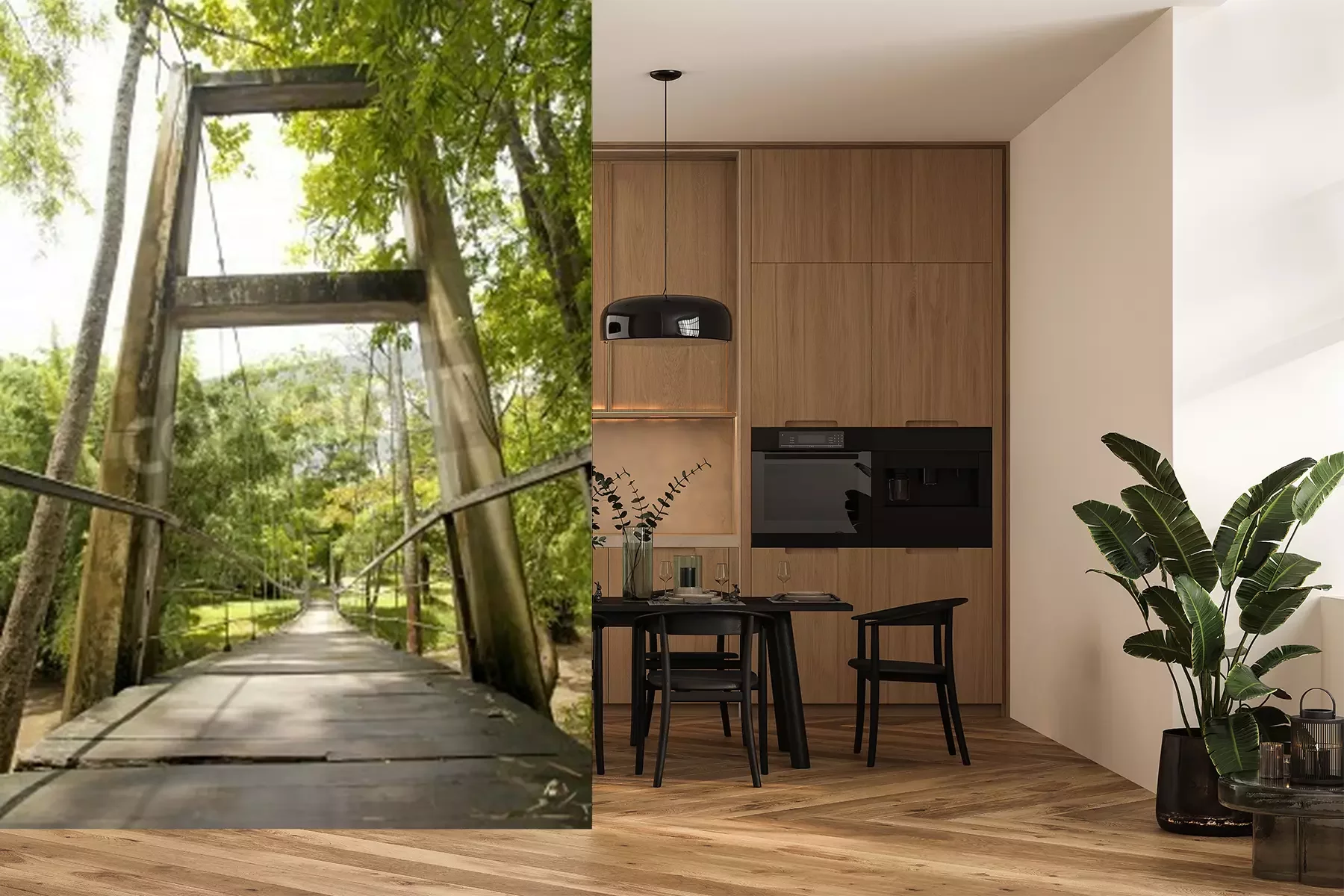 Papier peint  Pont rivière marécageuse