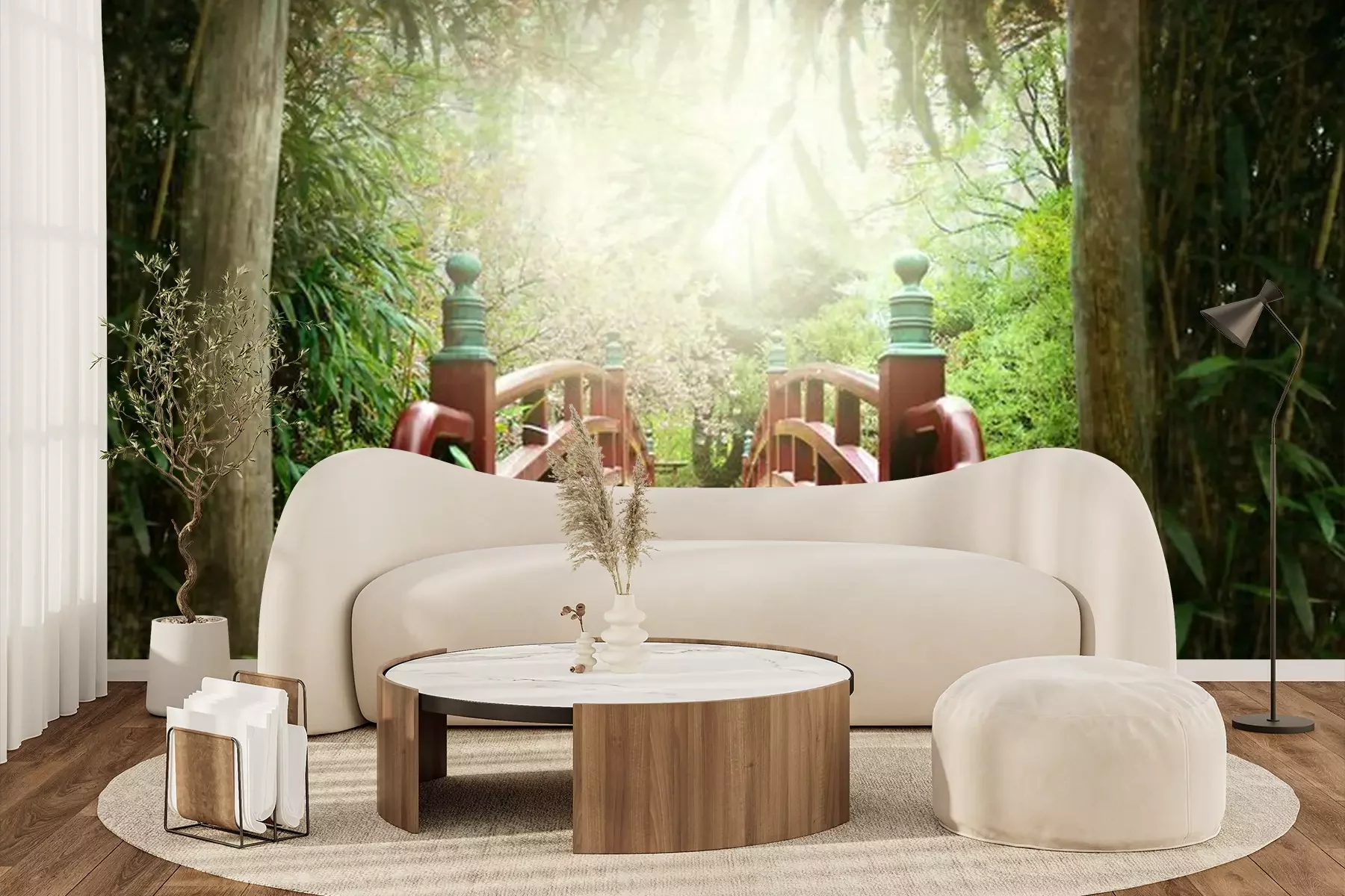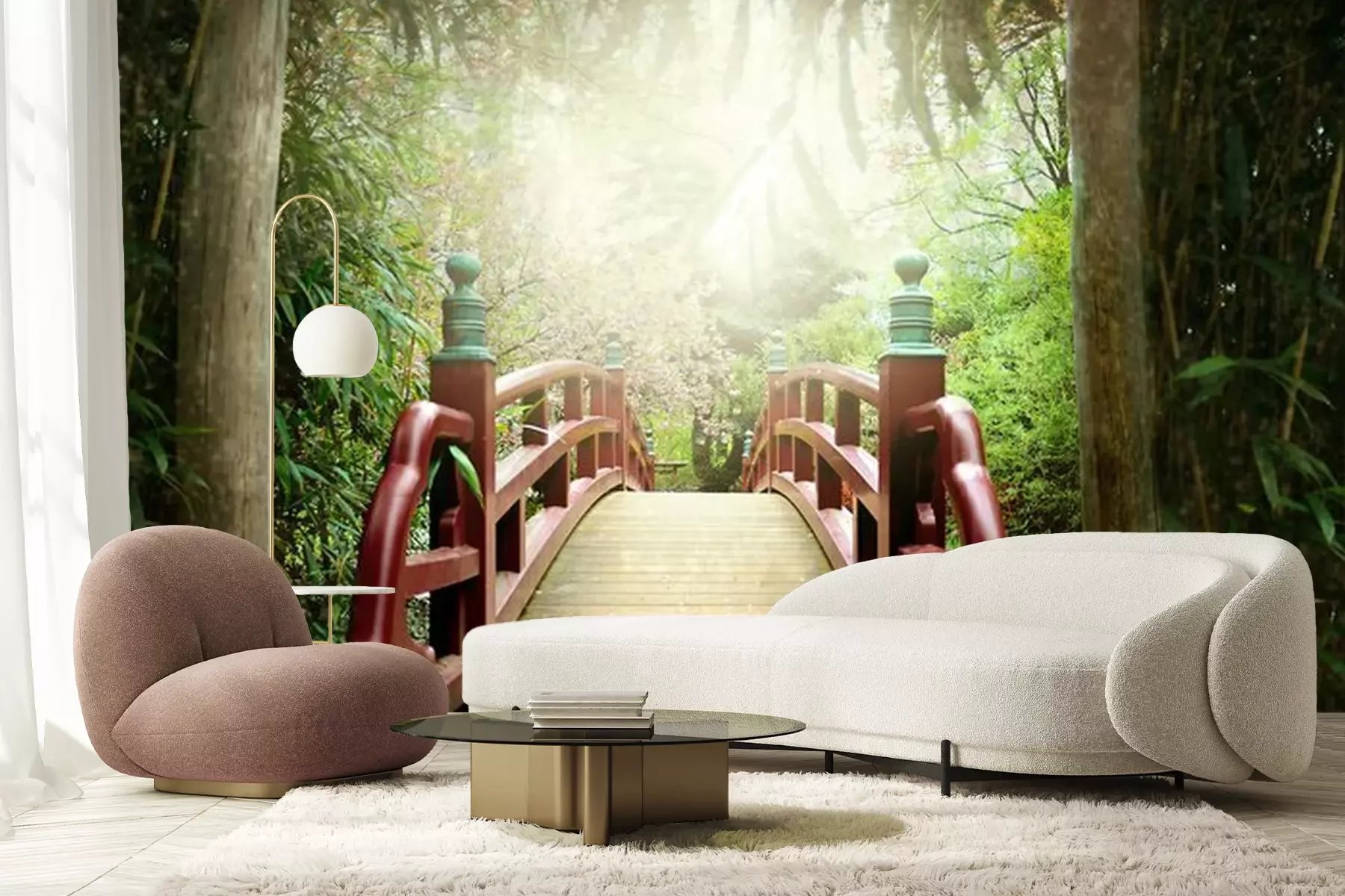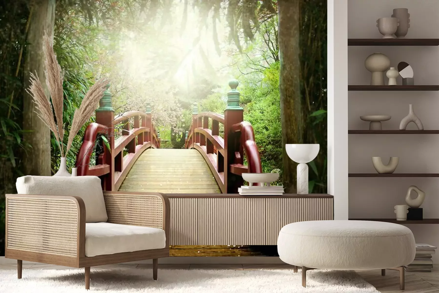 Papier peint  Pont rouge style japonais