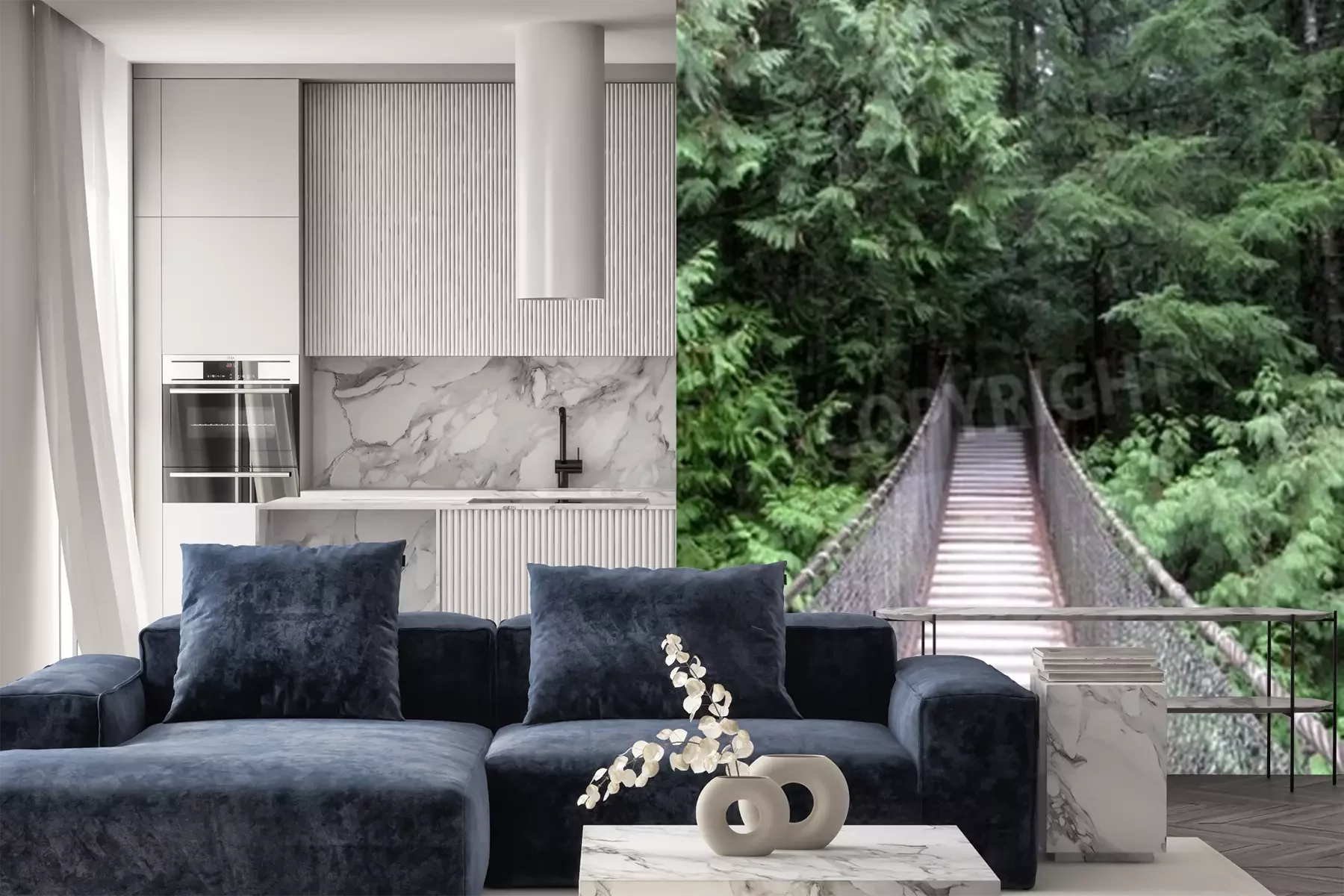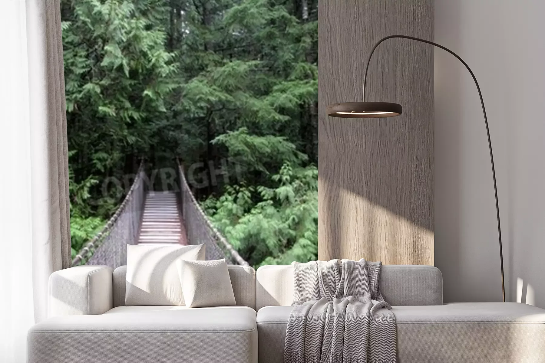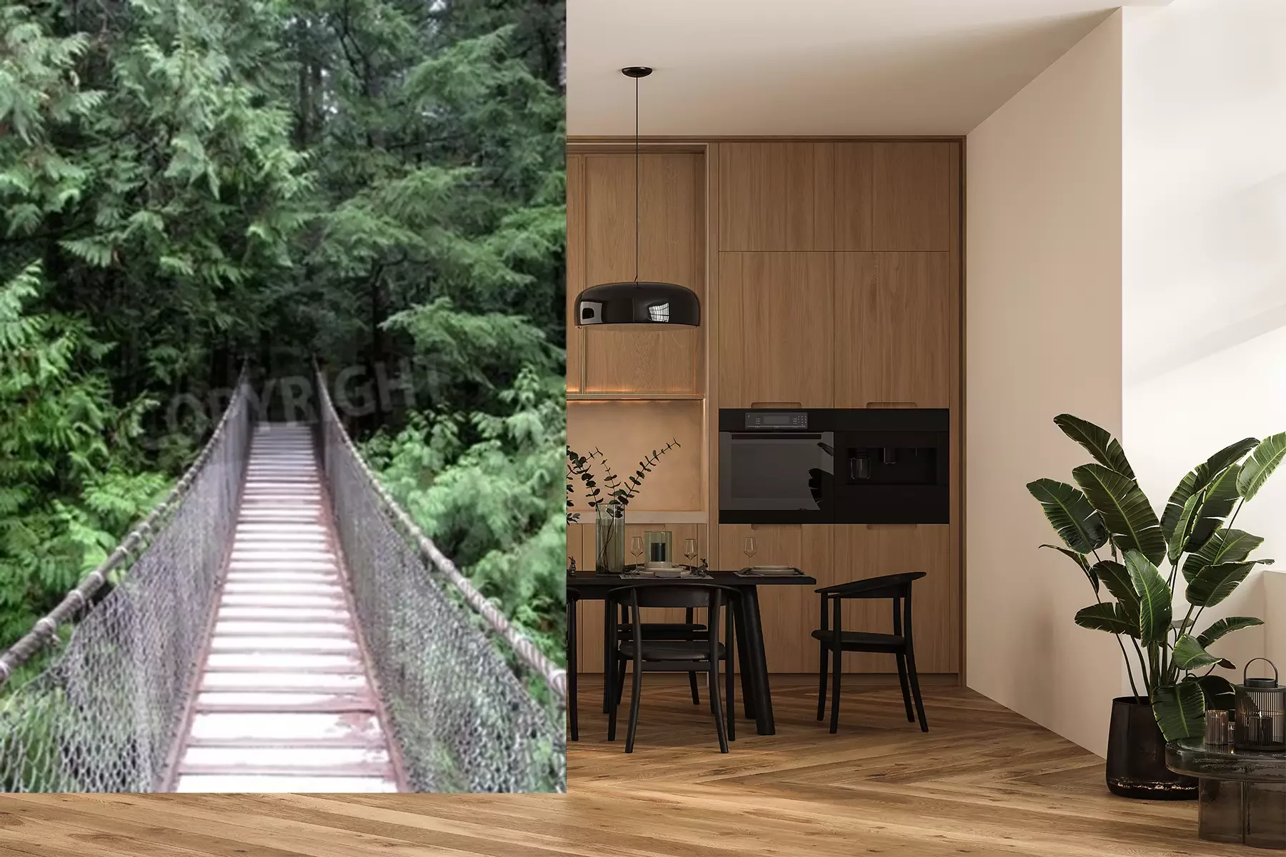 Papier peint  Pont suspendu forêt dense