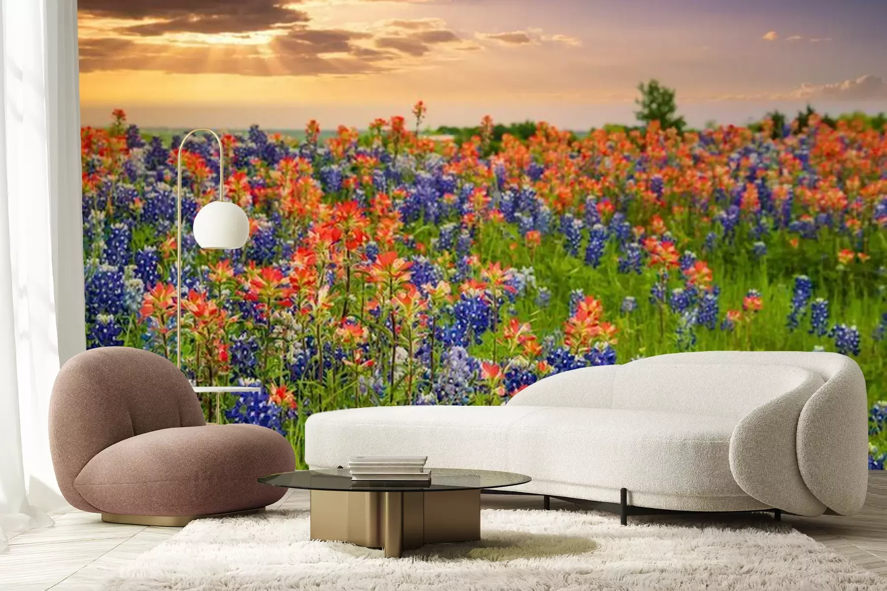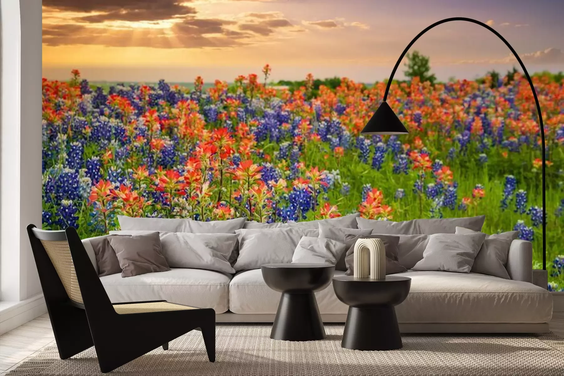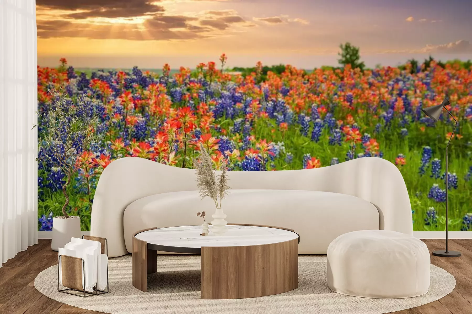 Papier peint  Prairie avec de grandes fleurs