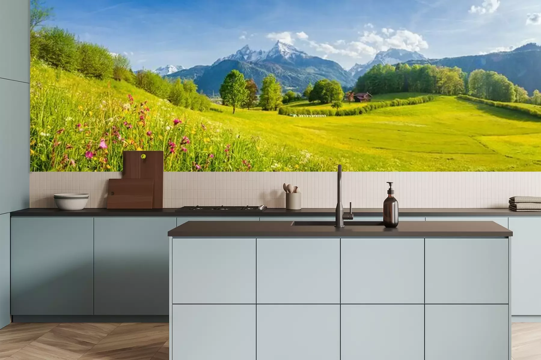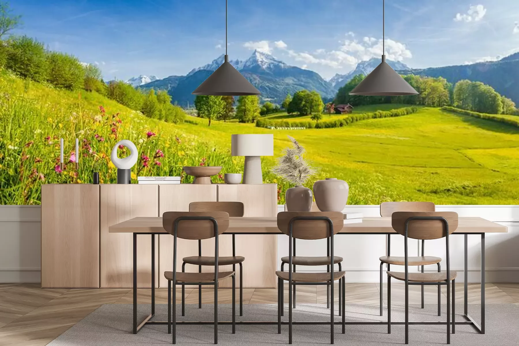 Une vallée verdoyante avec vue sur les AlpesLivraison sans problème assurée par des transporteurs de confiance