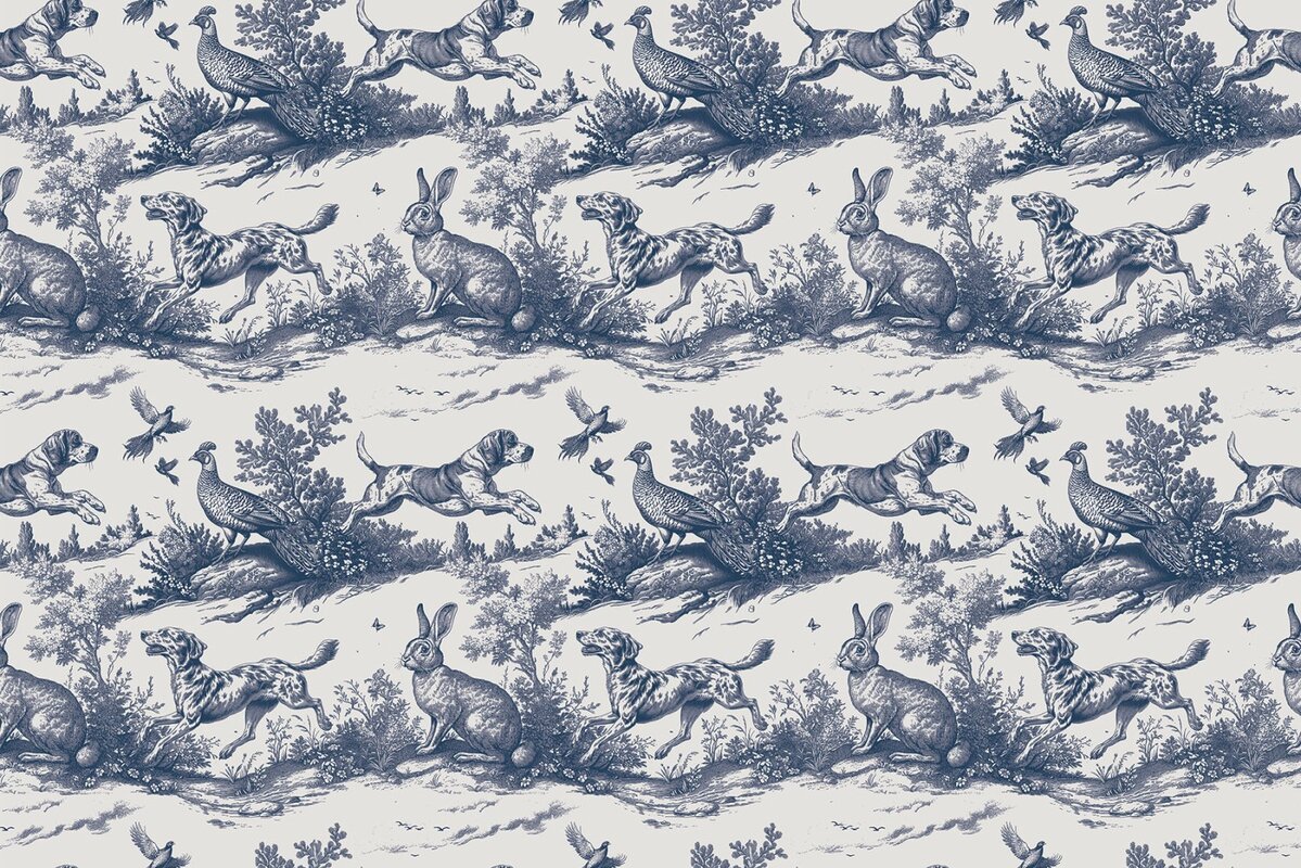 Papier peint : Prairie sauvage avec des chiens et des lièvres