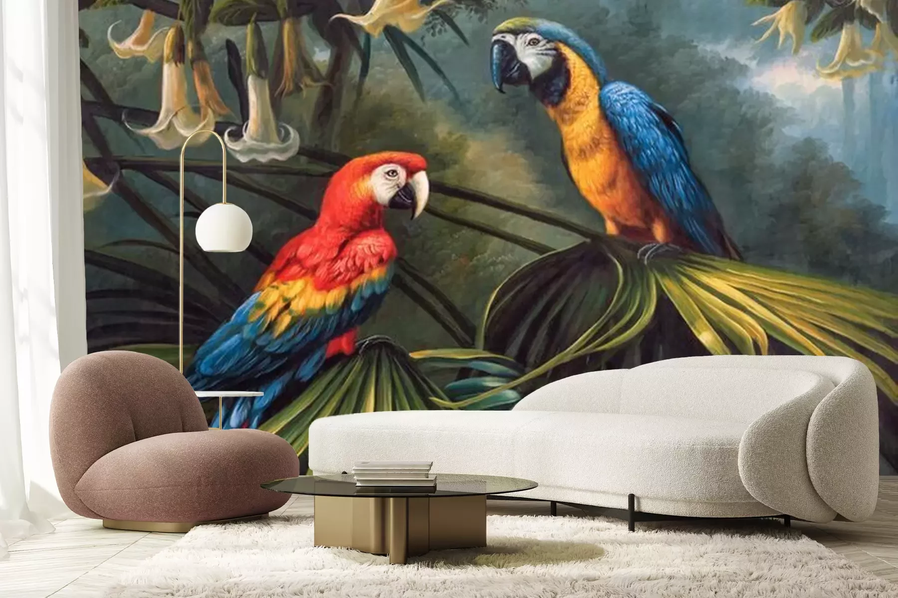 Papier peint  Psittaciformes assis sur une branche dans la jungle