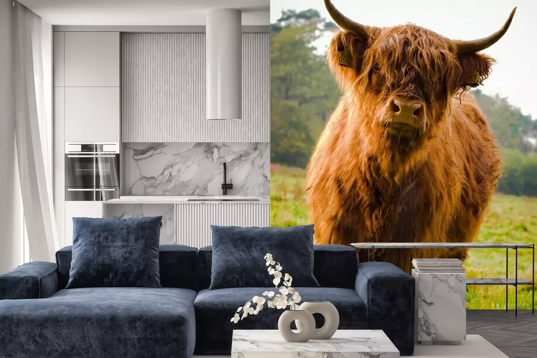 Papier peint  Race écossaise des plateaux dans l'herbe