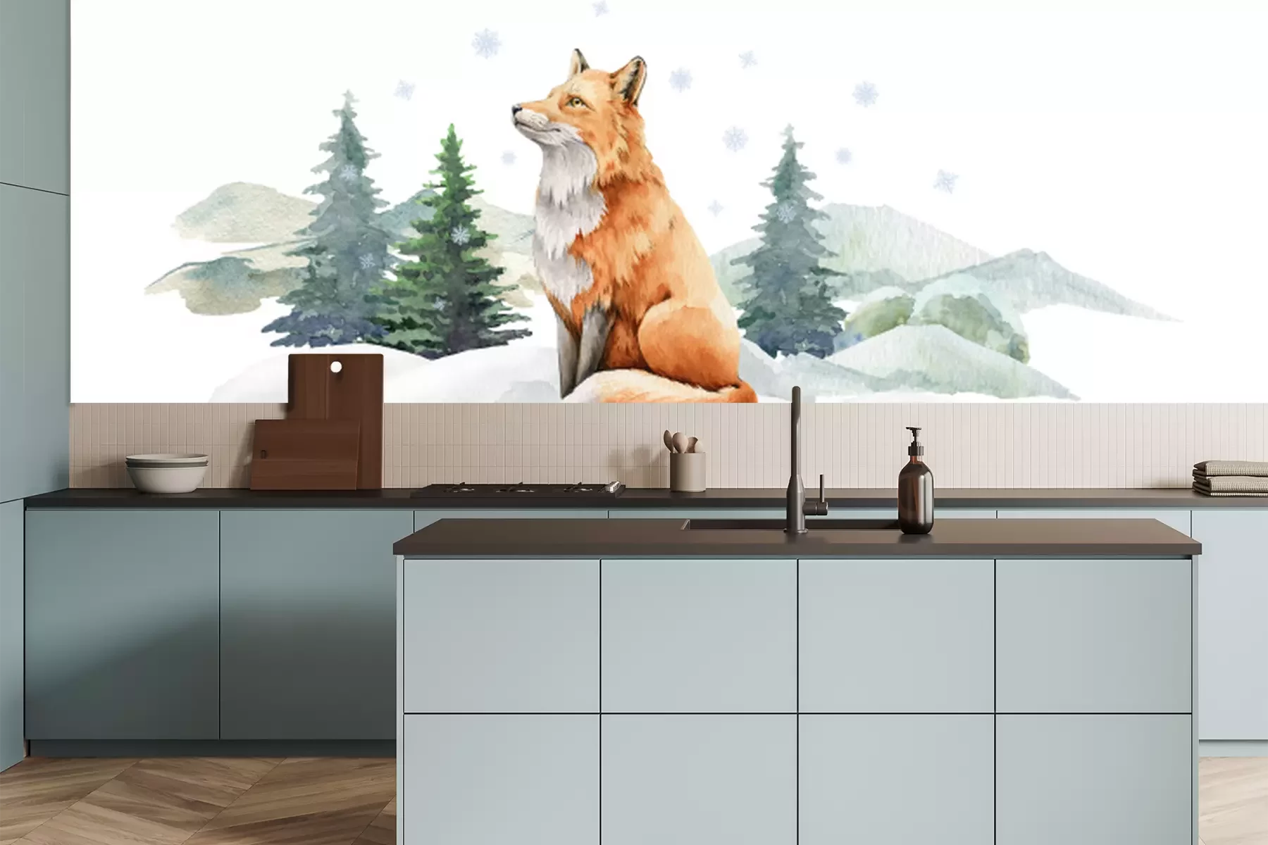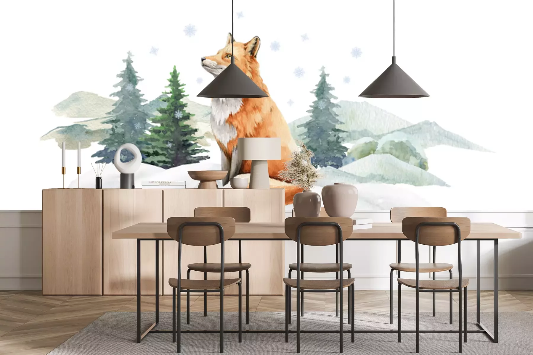 Papier peint  Renard avec un paysage hivernal en arrière-plan