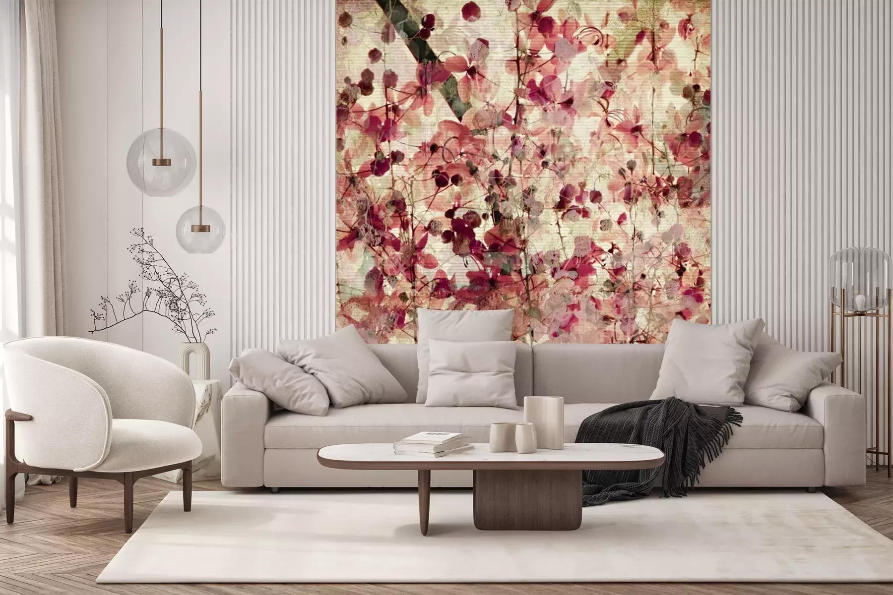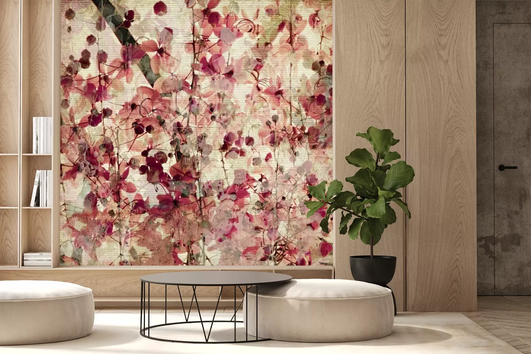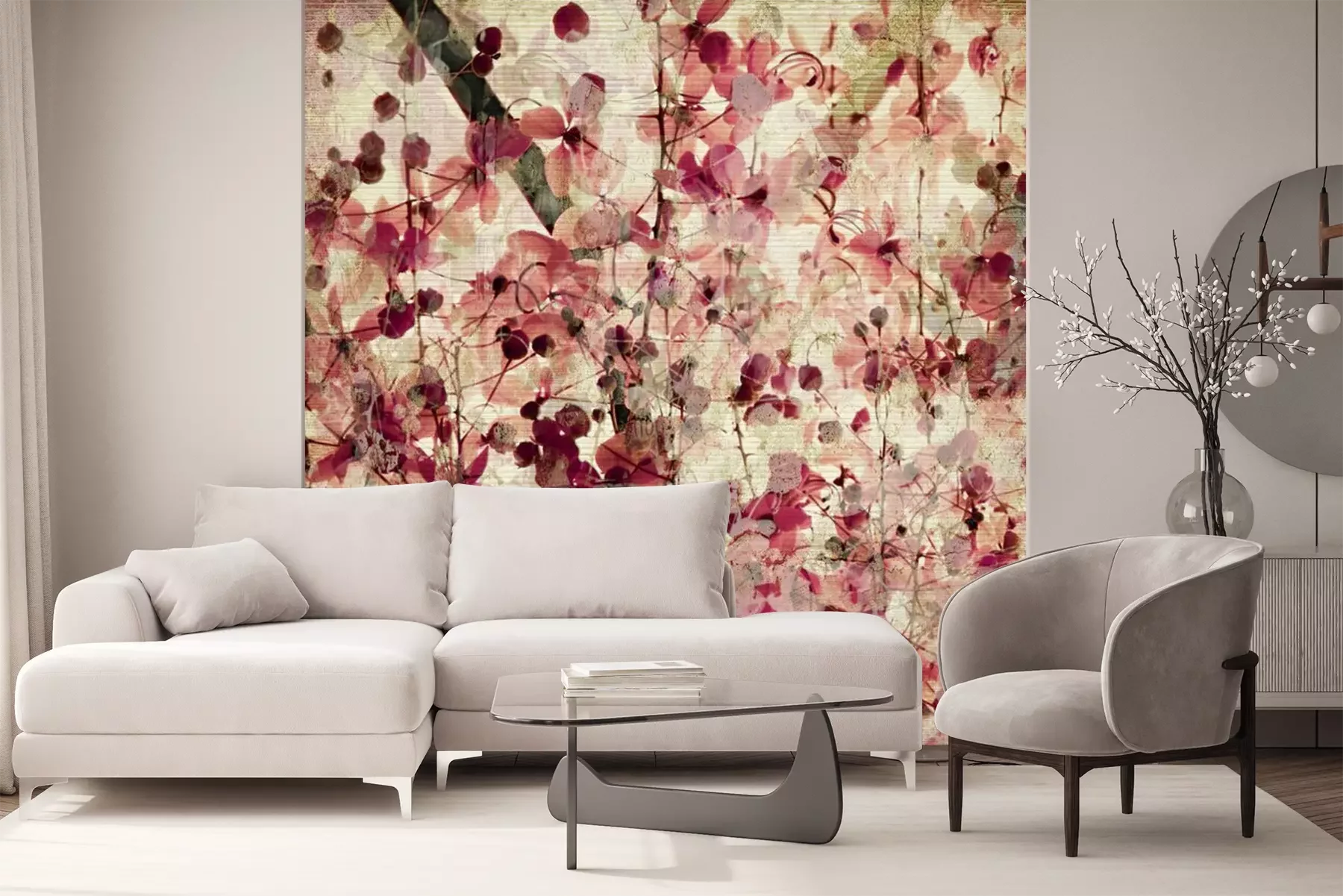 Papier peint  Rétro fleurs rouges