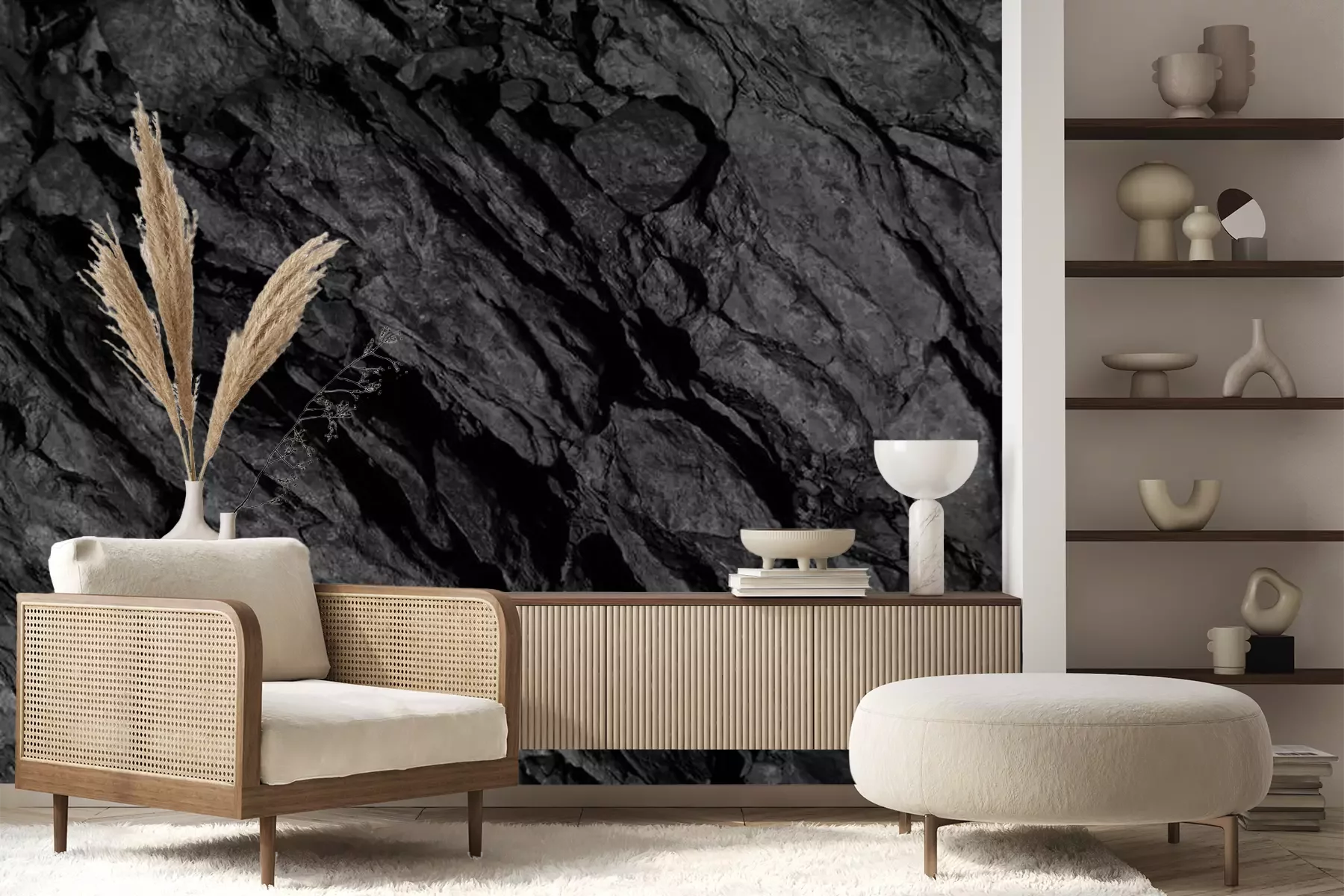 Texture de pierre noire avec effet 3DPapier peint