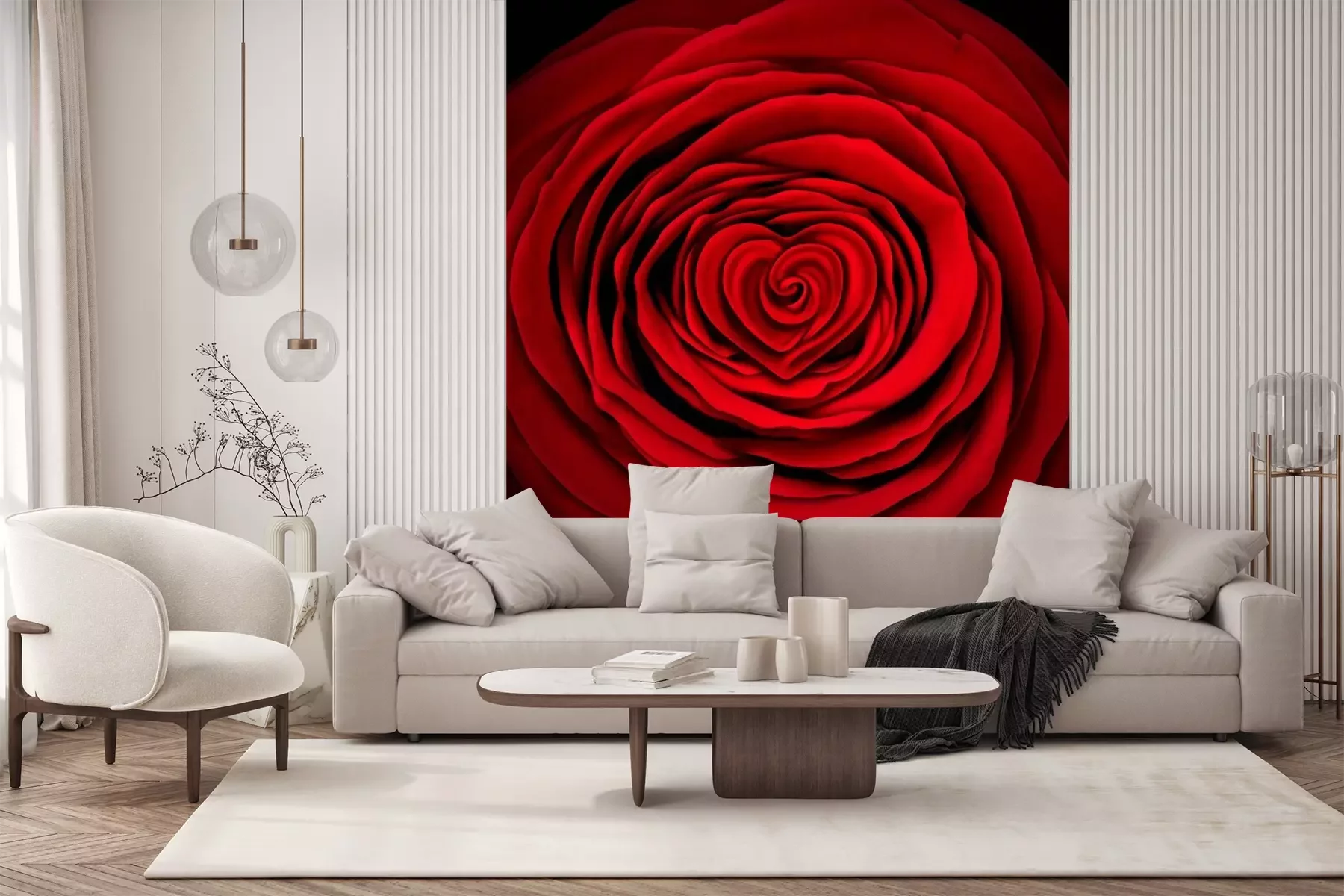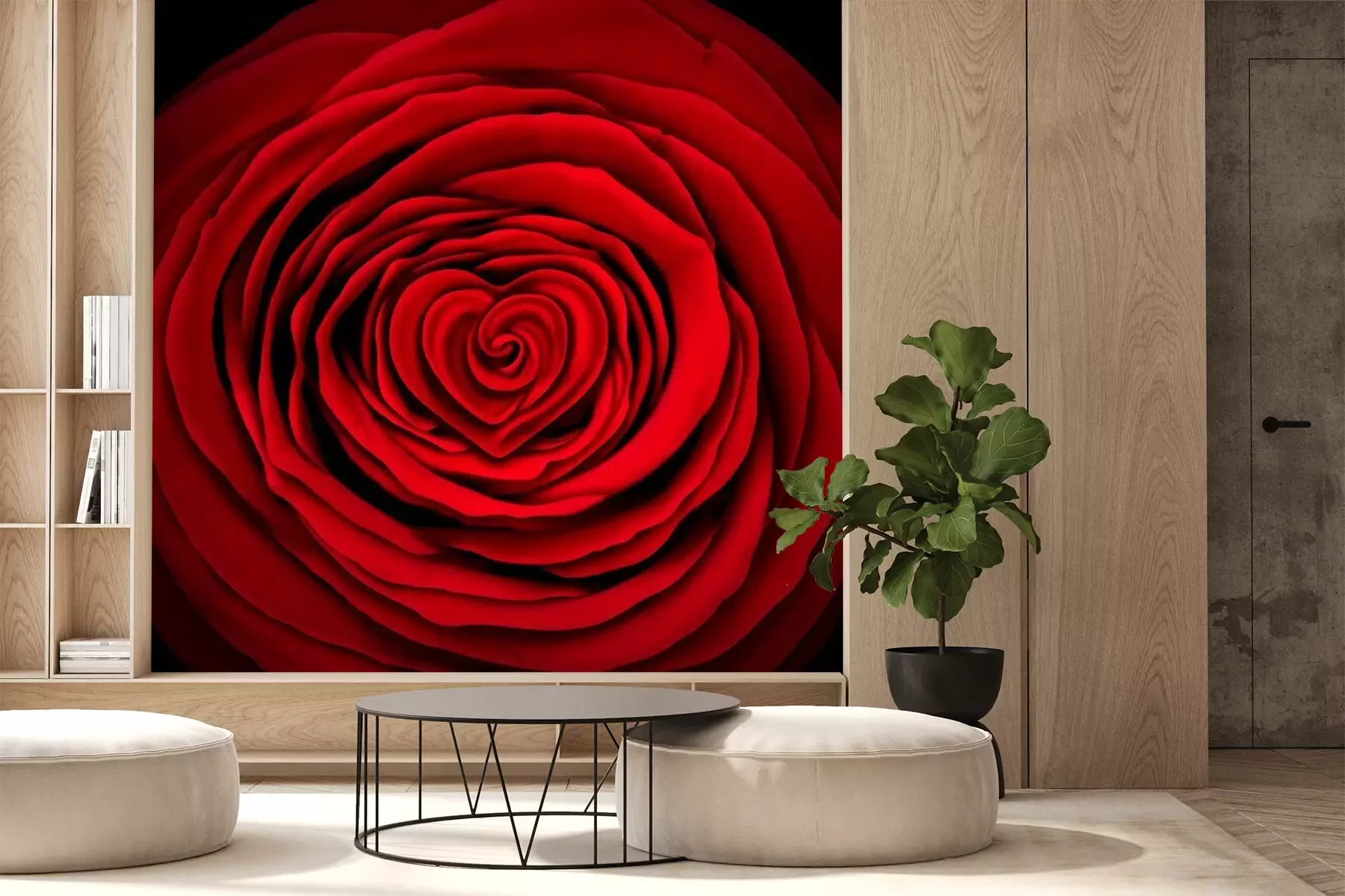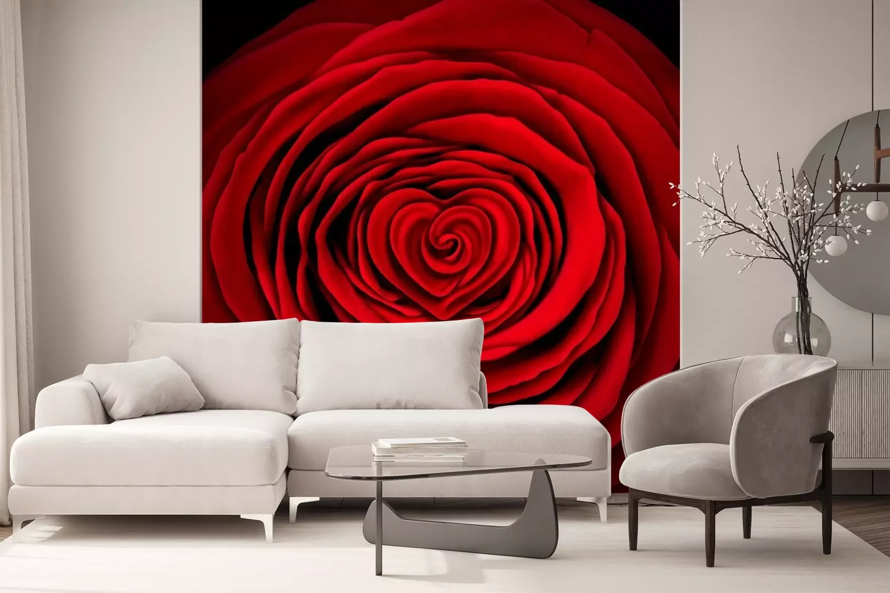 Papier peint  Rose rouge sur fond noir