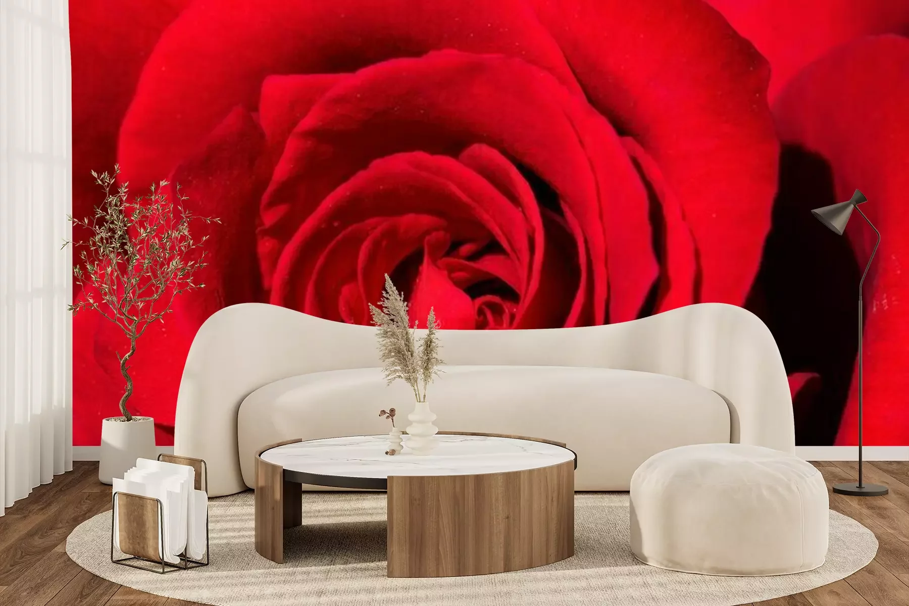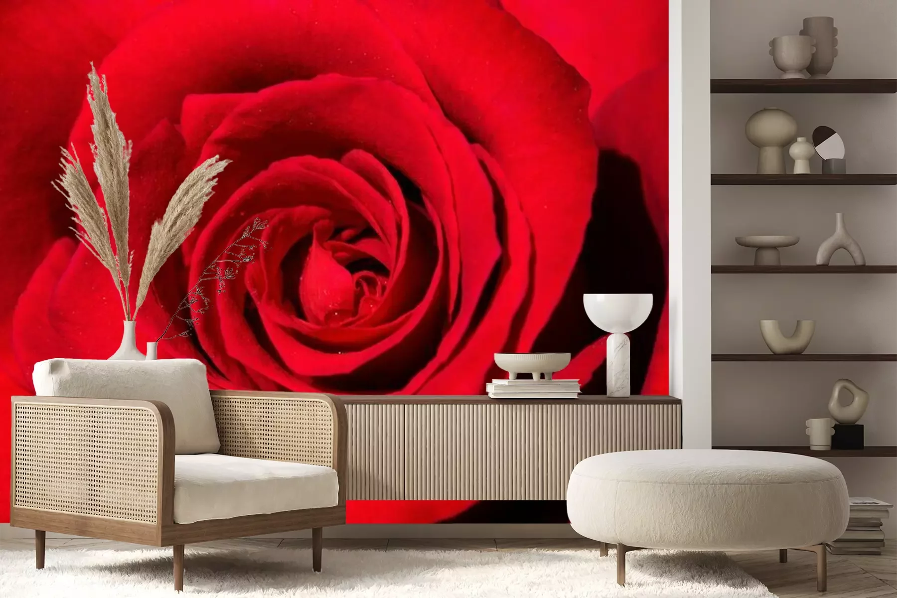 Papier peint  Rose rouge veloutée