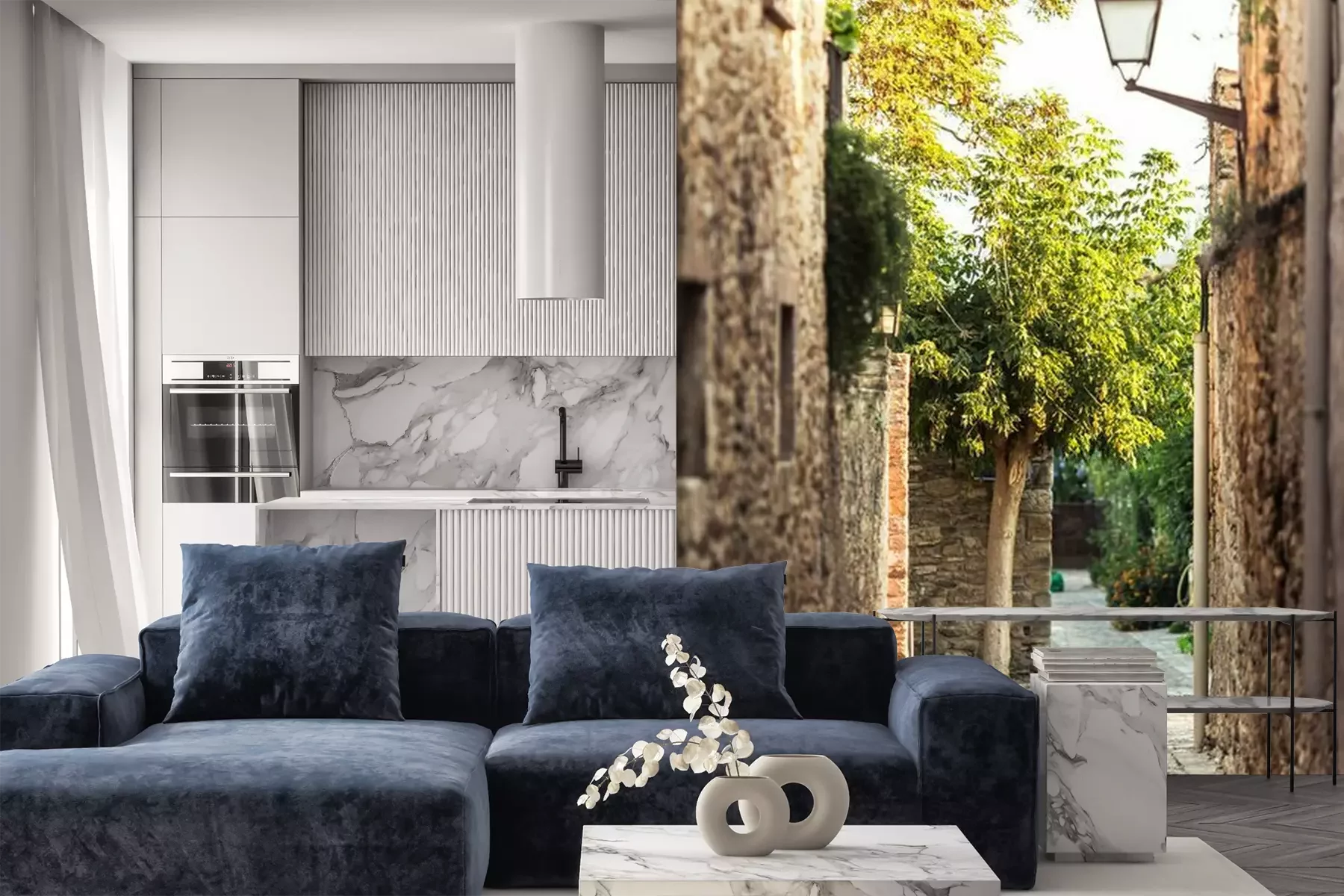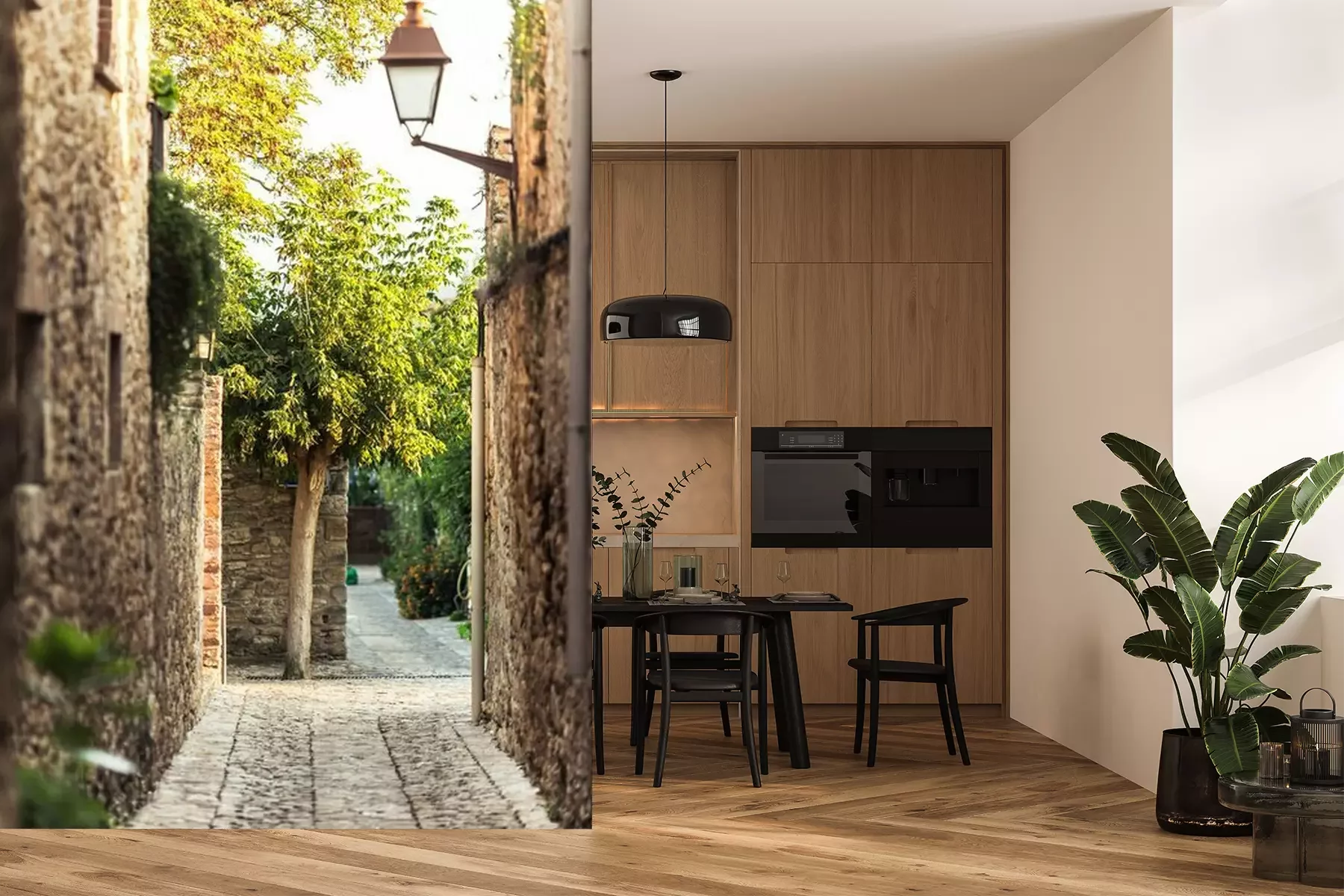 Ruelle pavée au lever du soleil