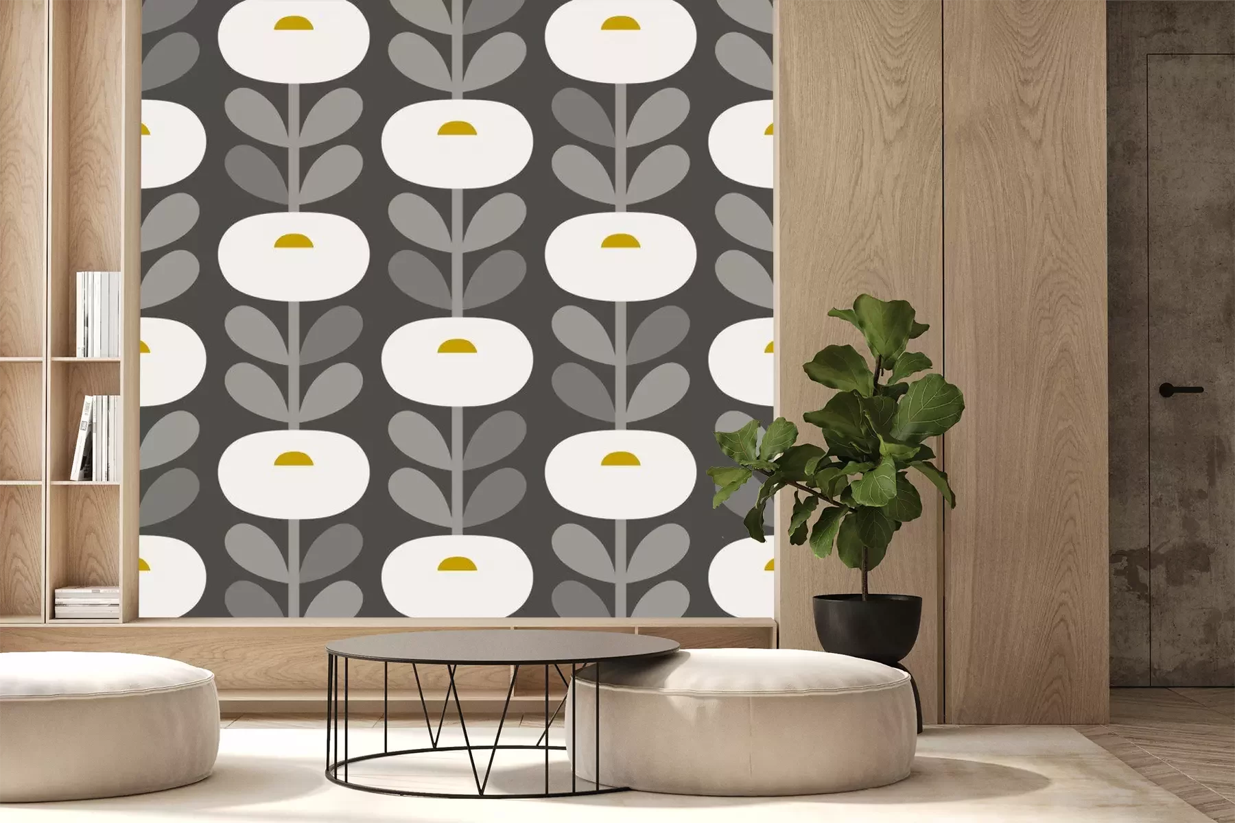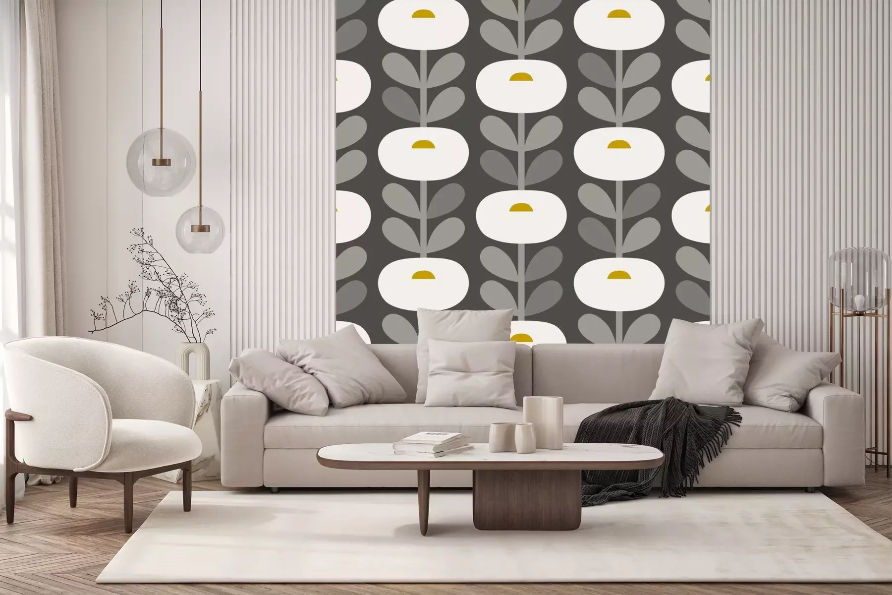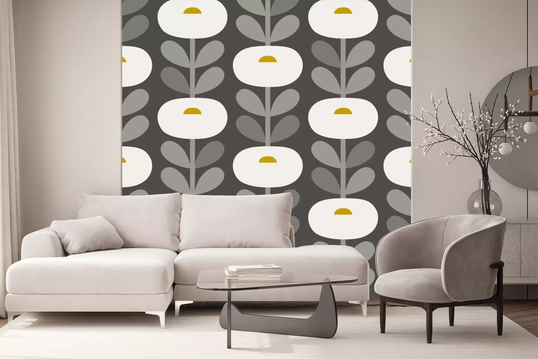 Papier peint  Scandinavian style daisies gray vector seamless pattern.