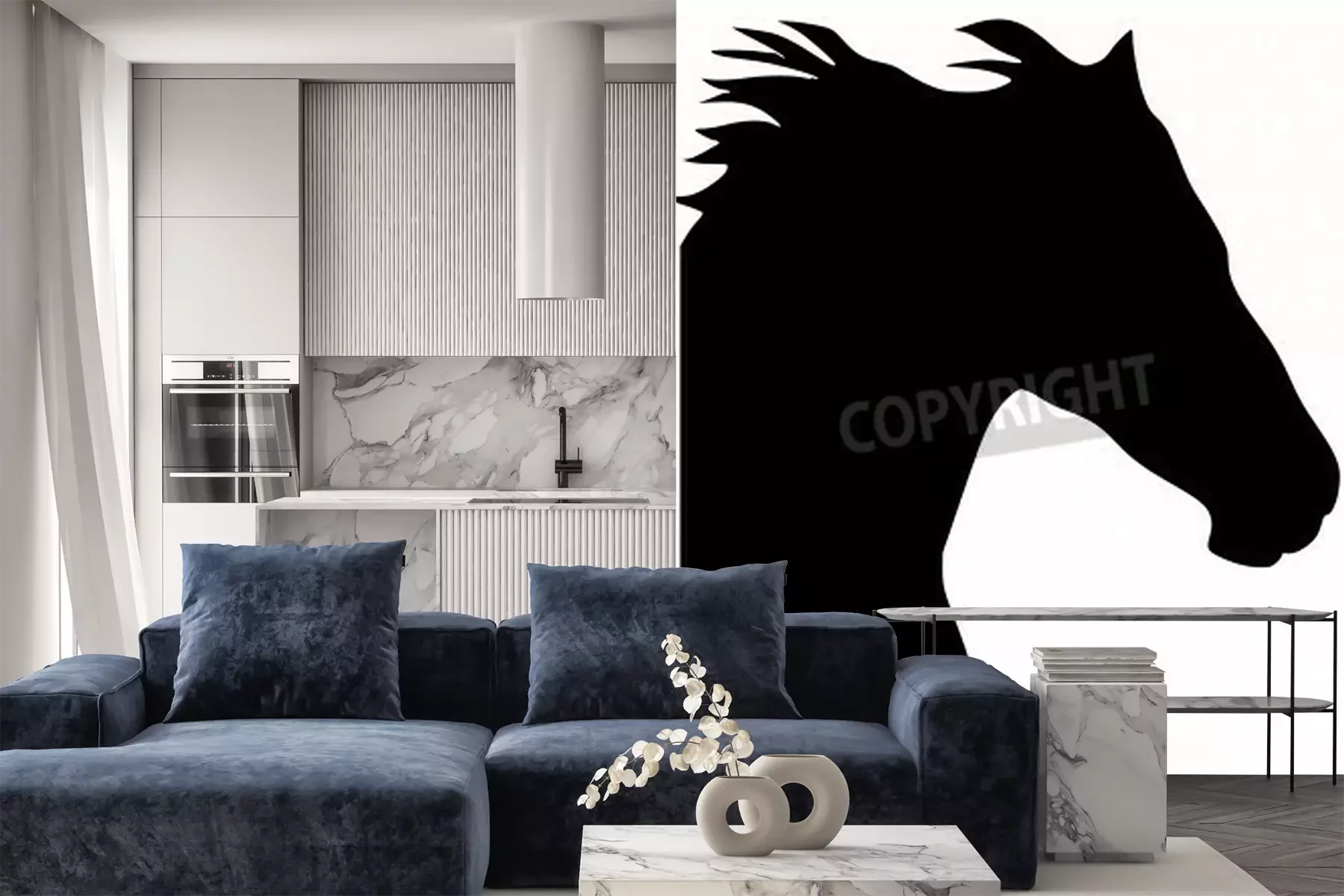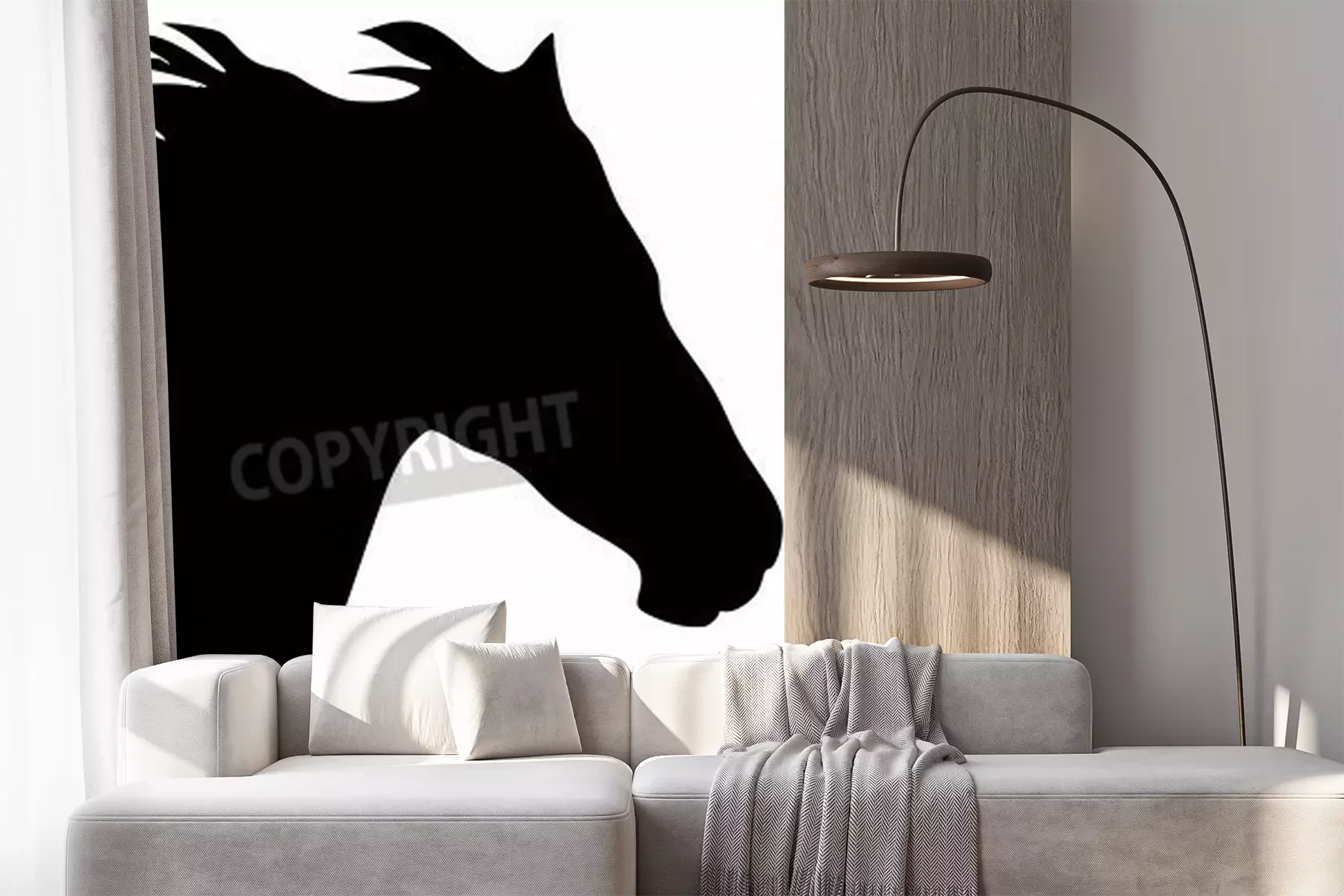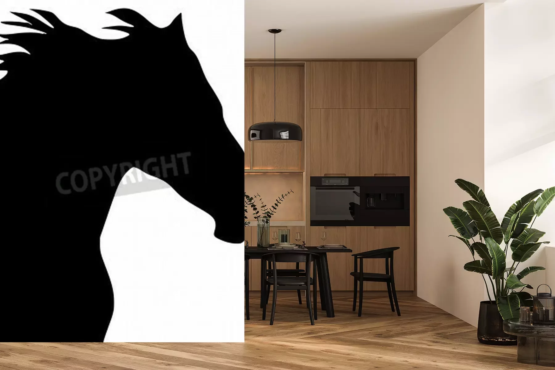 Papier peint  Silhouette de cheval noir et blanc