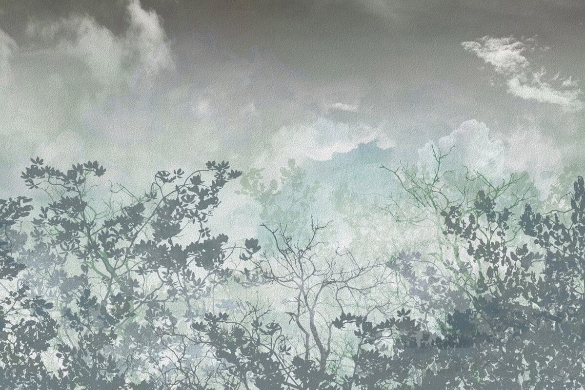 Papier peint : Silhouettes d'arbres sur un fond aquarelle