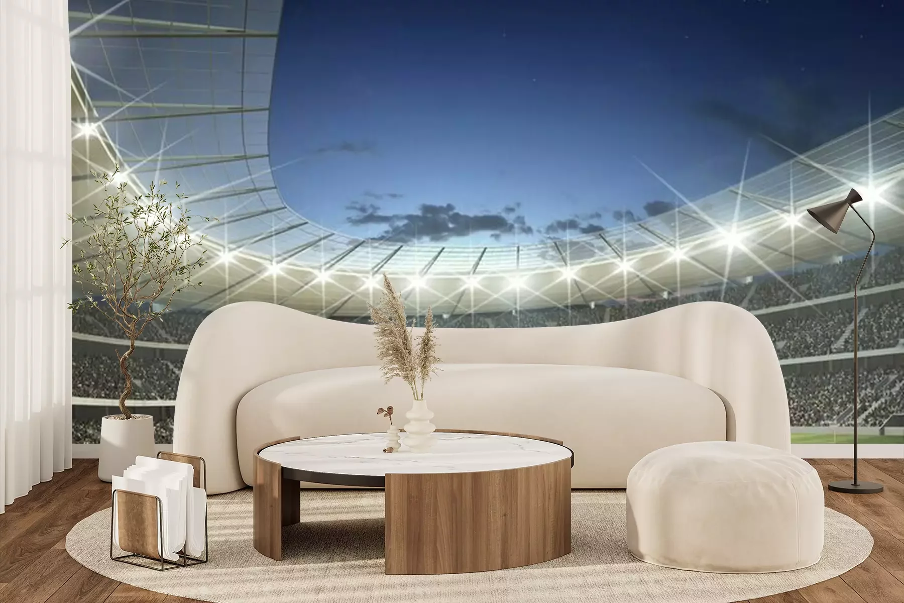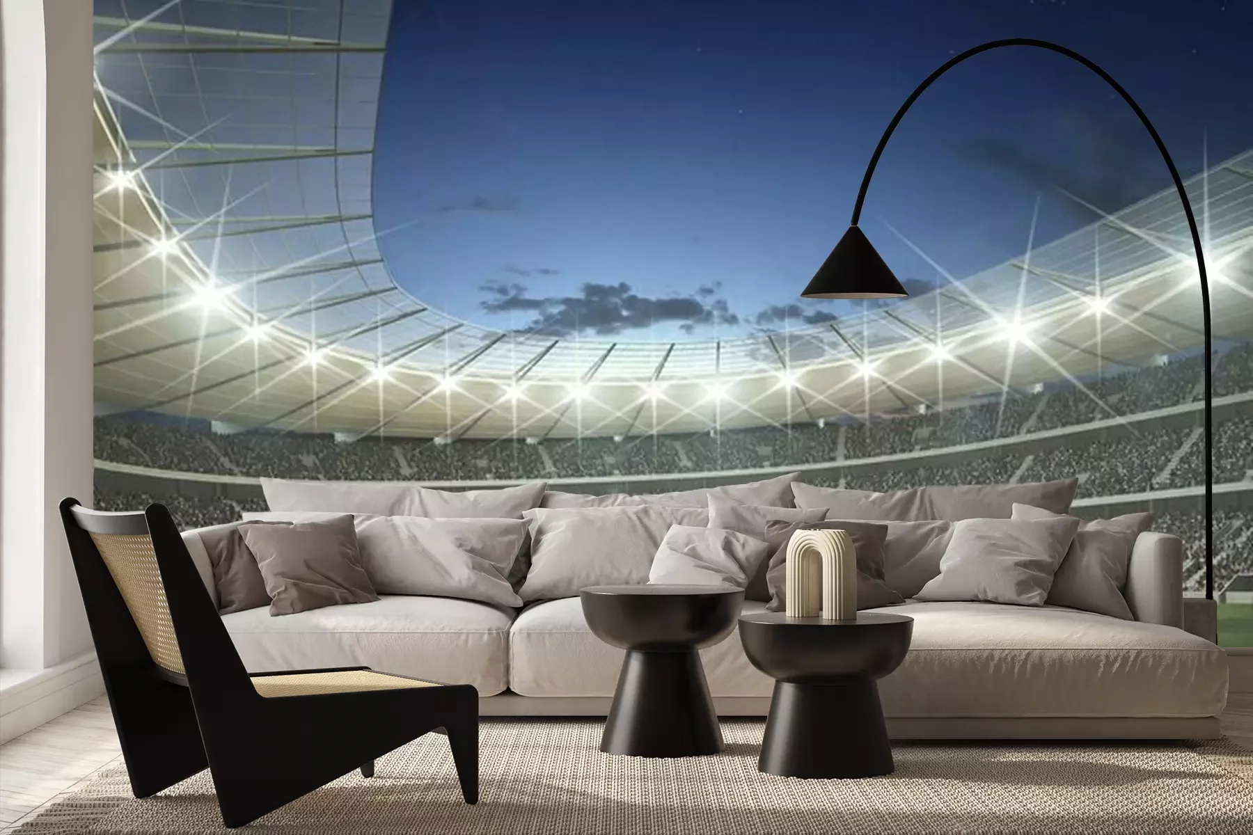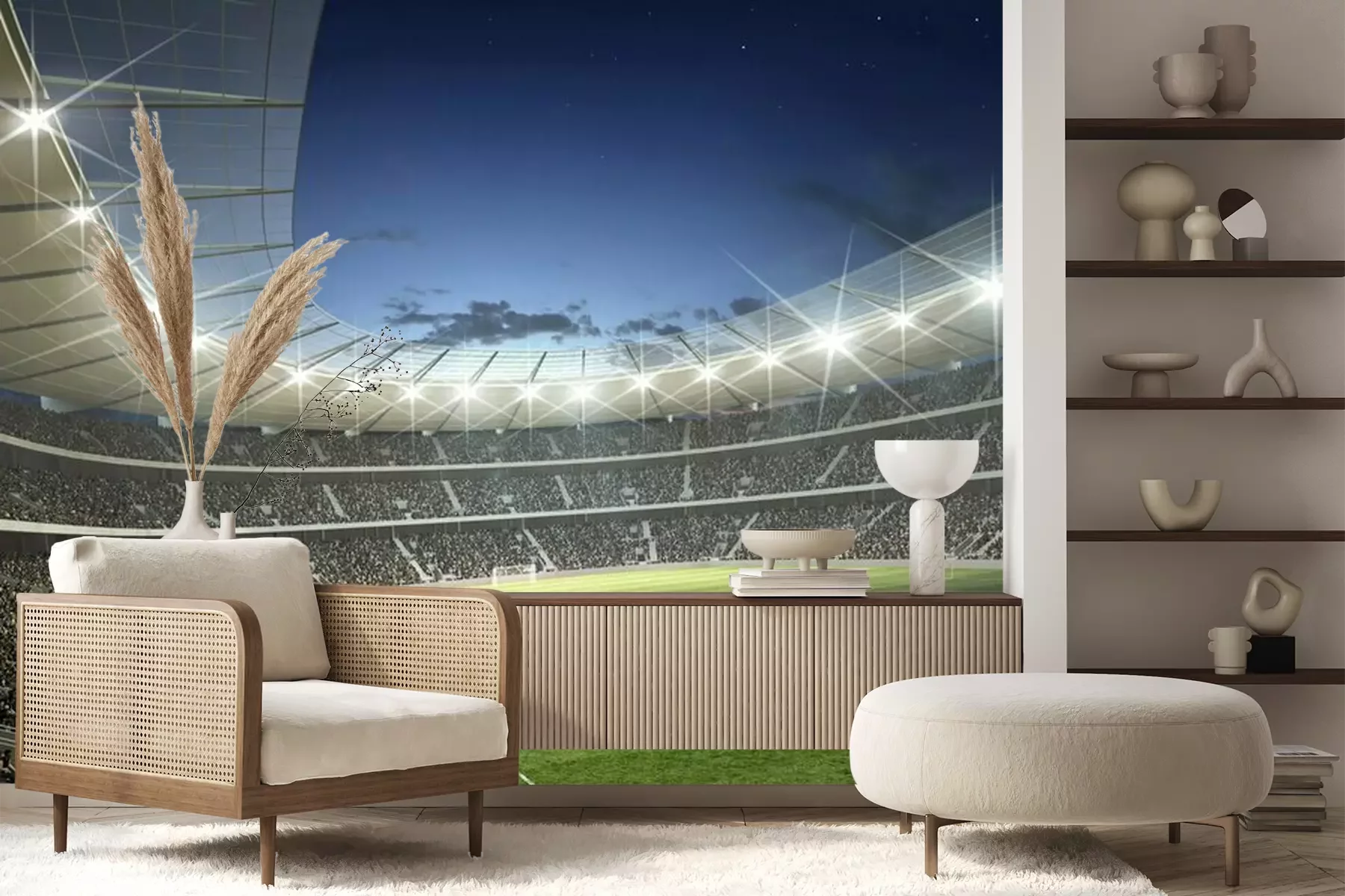 Un stade de football rempli sous un ciel nocturnePapier peint