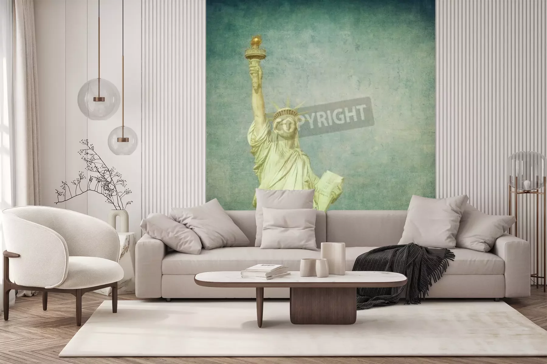 Papier peint  Statue de la Liberté fond effet décapé