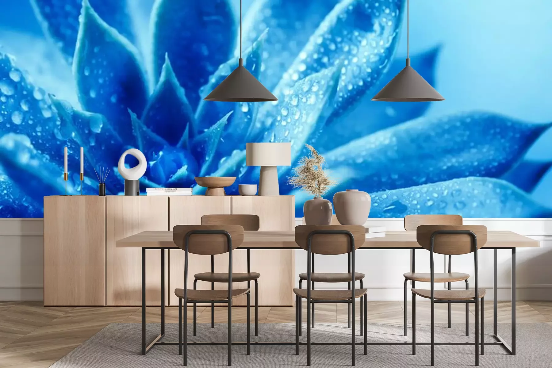 Papier peint  Succulente en bleu