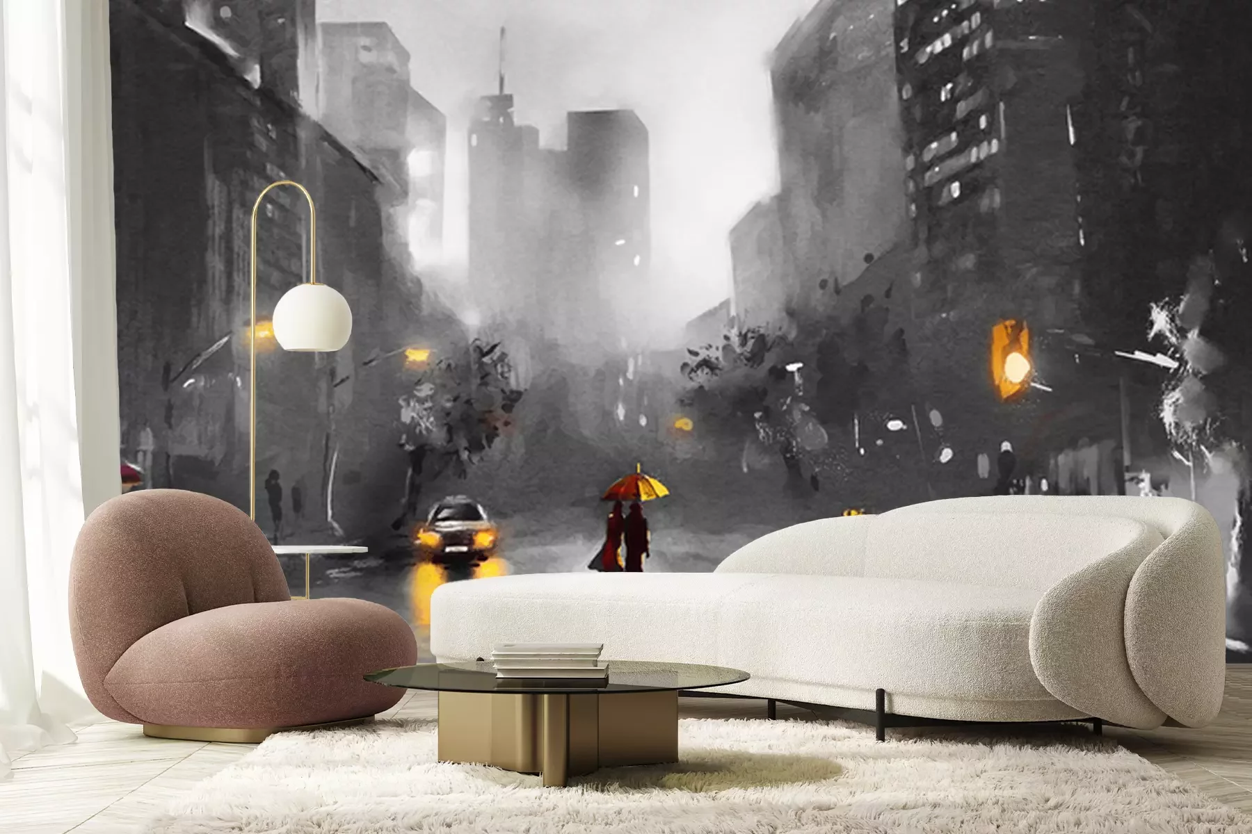 Papier peint  Taxis new-yorkais par une nuit pluvieuse