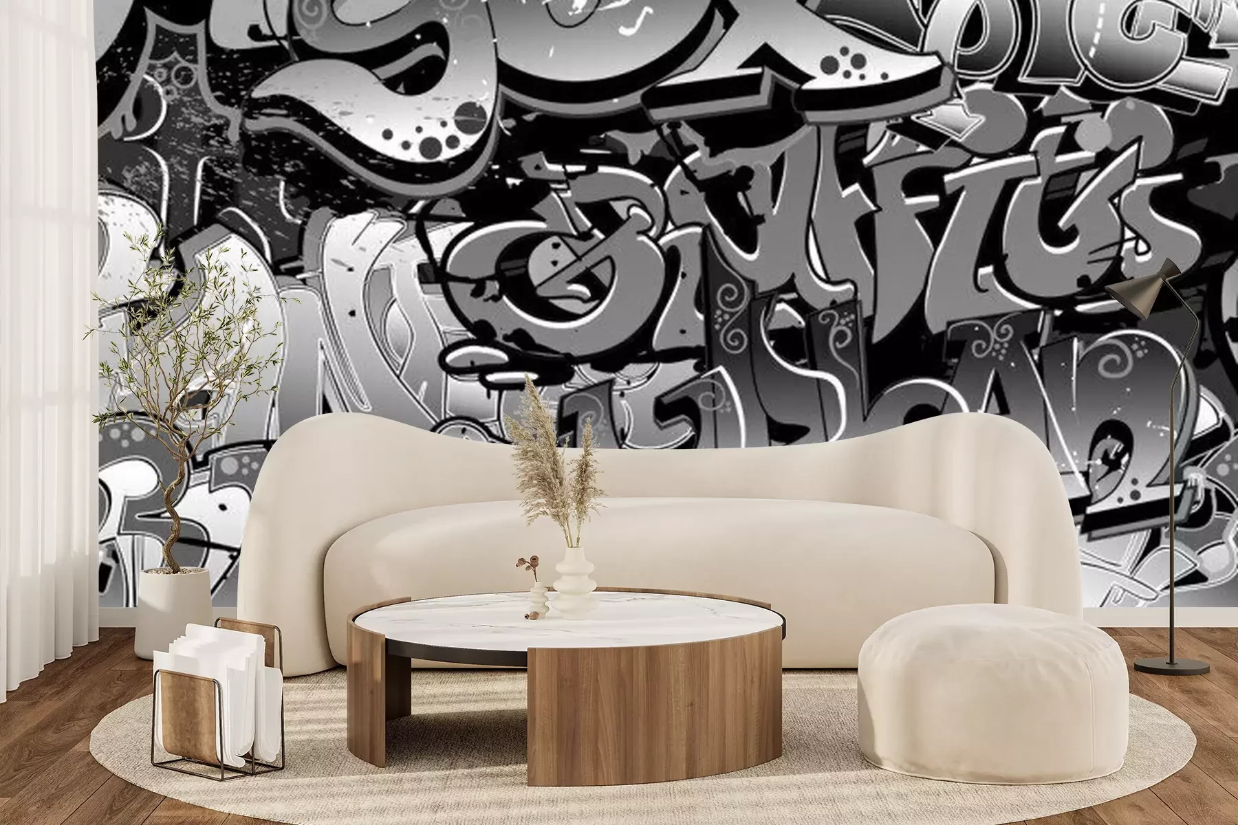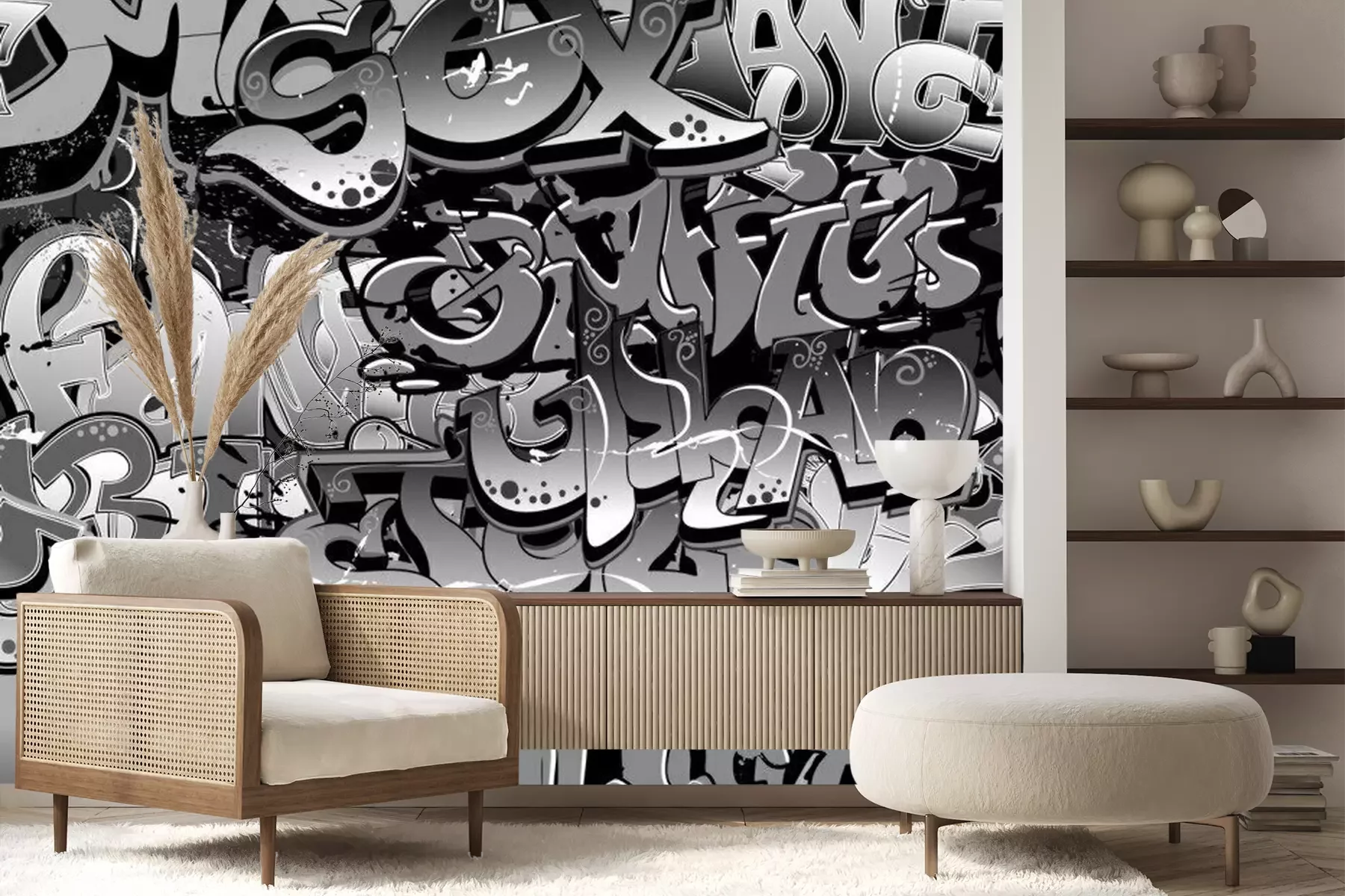 Graffitis colorés avec slogans et effets de peinturePapier peint