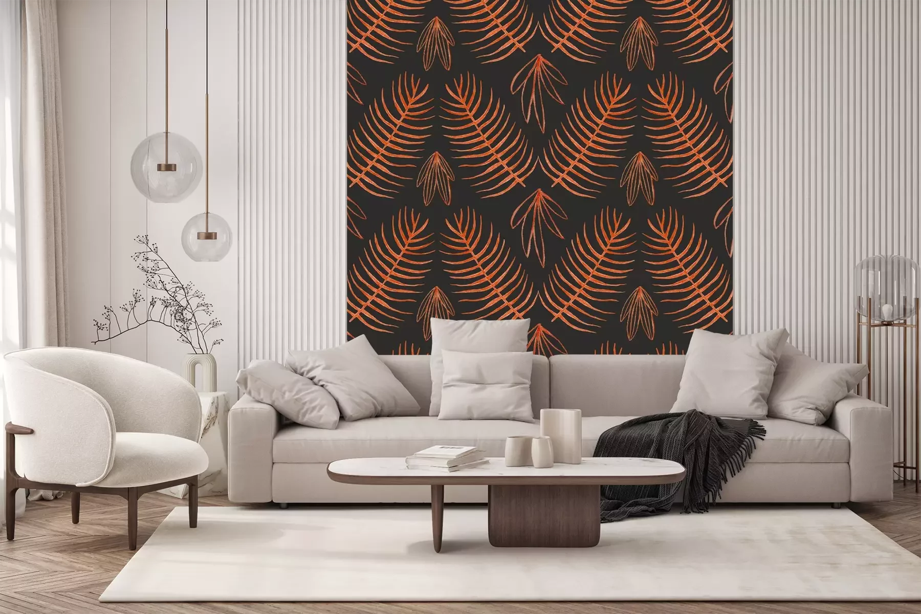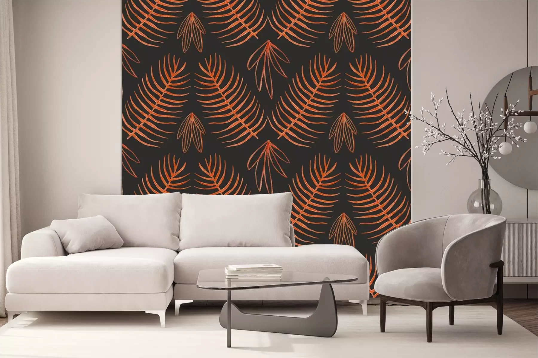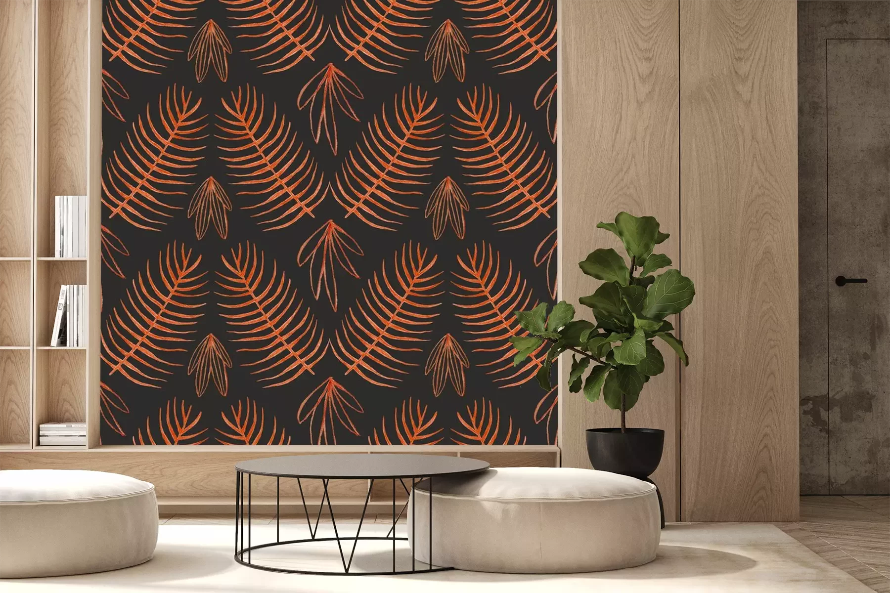 Papier peint  Texture boho orange avec des feuilles tropicales