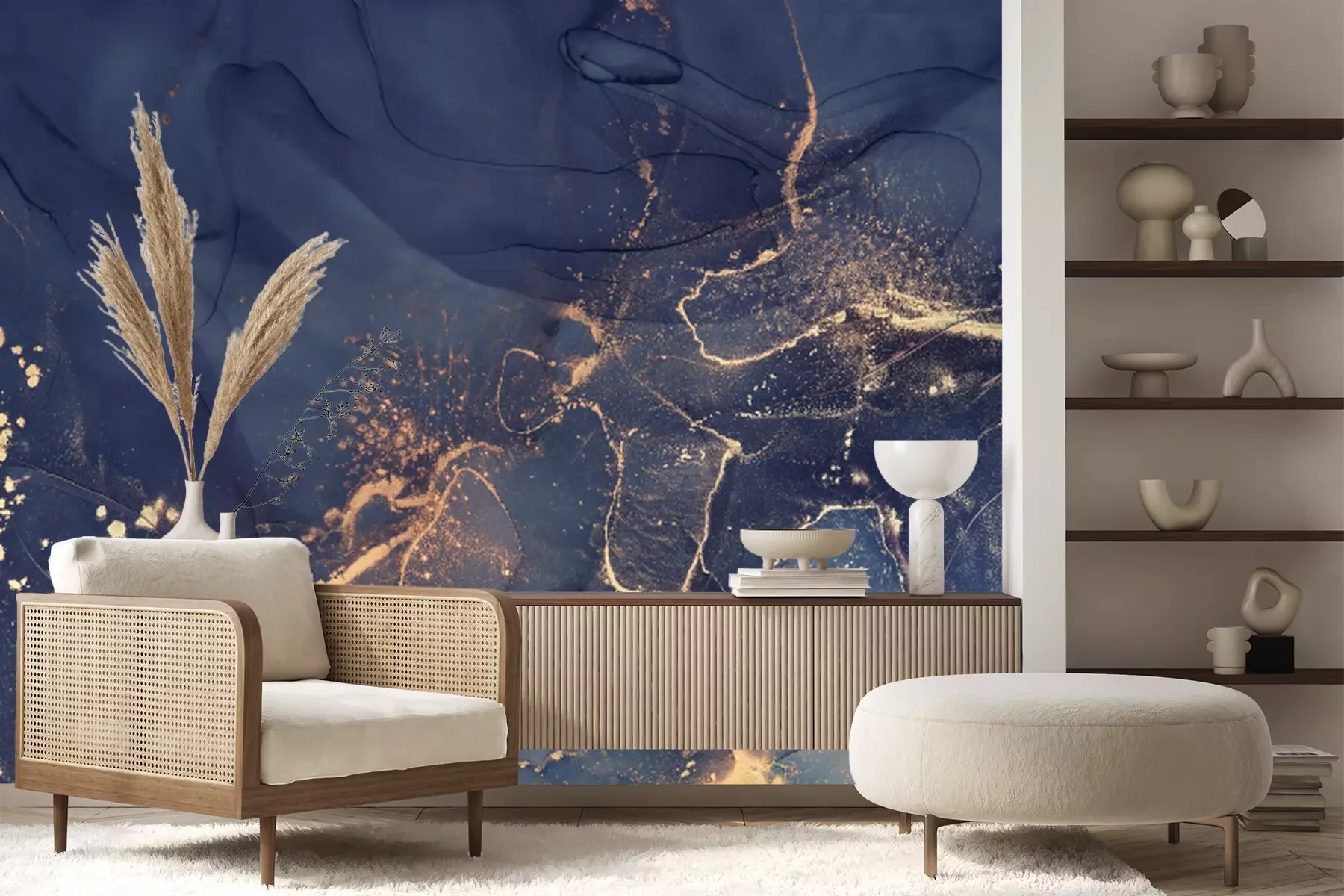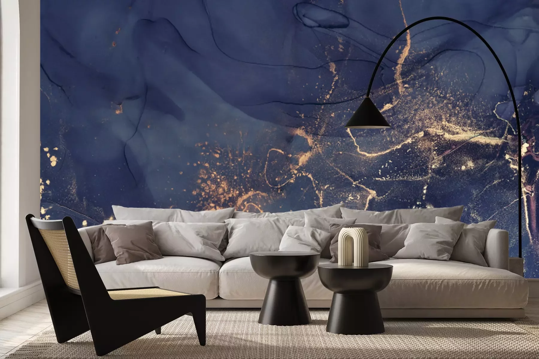 Nuances de peinture bleu foncé interpénétrantPapier peint