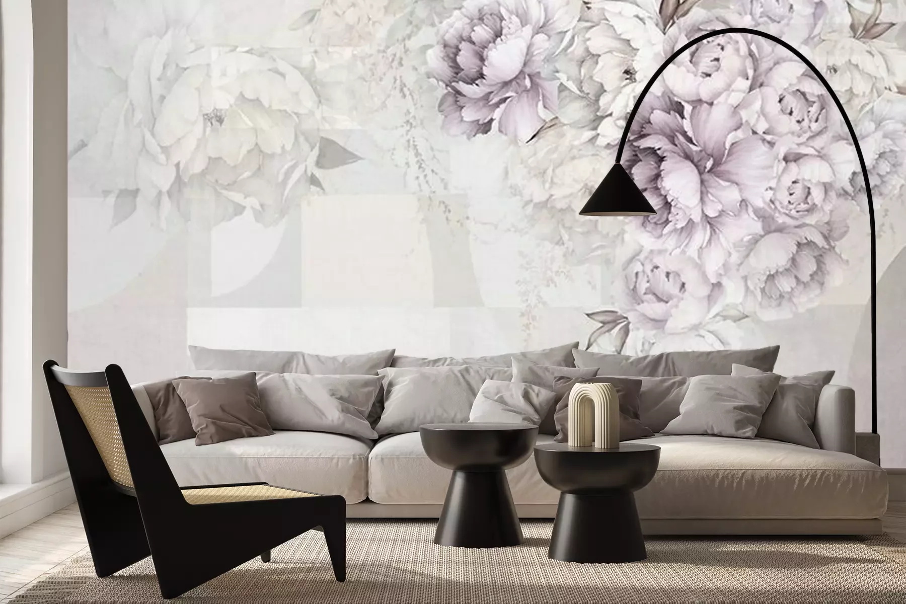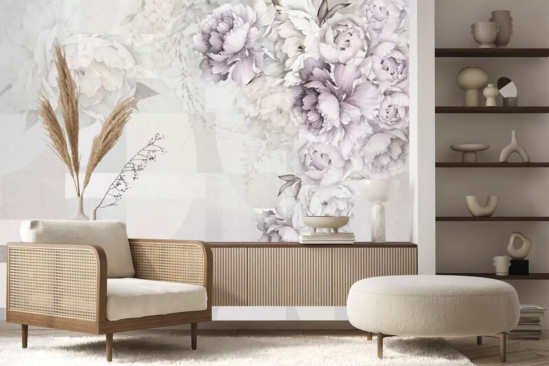 Pivoines Bleues et Mur en Béton GéométriqueLivraison sans problème assurée par des transporteurs de confiance