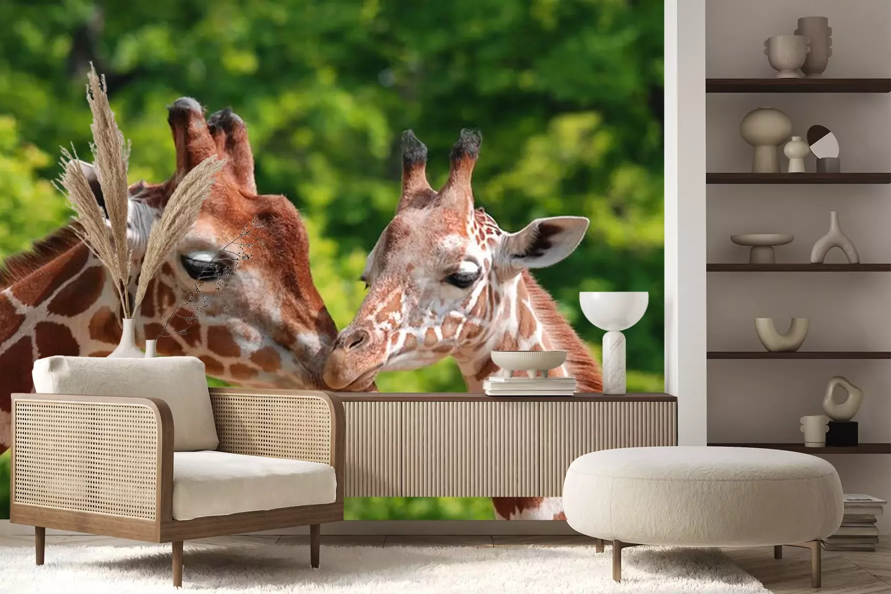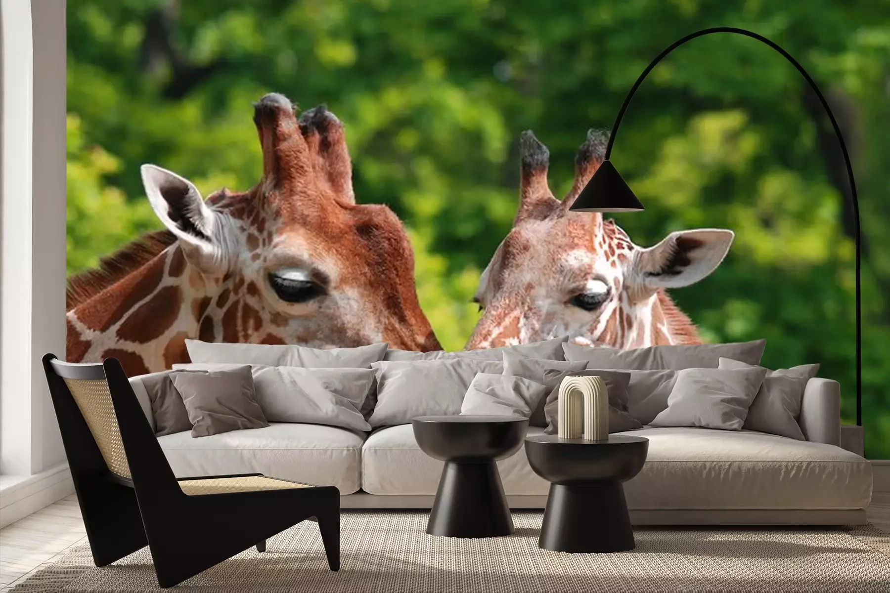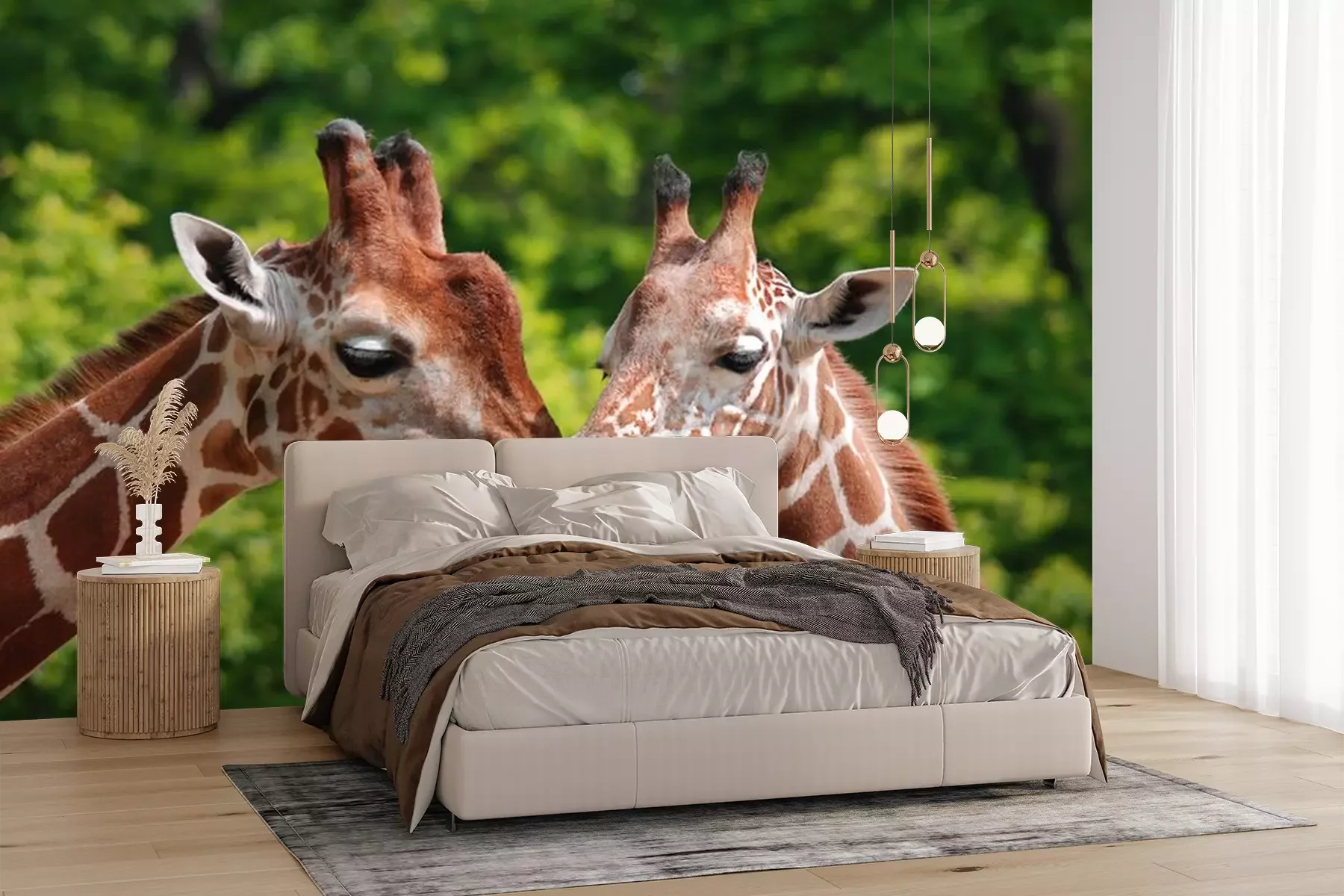 Papier peint  The giraffe close up (Giraffa camelopardalis) is an African even-toed ungulate mammal, the tallest of all extant land-living animal species, and the largest ruminant.