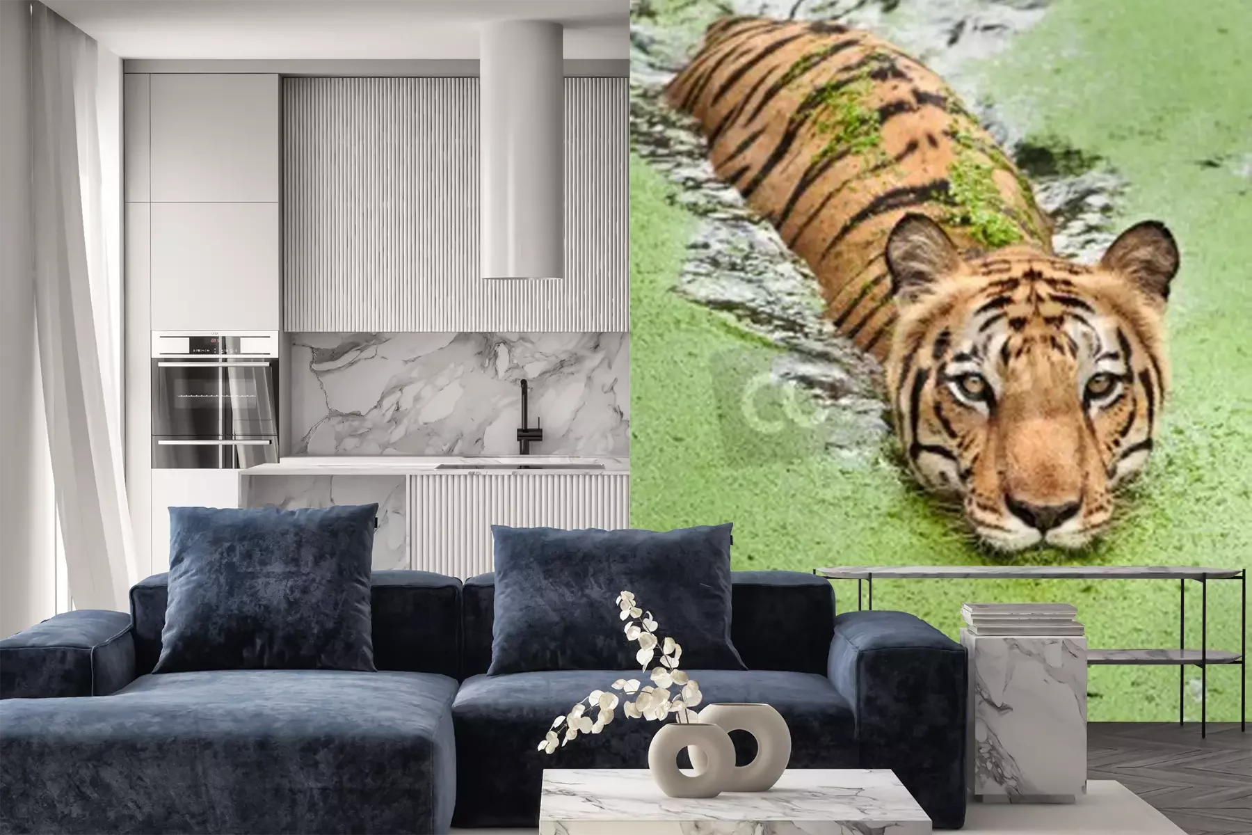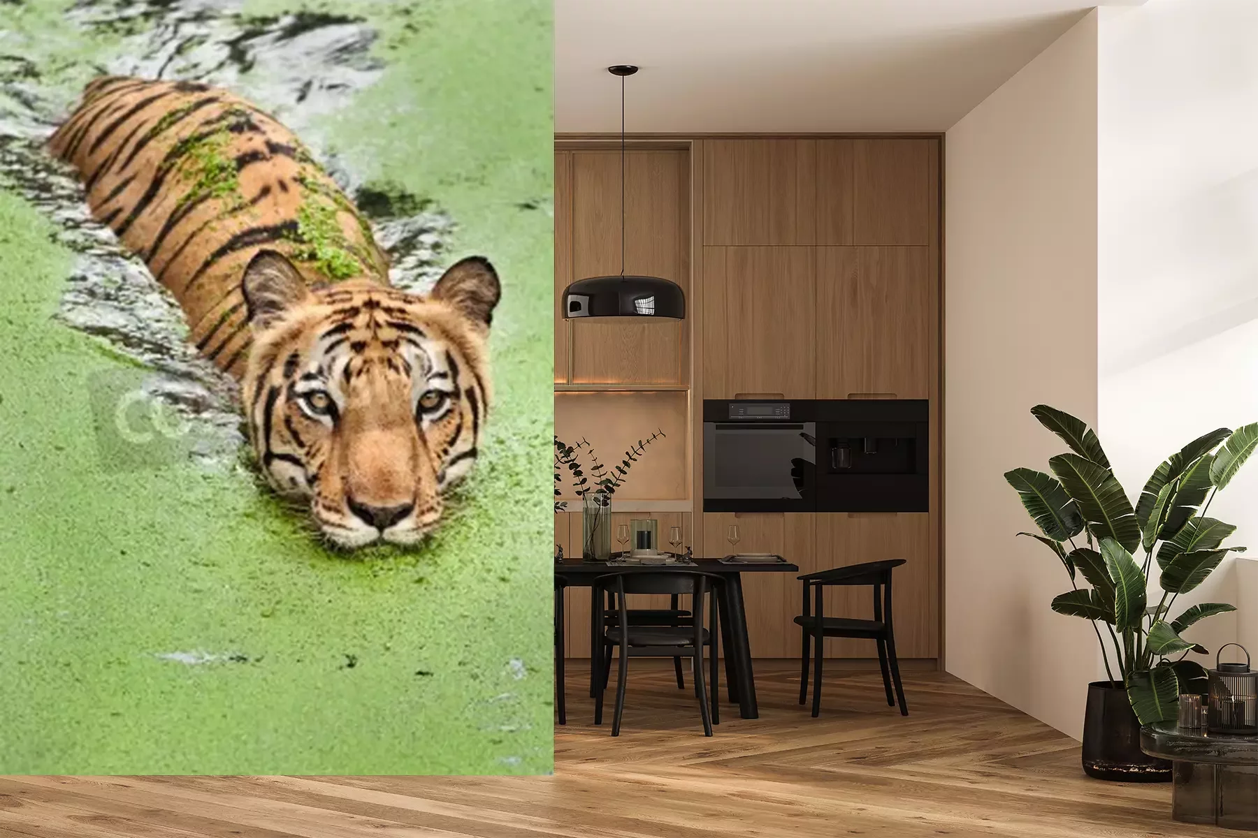 Papier peint  Tigre nageant dans les marécages