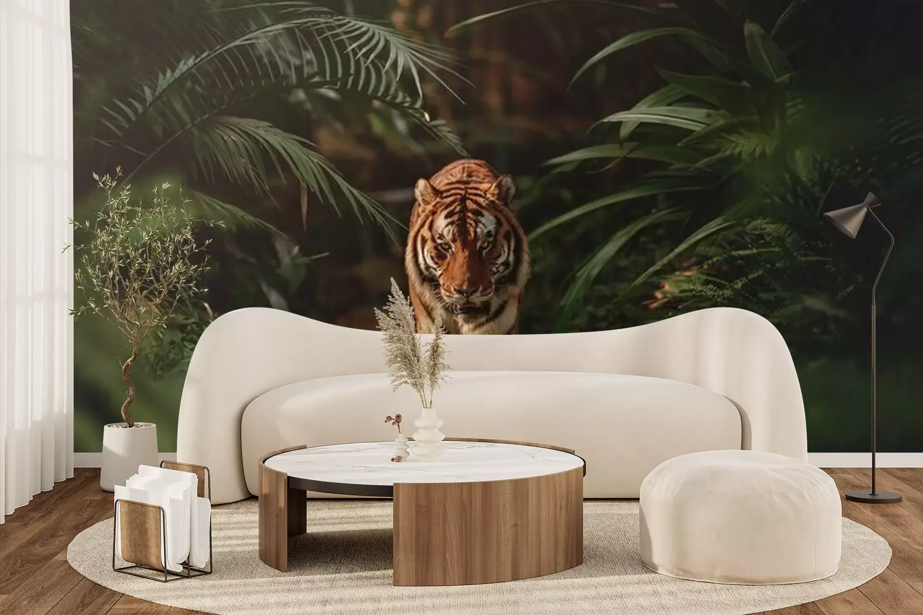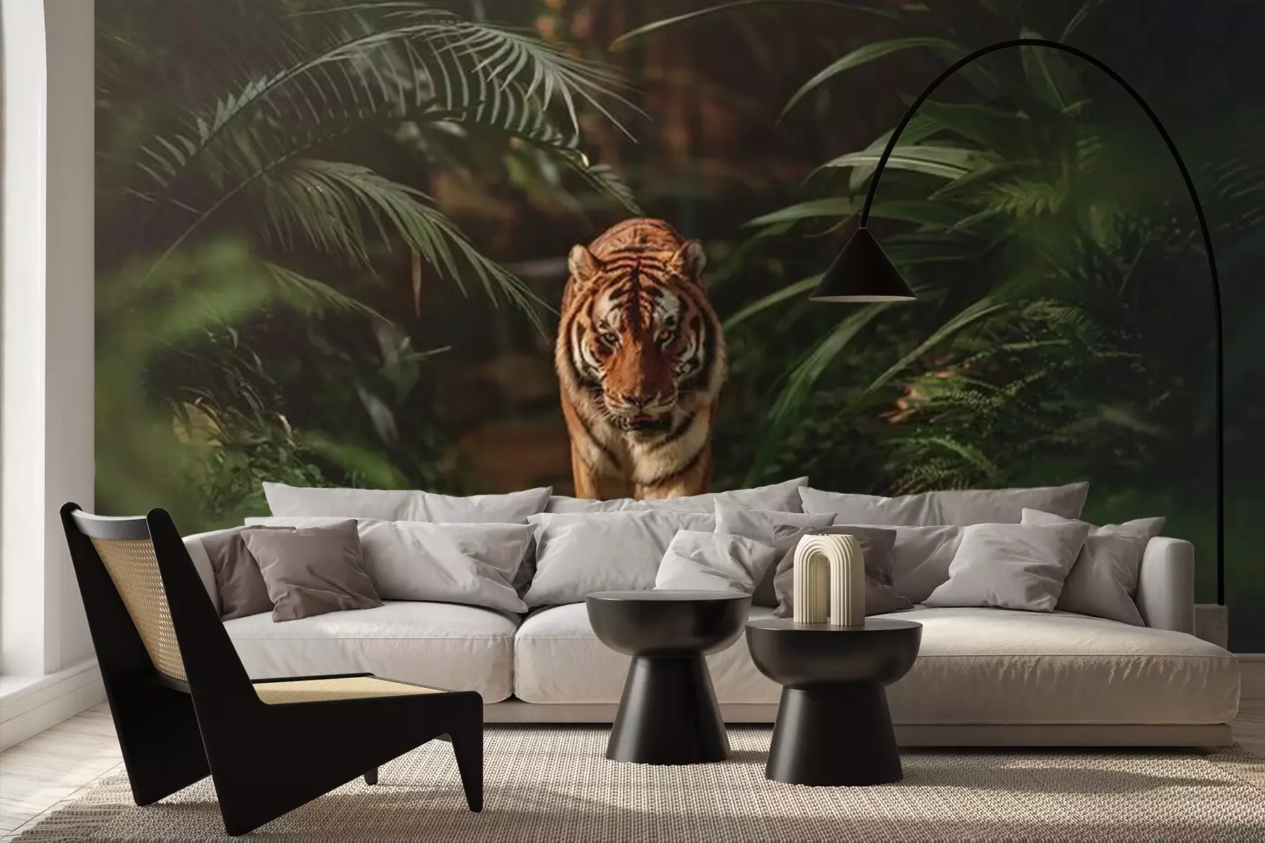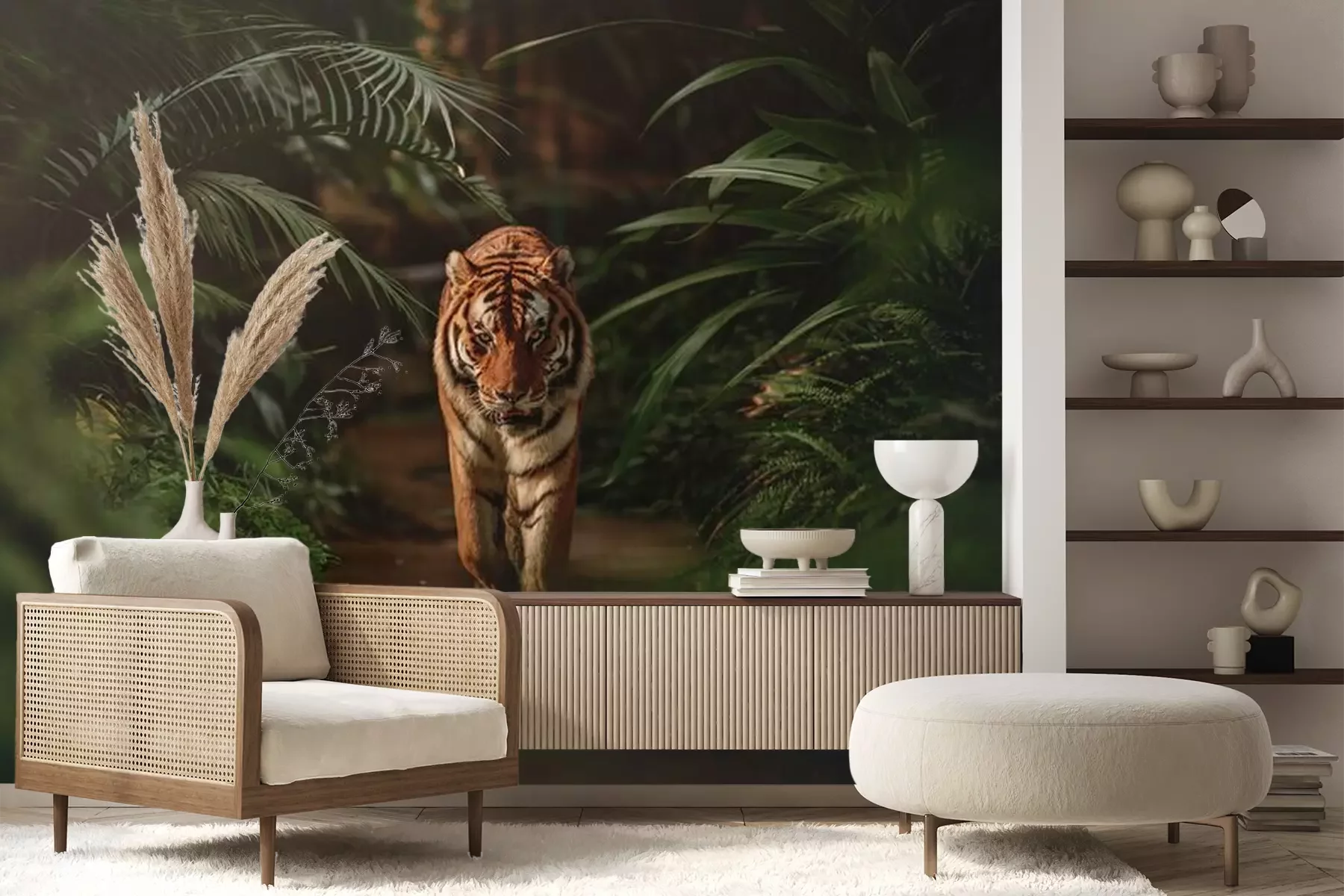 Papier peint  Tigre se promenant dans une jungle tropicale
