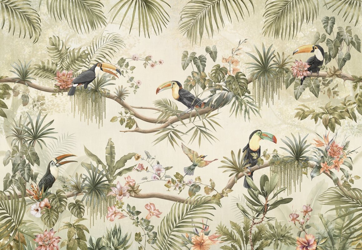Papier peint : Toucans et colibris parmi les plantes exotiques