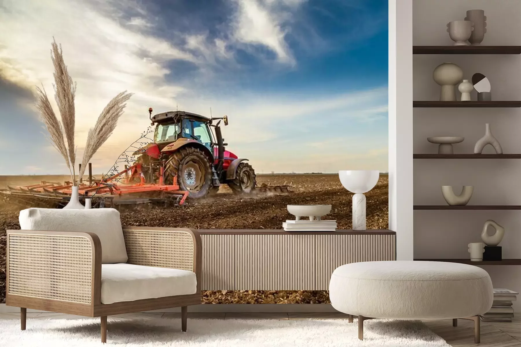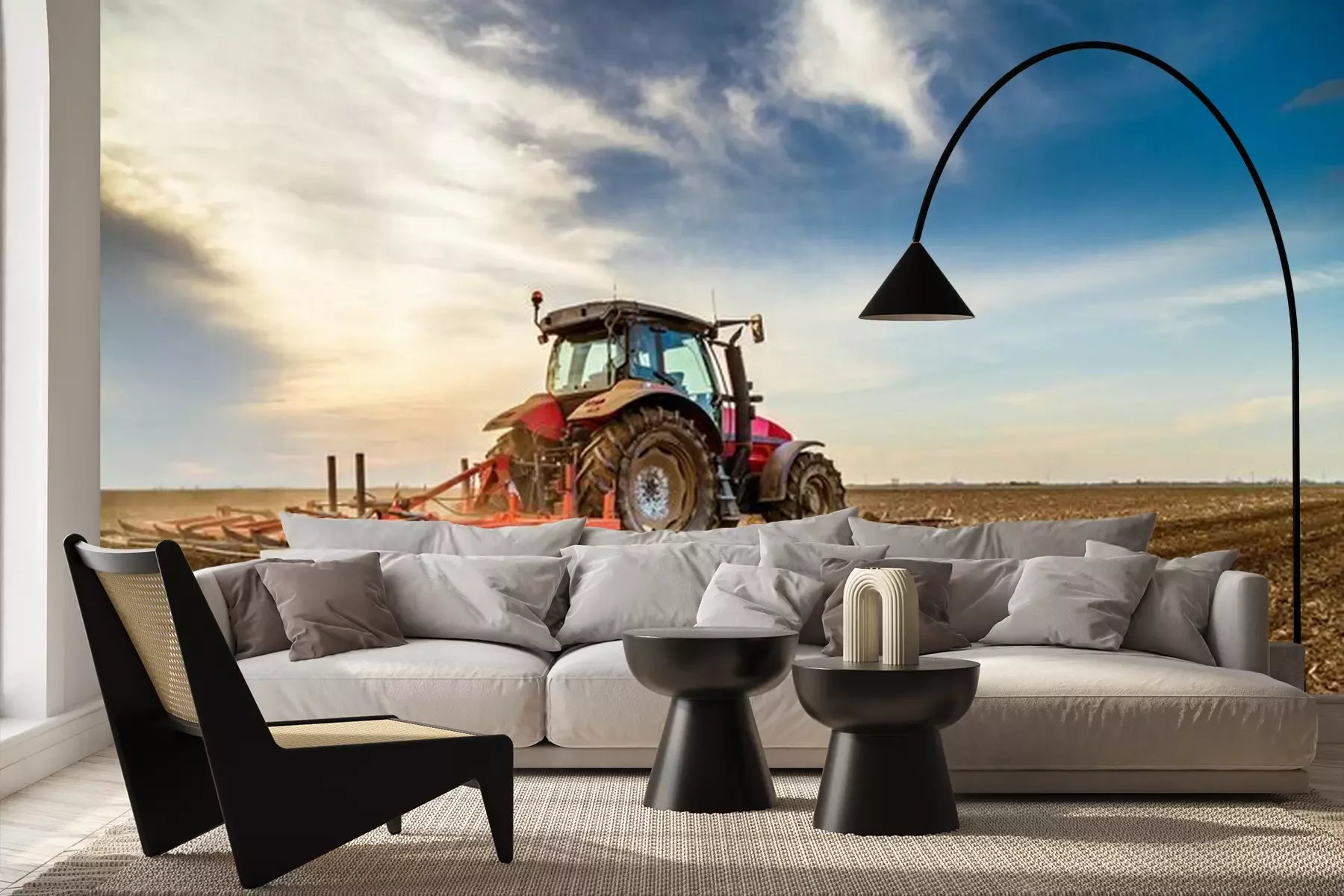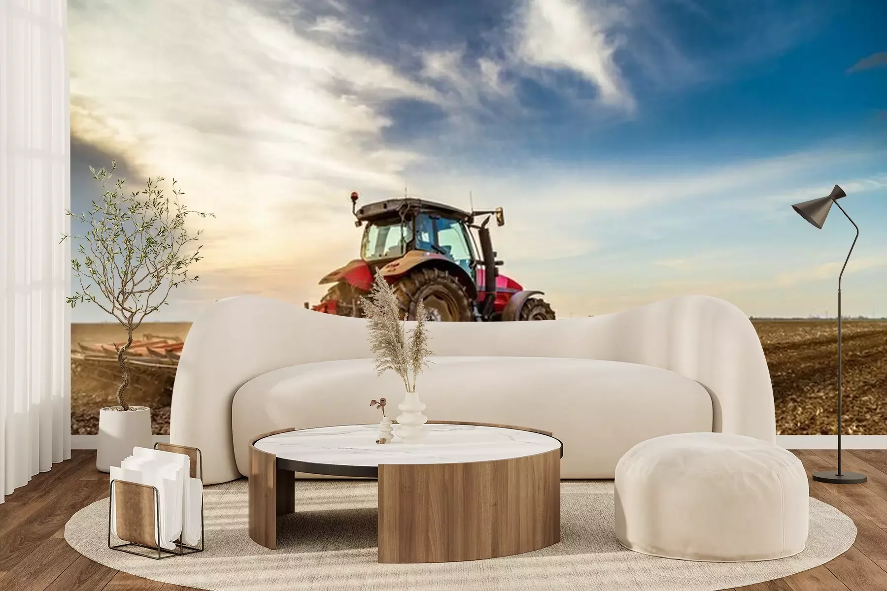 Papier peint  Tracteur cultivant le champ au printemps