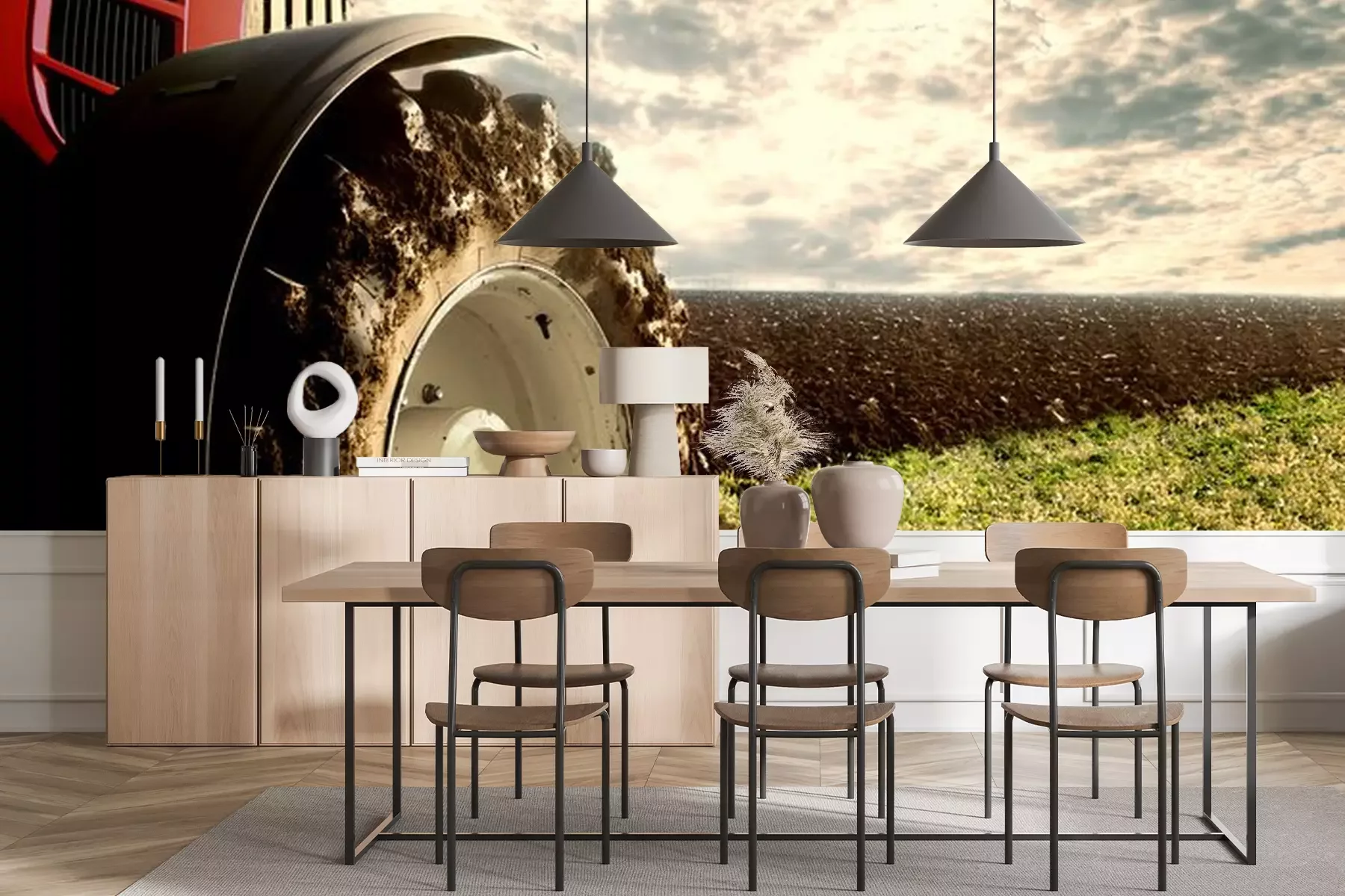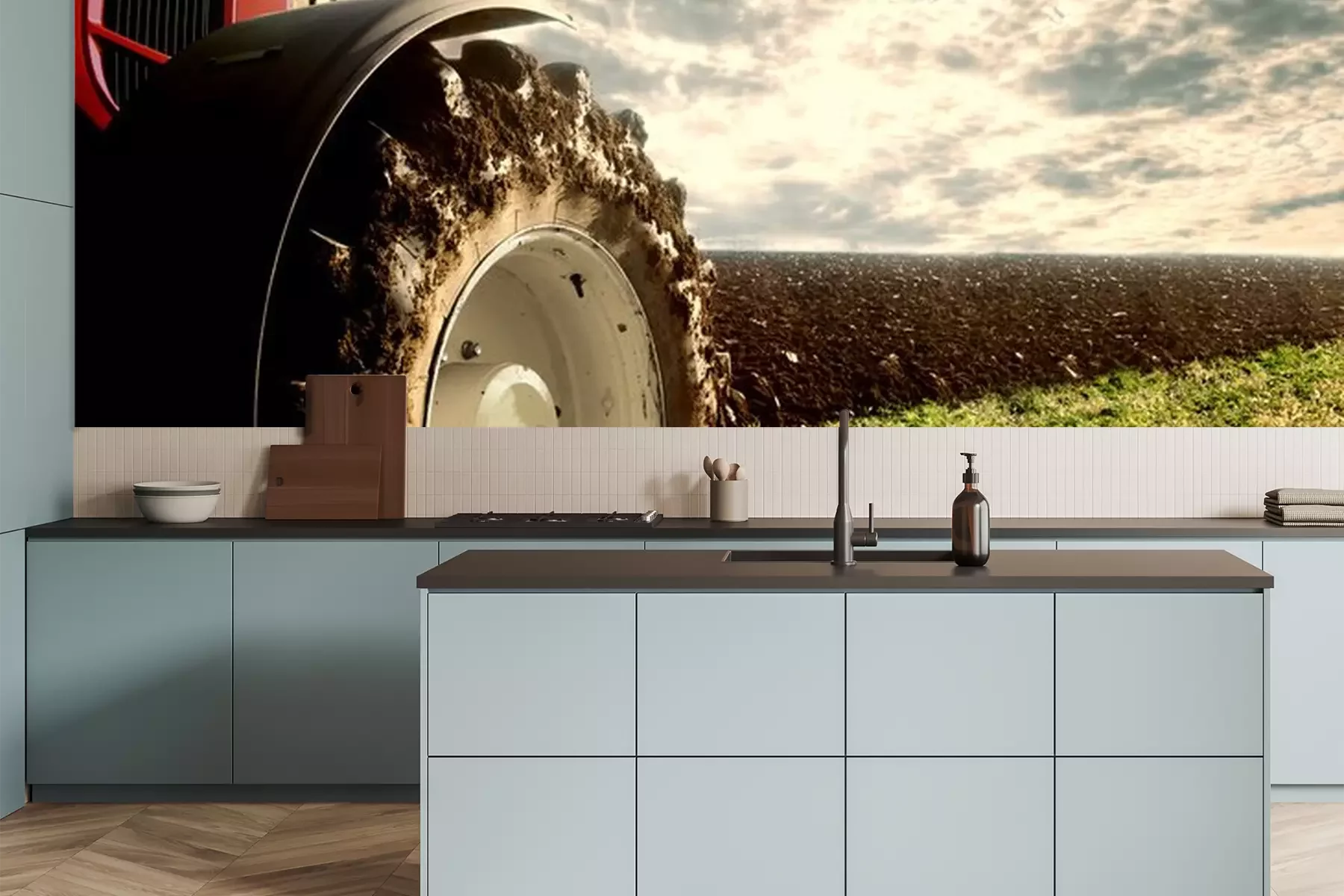 Papier peint  Tractor cultivating field. Agriculture and machinery.