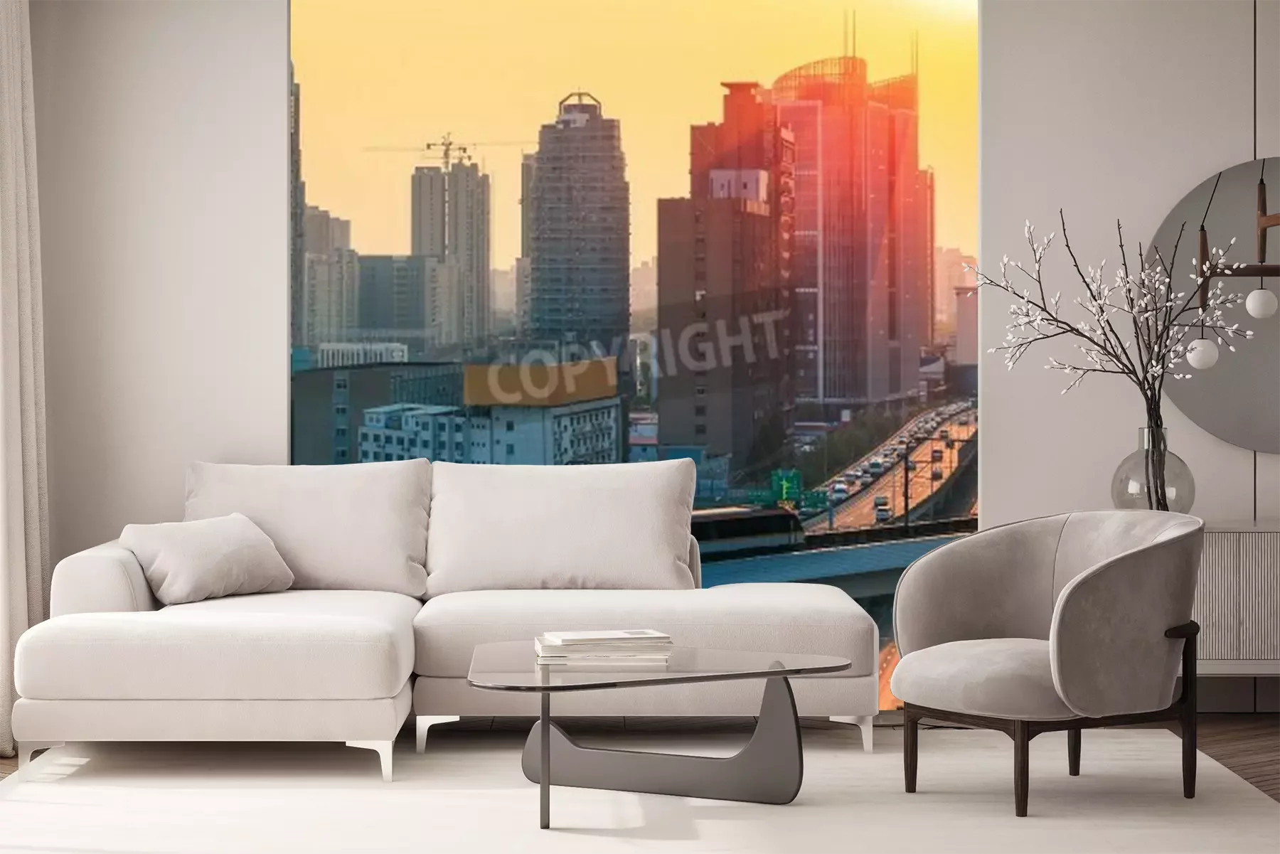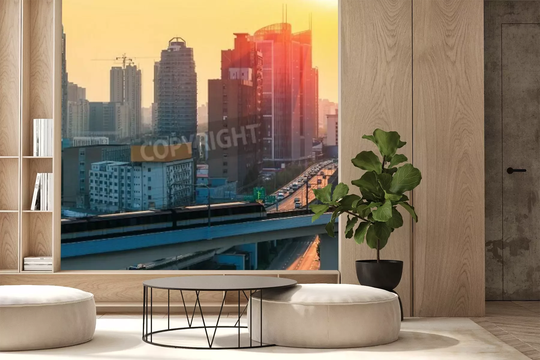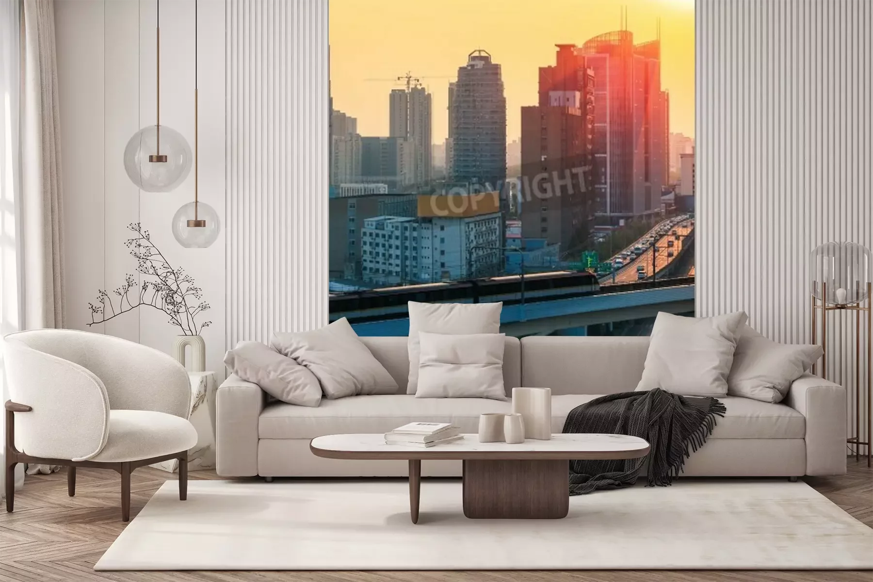 Papier peint  Train roulant à toute vitesse au-dessus des rues