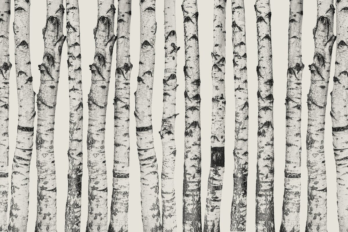 Papier peint : Troncs de bouleaux sur fond beige clair