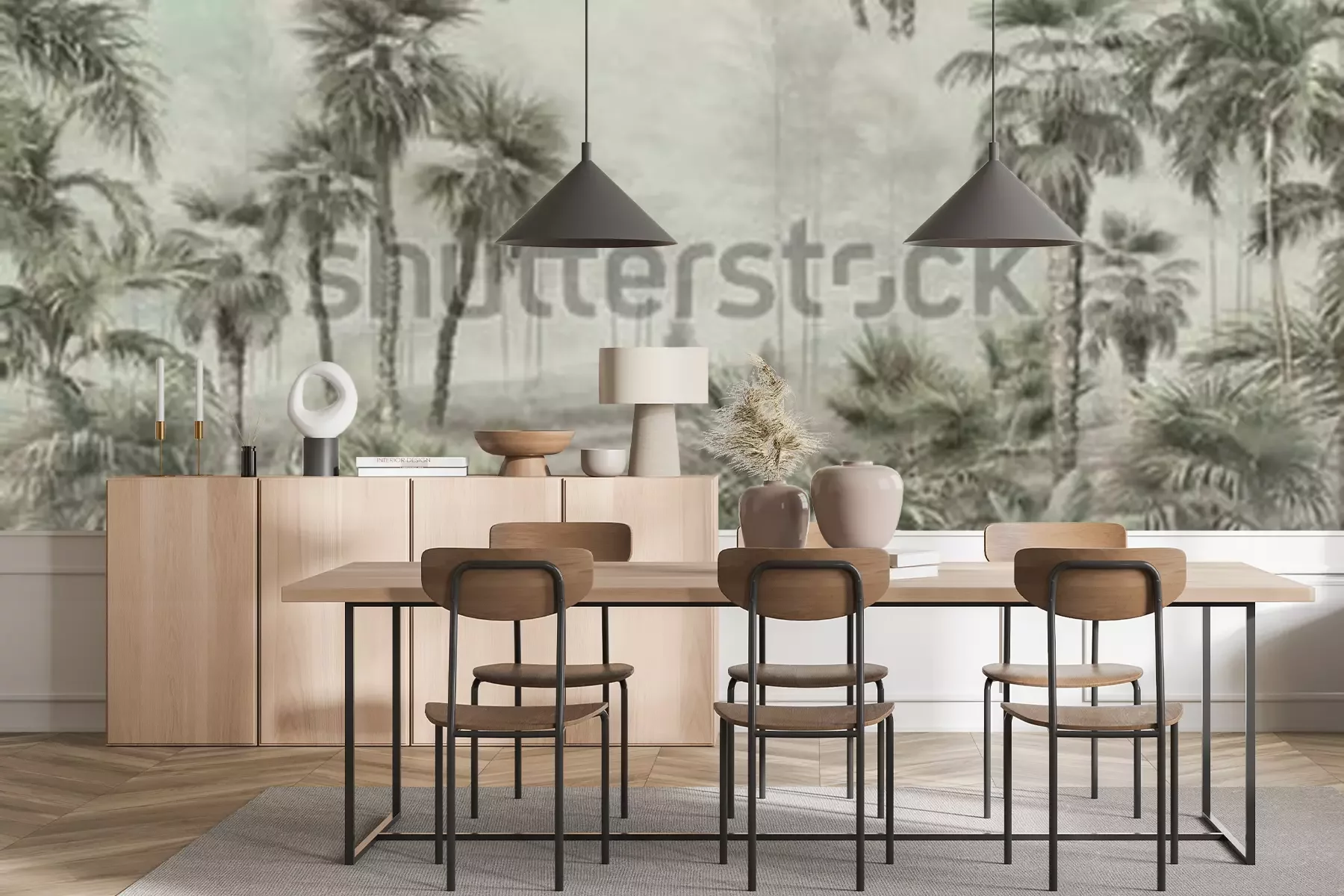 Papier peint  Tropical trees and leaves for digital printing wallpaper, custom design wallpaper - 3D illustration