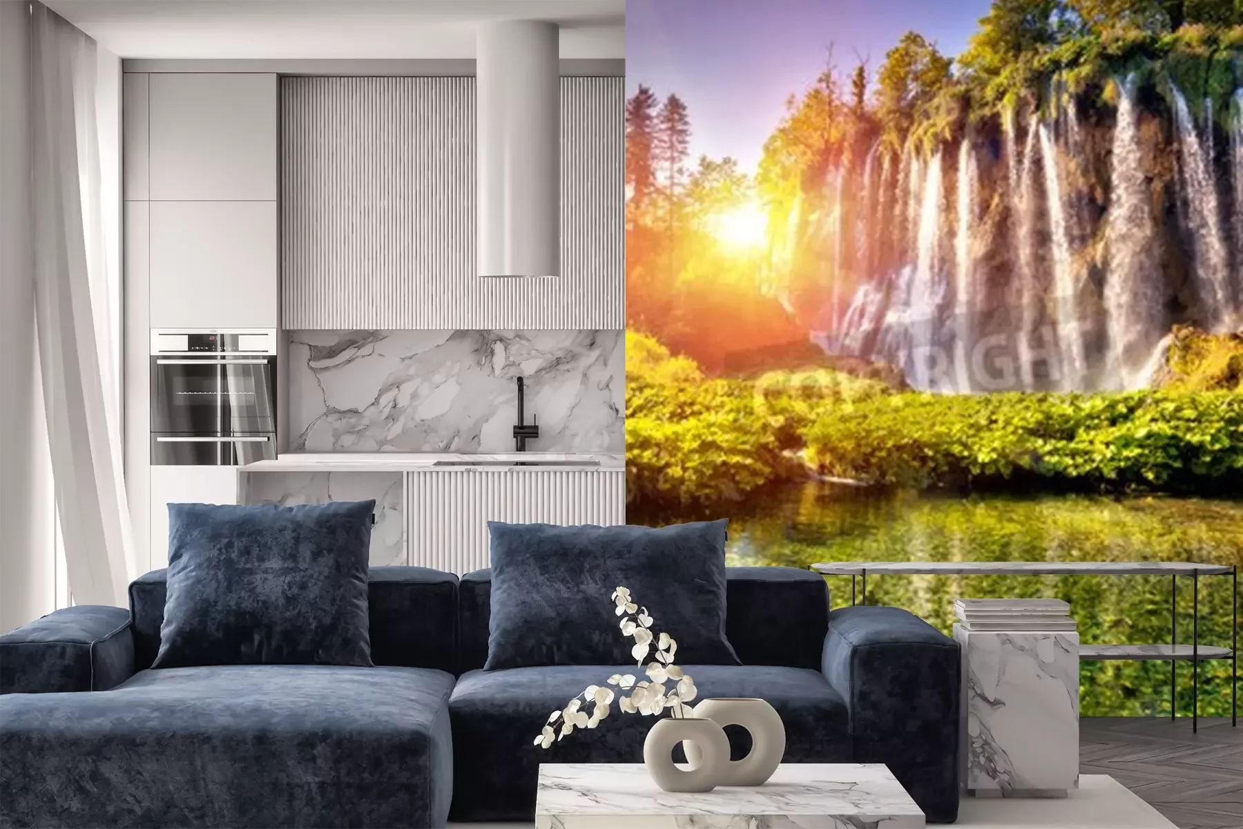 Papier peint  Tropiques avec une chute d'eau