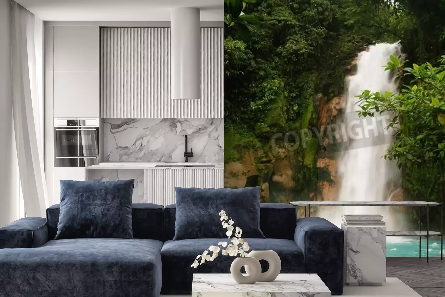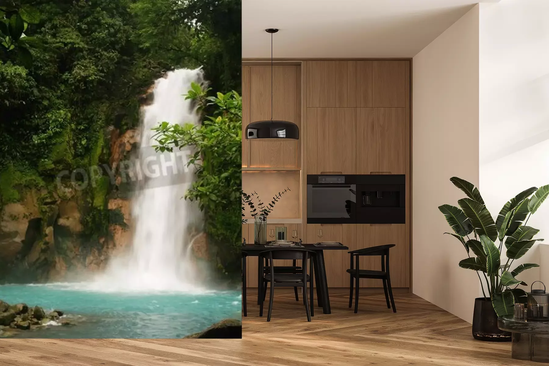Papier peint  Tropiques verts et cascade