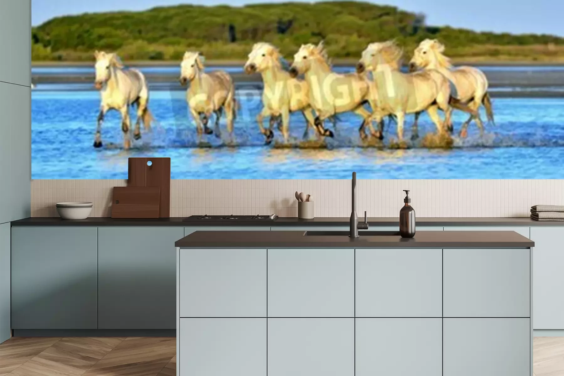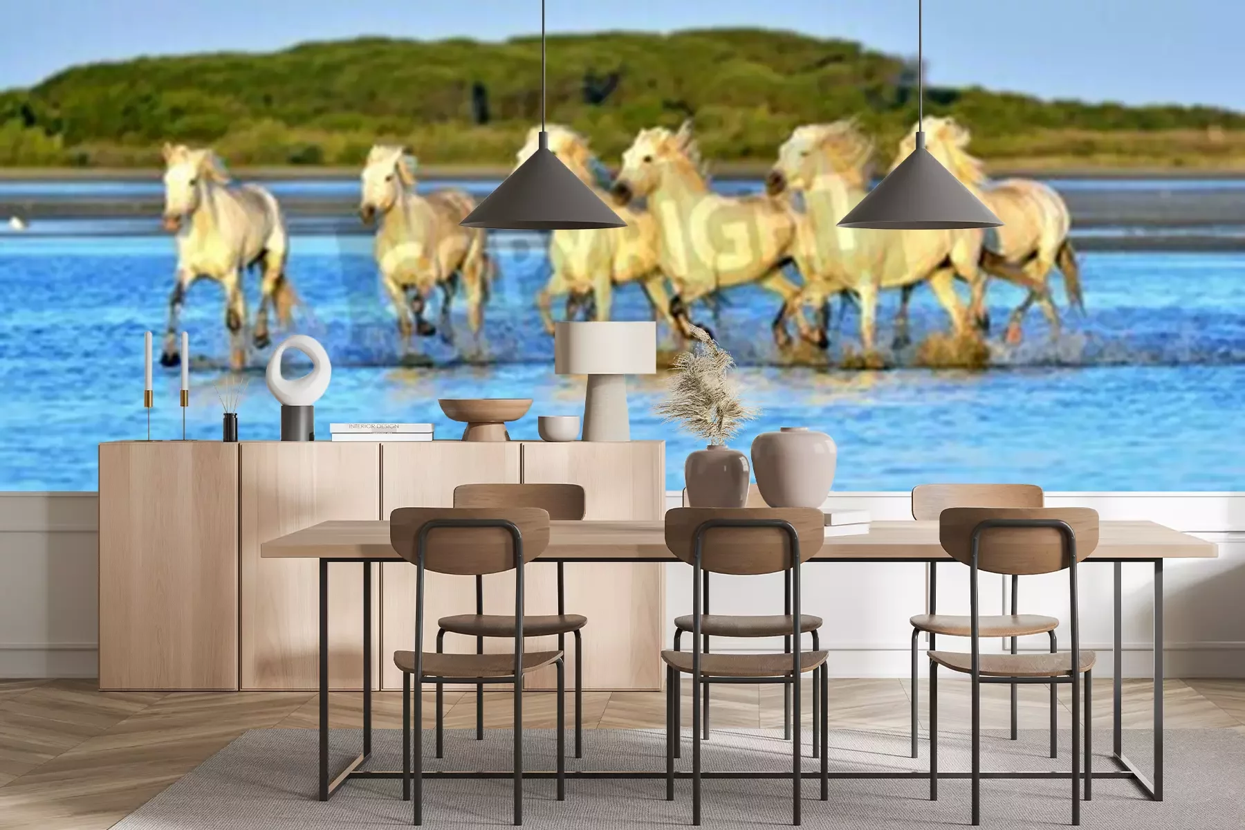 Papier peint  Troupeau de chevaux qui courent dans l'eau